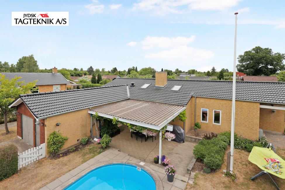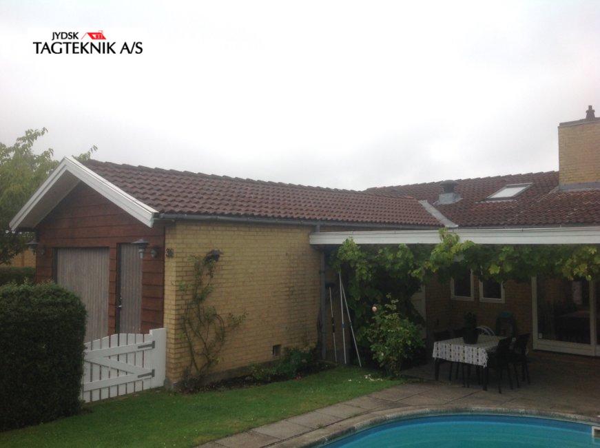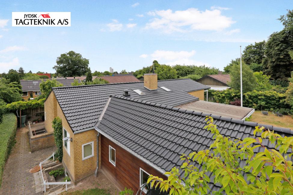 Huset i Herlev fik lagt nyt flot betontegltag, huset fik også nye Velux ovenlysvinduer, samt montering af nye zink tagrender.