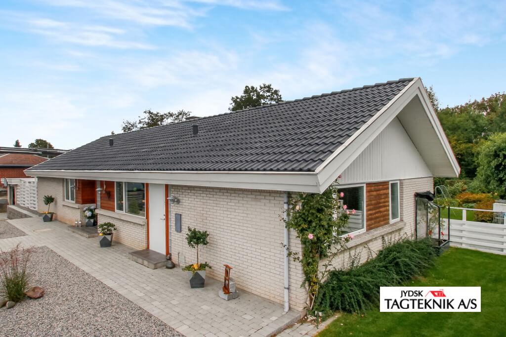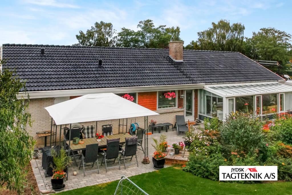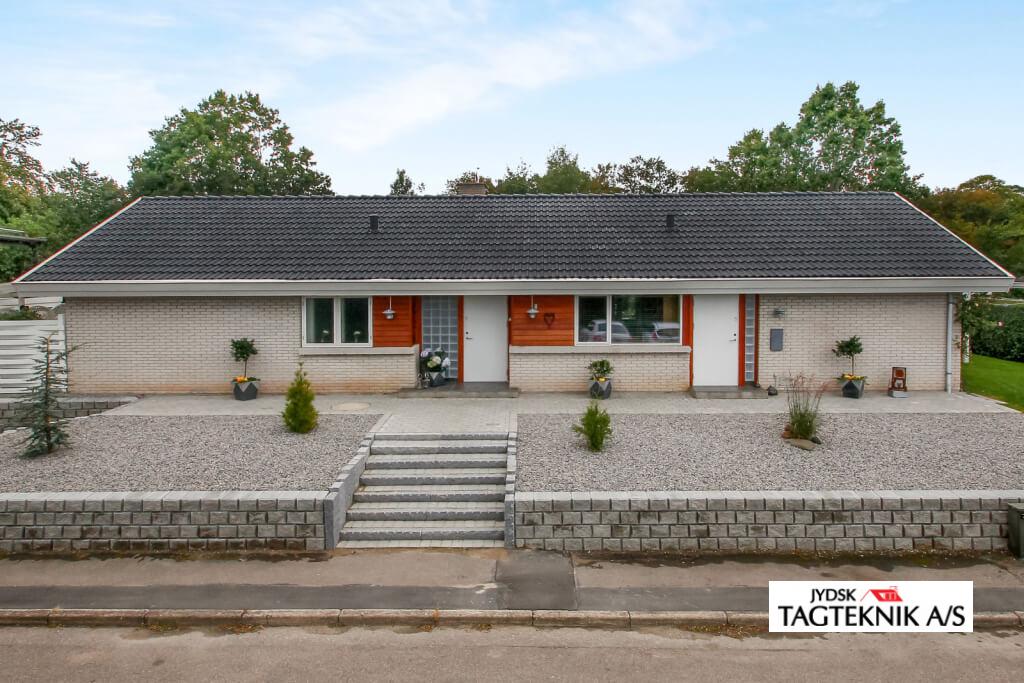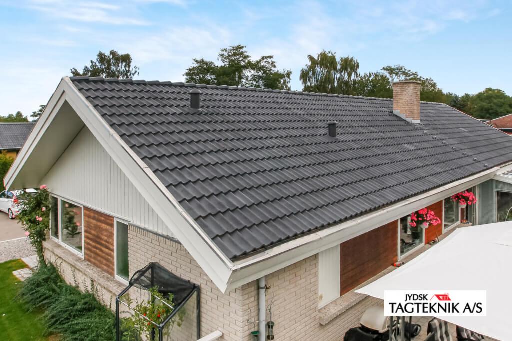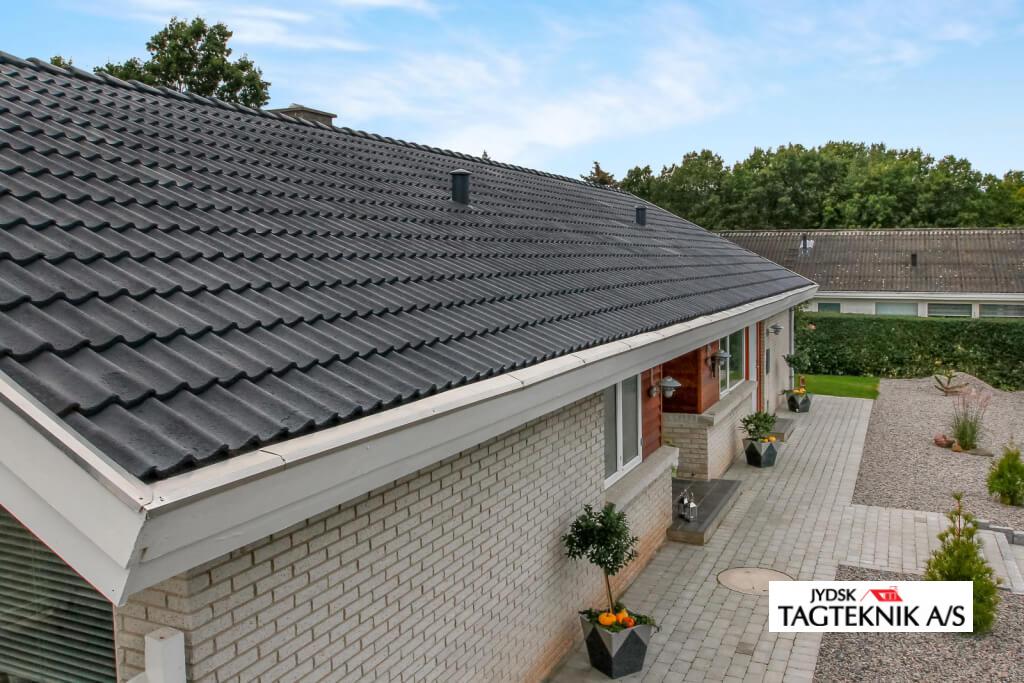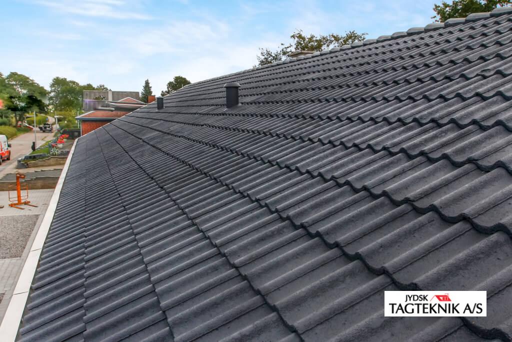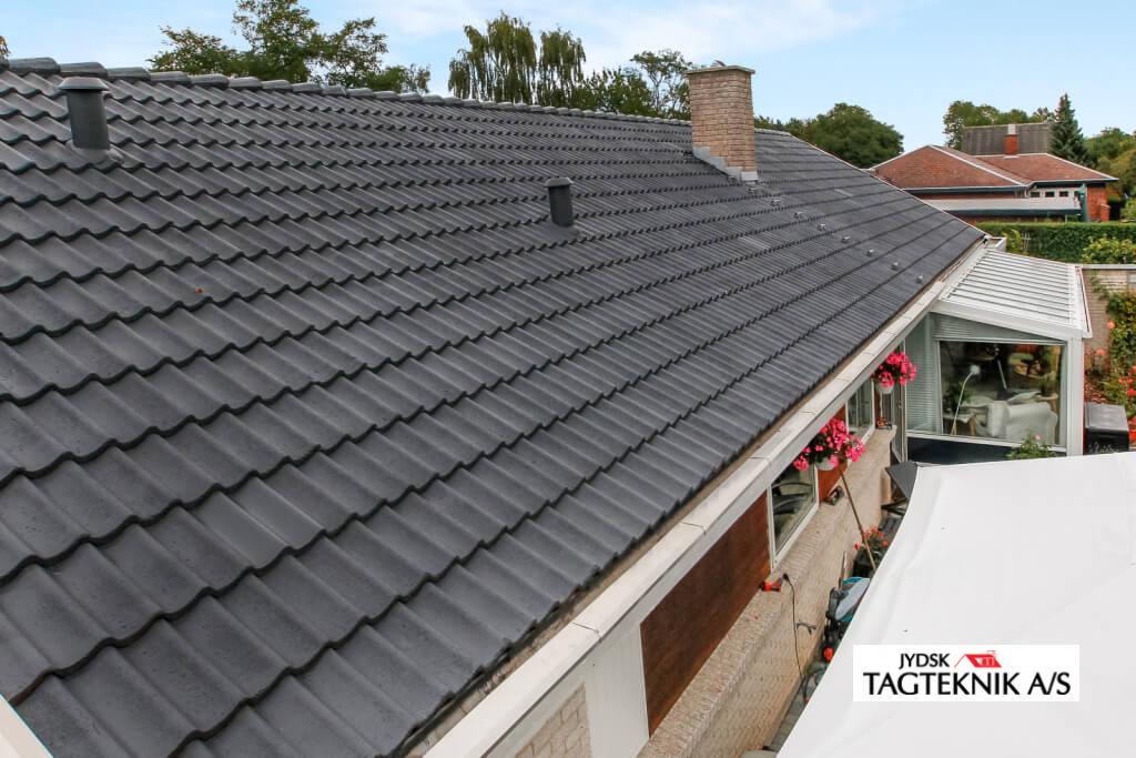 Ældre betontegltag blev renoveret i Holbæk, taget blev rensnet, algebehandlet – samt overfladebehandlingen bestod i en grunding samt 2 gange tagmaling.