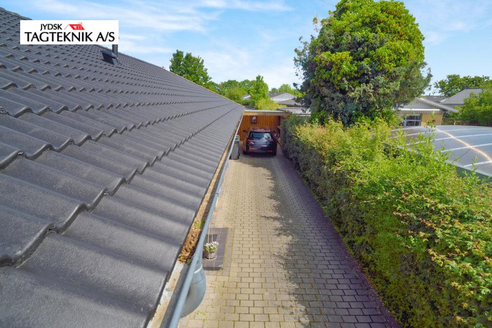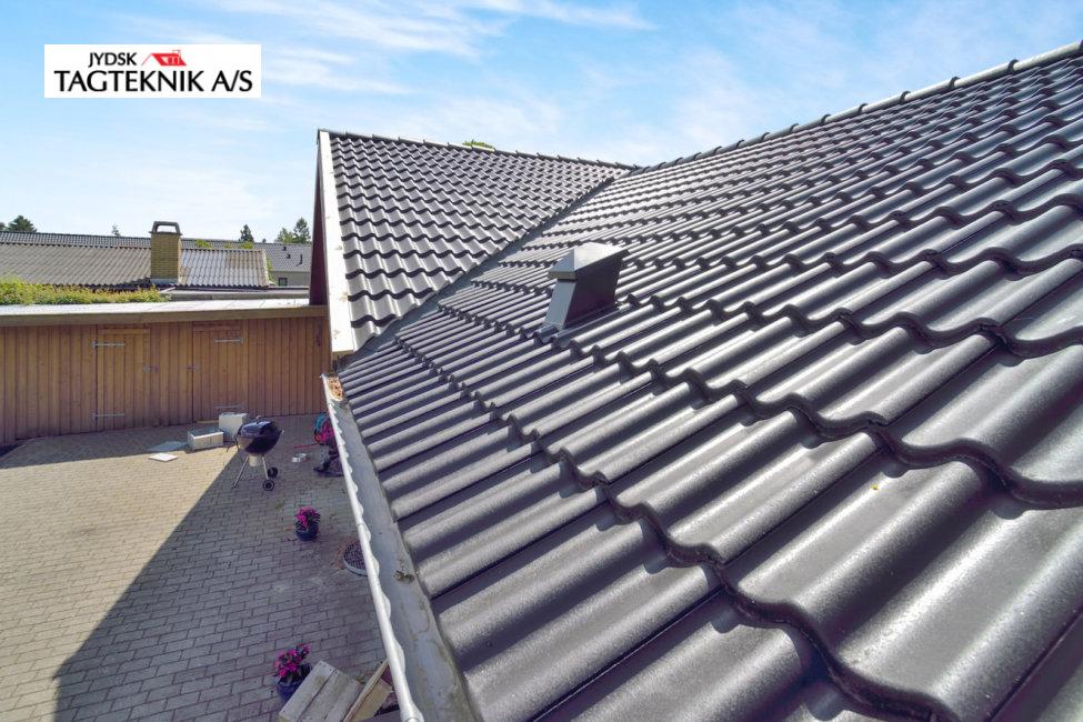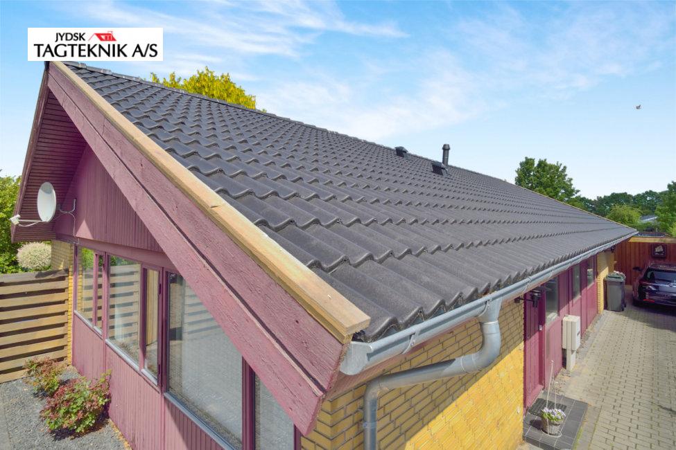 Huset i Smørum fik lagt nyt beton tegl, samt monteret nye zink tagrender. Tegl typen hedder IBF dobbelt S
