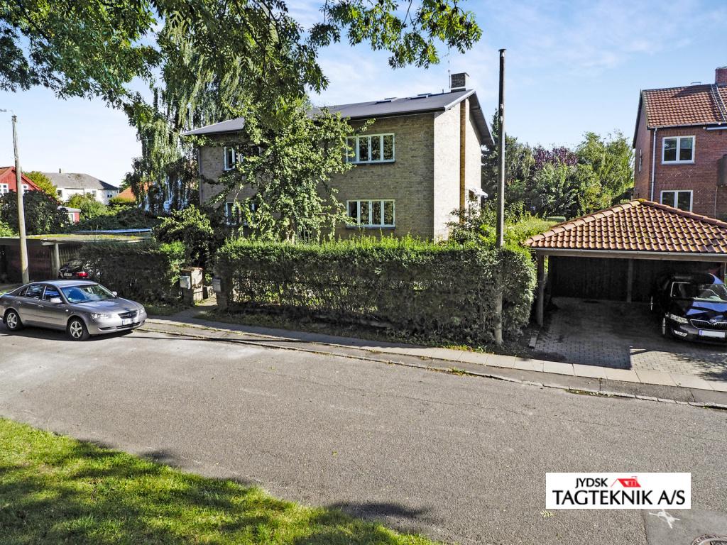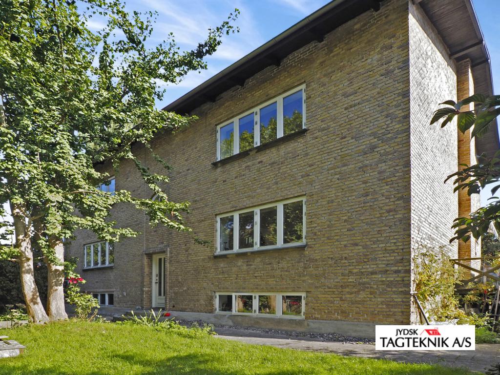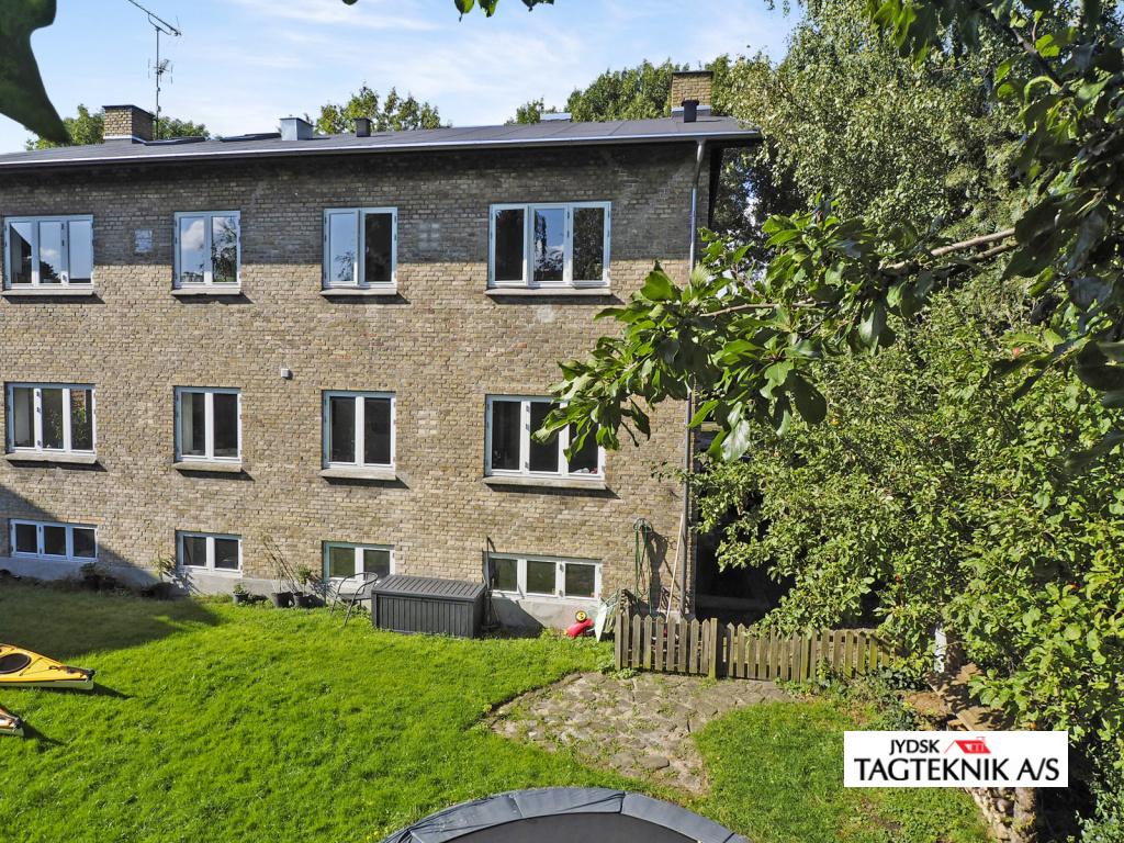 Boligblokken i Valby fik lagt nyt tagpap, bygningen fik også monteret nye zink tagrender og udvendig træværk.
