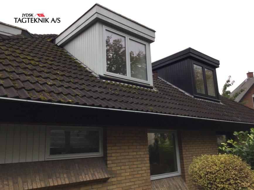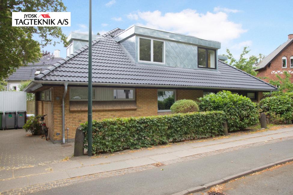 Dobbelt huset på Frederiksberg, fik lagt nyt betontegltag, huset fik monteret nye kviste for at udnytte loftarealet, huset fik og monteret nye tagrender.