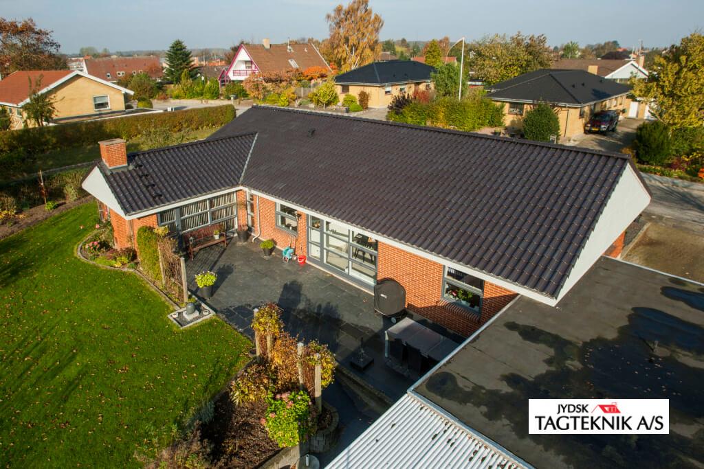 Ejendommen i Fredericia fik lagt nyt sort engoberet tegltag og monteret nye tagrender.