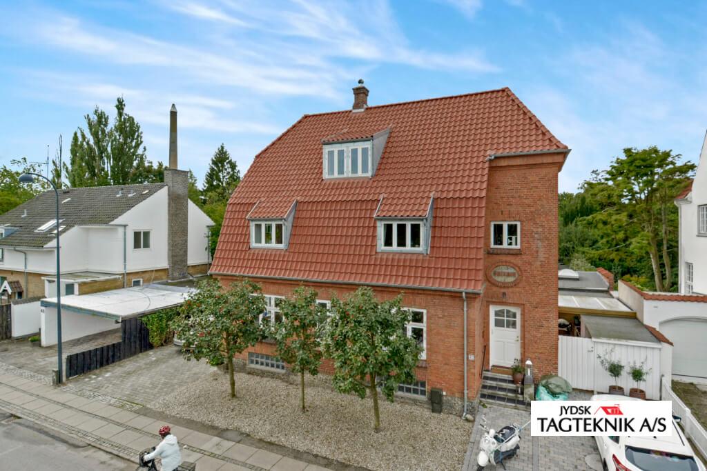 Ejendommen i Gentofte fik lagt nyt tegltag, ejendommen fik også monteret nye kviste og ovenlysvinduer, samt nye zinktagrender.
