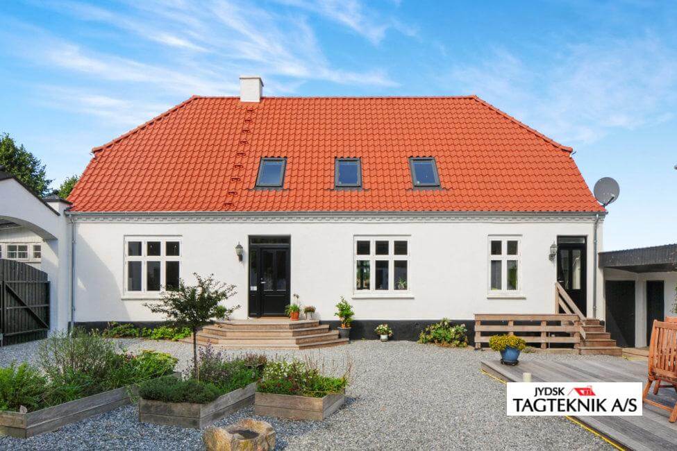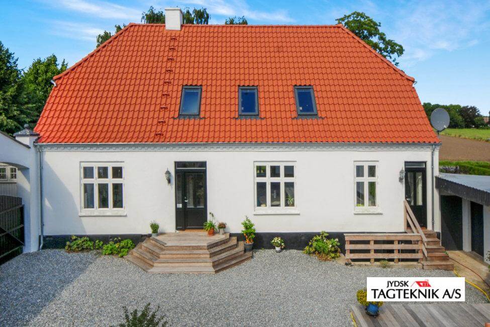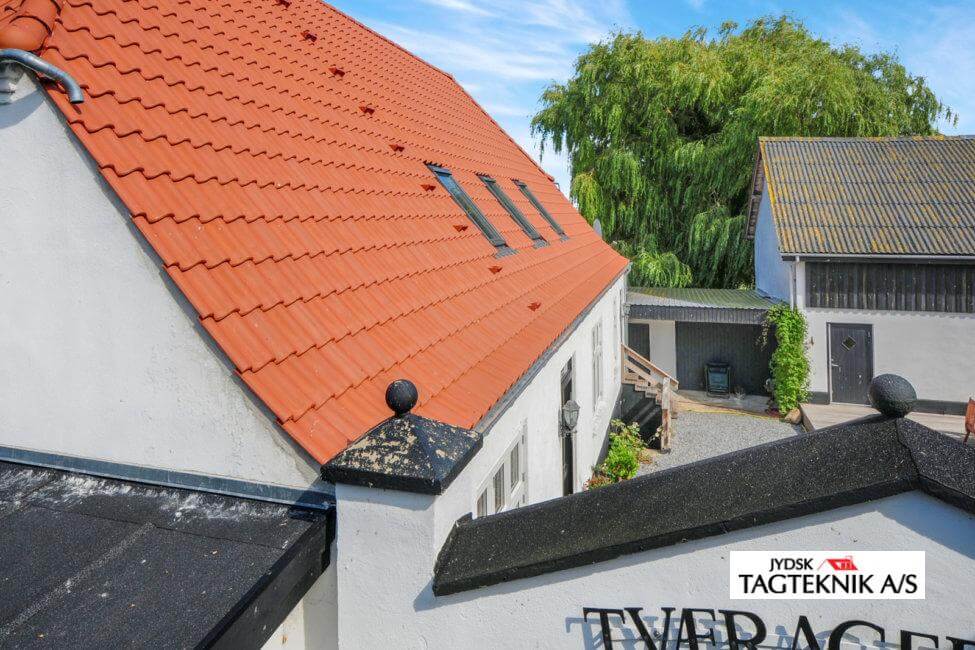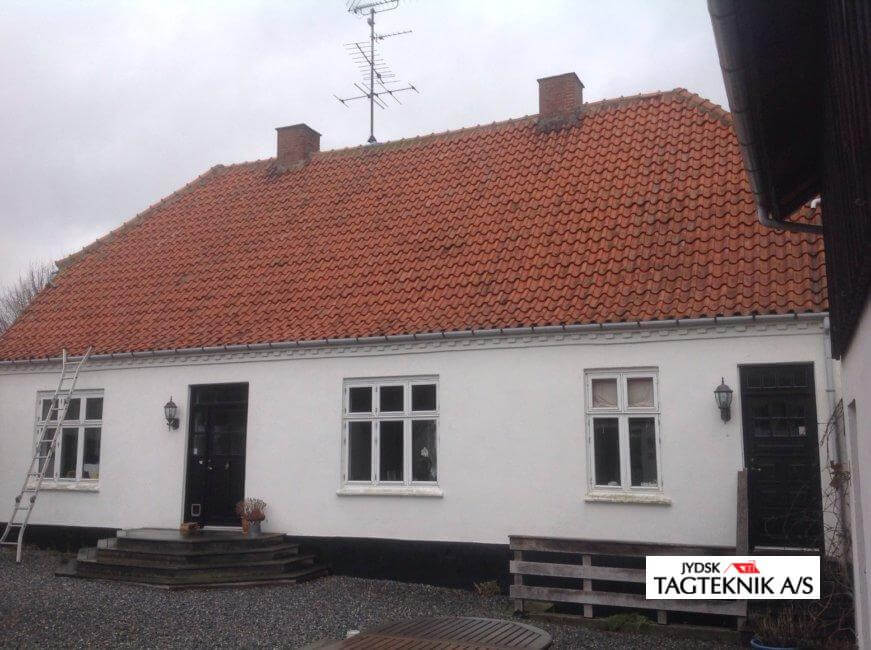 Hovedhuset på gården i Holdbæk fik lagt et nyt tegltag, huset fik også monteret nye velux ovenlysvinduer, samt nye zinktagrender.