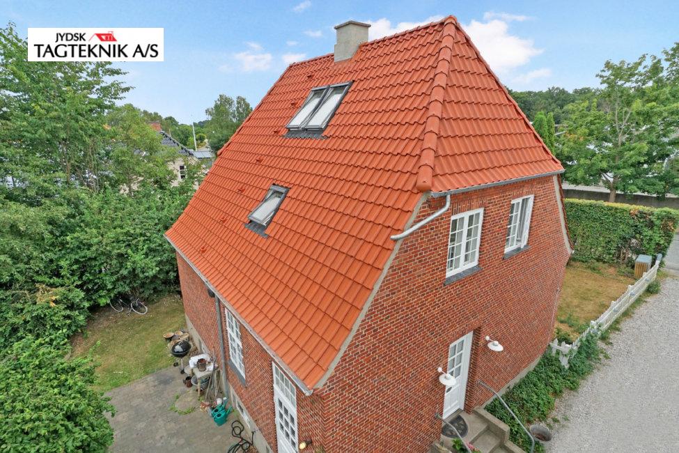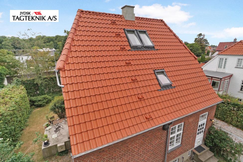 Huset i Hellerup fik lagt nyt flot tegltag, huset fik også nye Velux ovenlysvinduer, samt montering af nye zink tagrender.