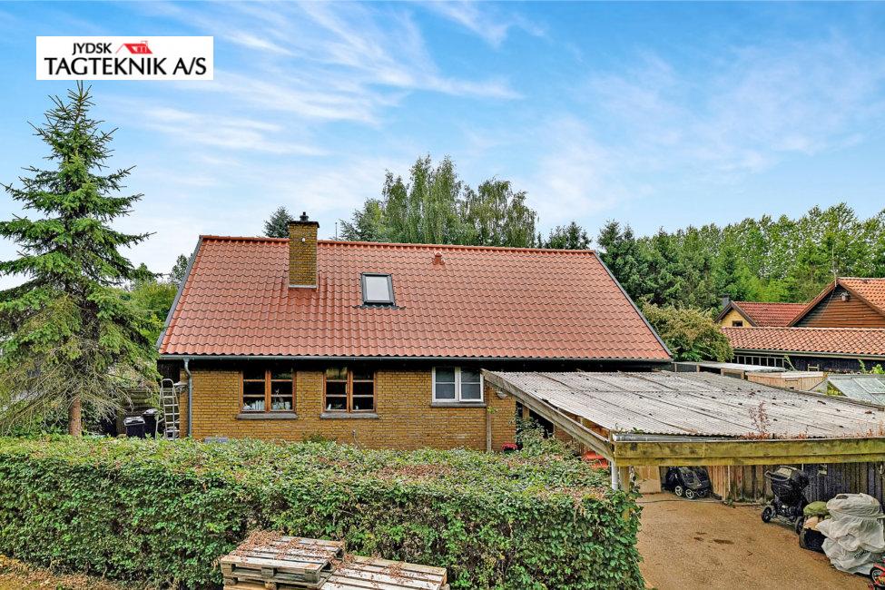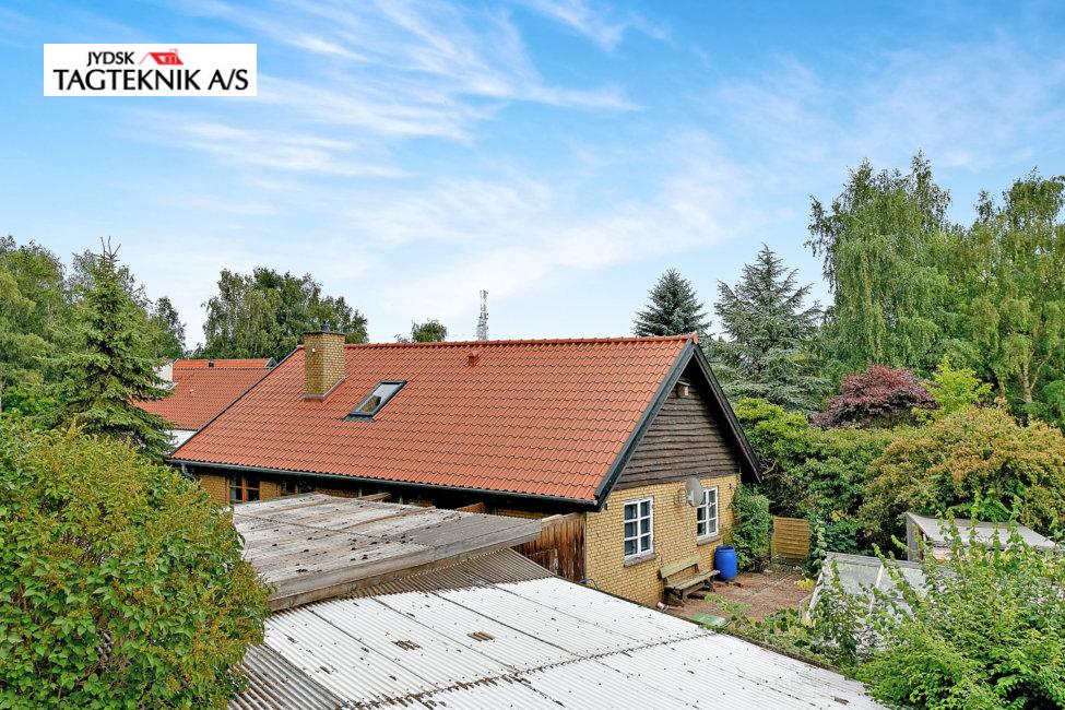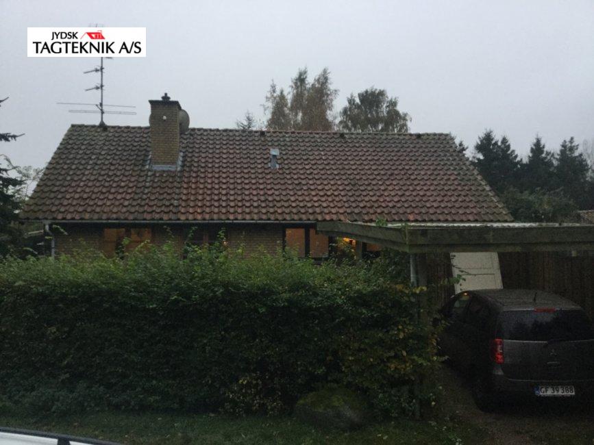 Huset i Hillerød fik lagt nyt flot tegltag, vi lagde nye velux ovenlysvinduer i taget, samt fjernede gamle stålskorsten. Til sidst opsatte vi nye zink tagrender.