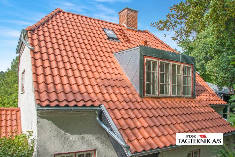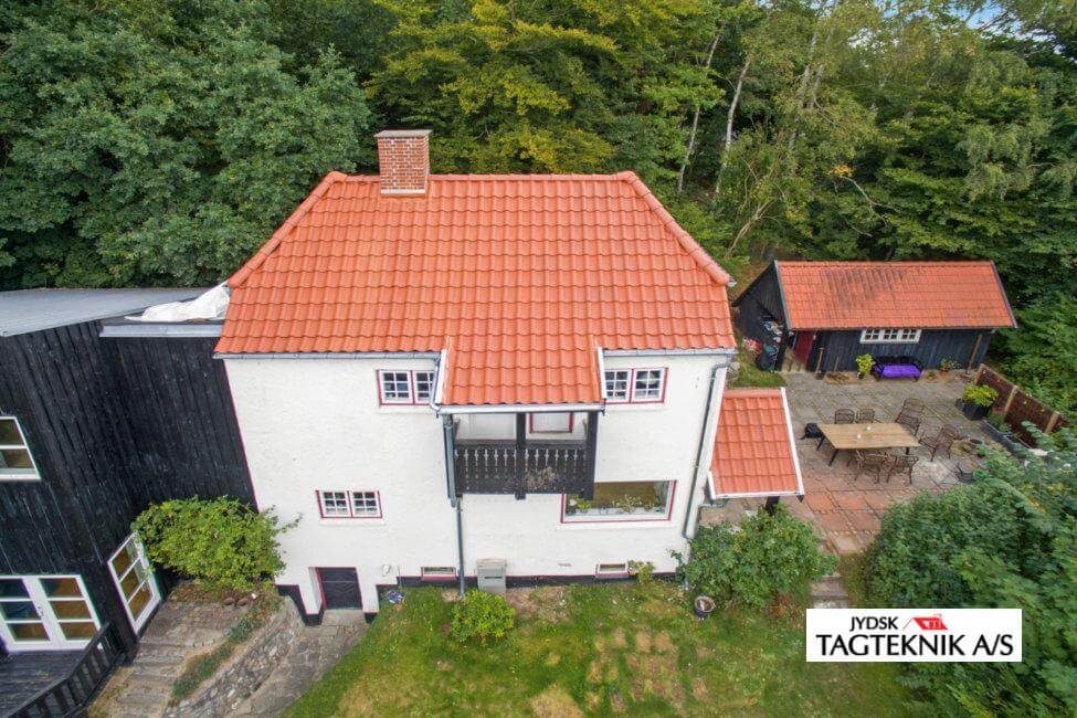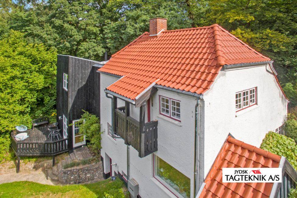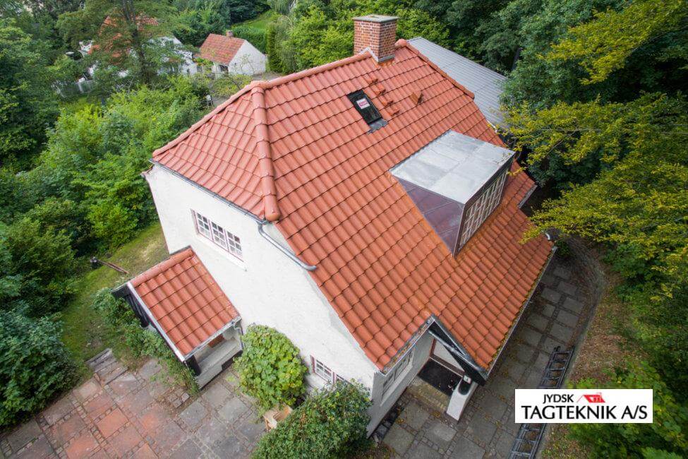 Huset i Holte fik lagt et nyt tegltag inkl. montering af en ny kvist og nye velux ovenlysvinduer, huset fik også nye zinktagrender.