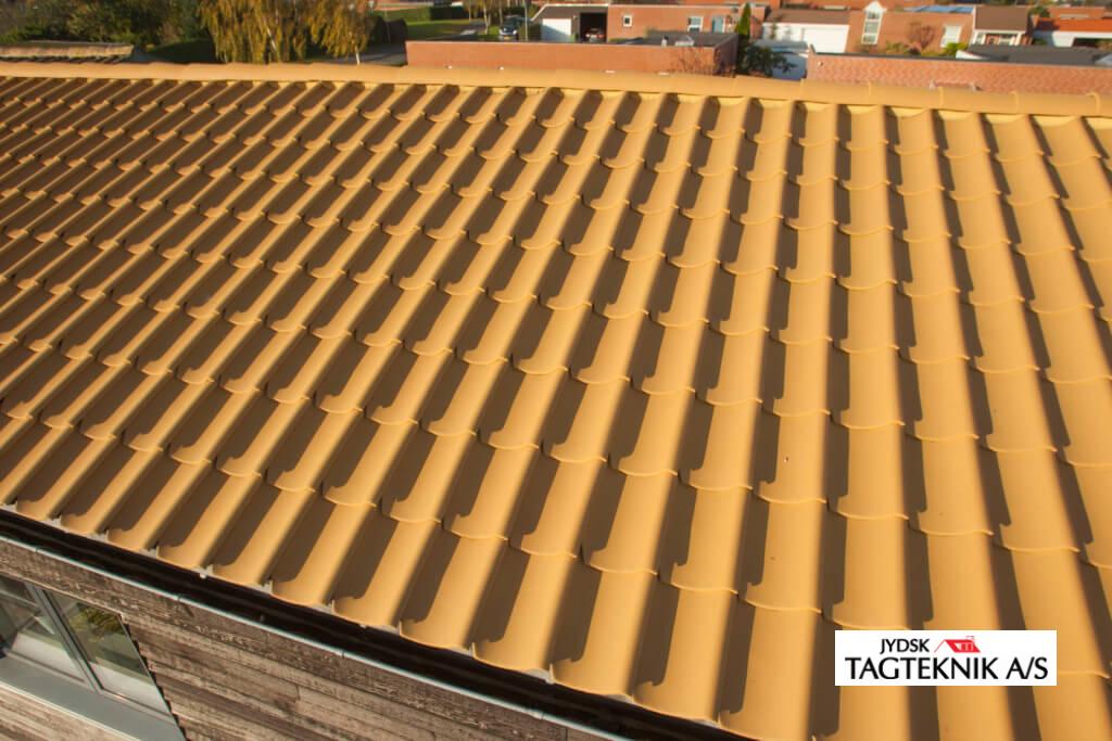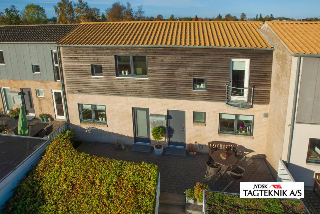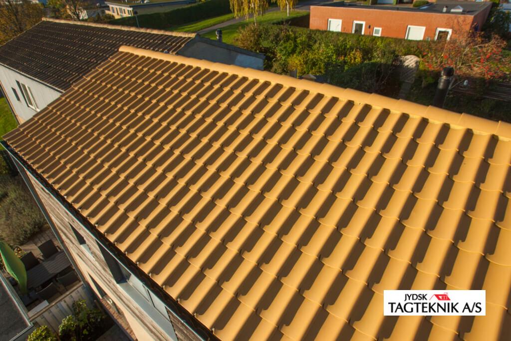 Huset i Hasselager ved Aarhus fik lagt nyt gul tegltag, huset fik også nye zink tagrender.