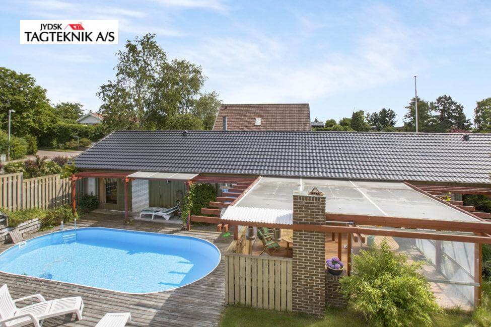 Huset i Lynge fik lagt et nyt Decra elegance tag, huset fik også monteret nye metaltagrender.