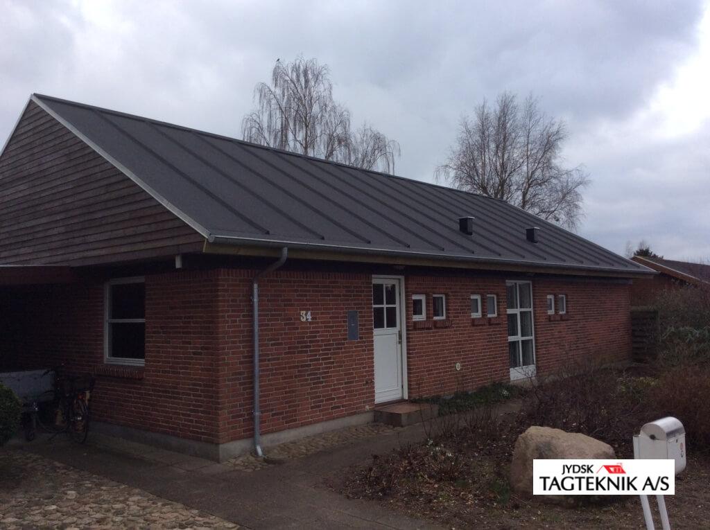 Huset i Skanderborg fik lagt et nyt tag med tagpaplistdækning, huset fik også nye tagrender.