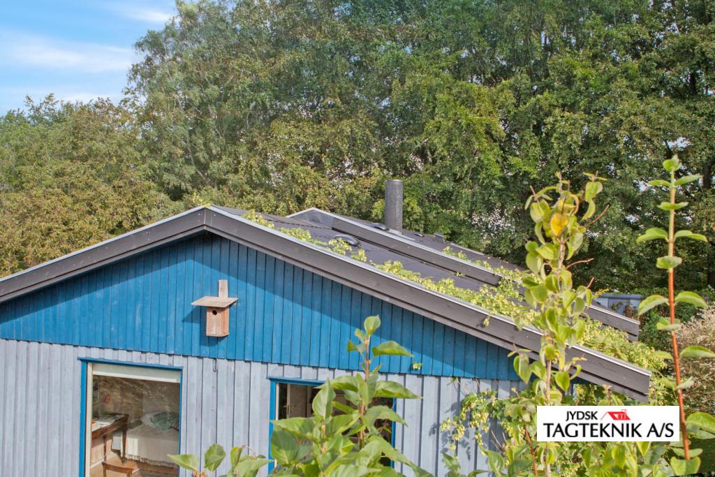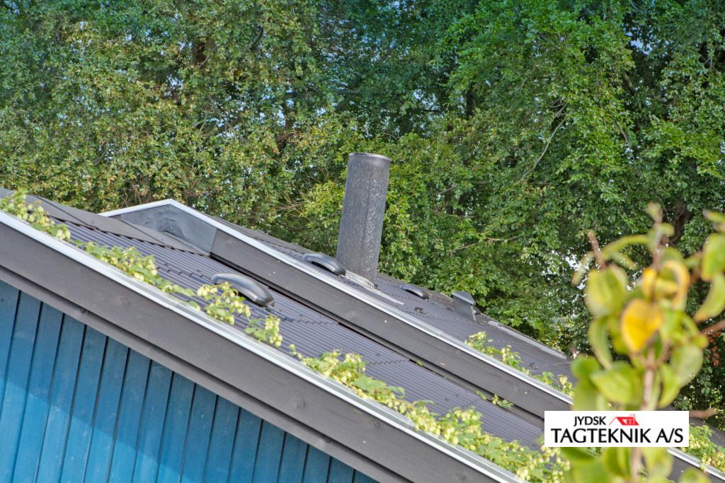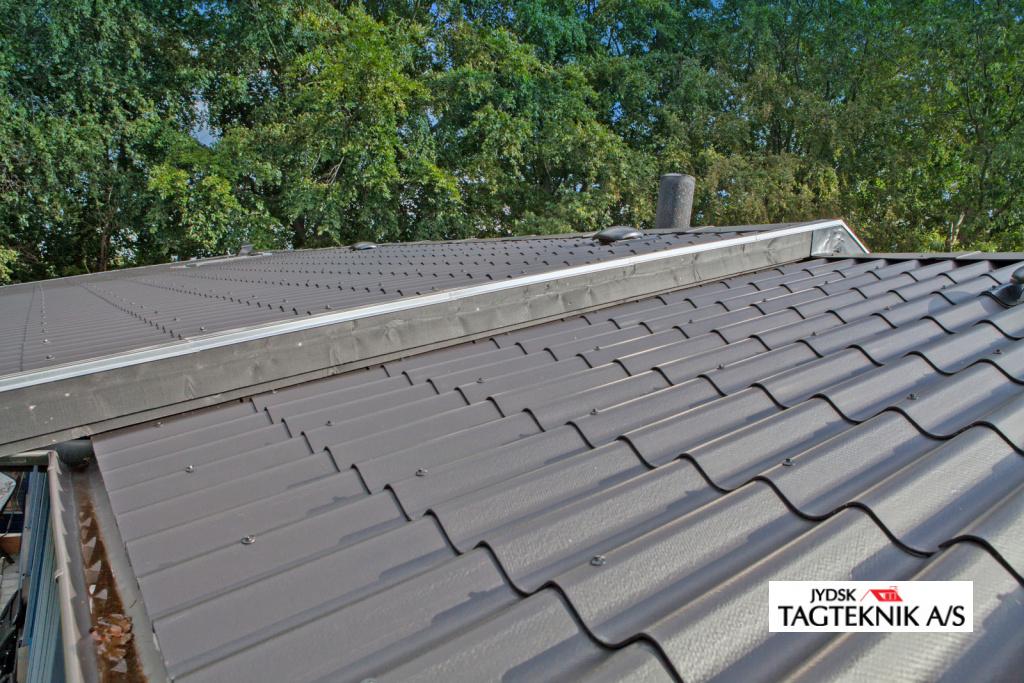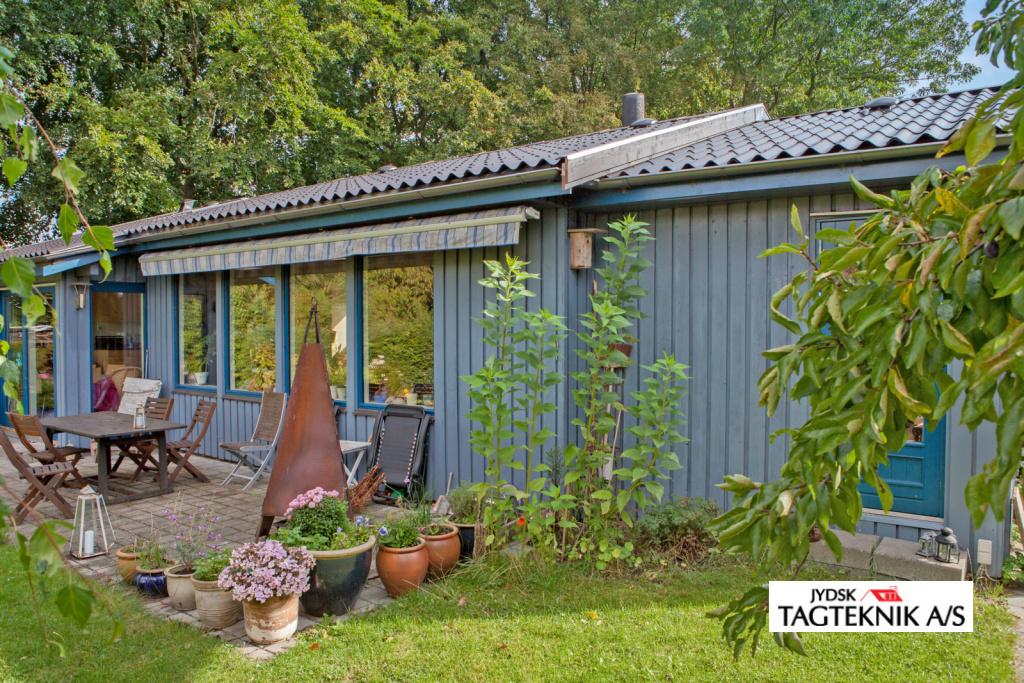 Huset i Solrød fik monteret et nyt bølgeeternittag, huset fik også nye tagrender.