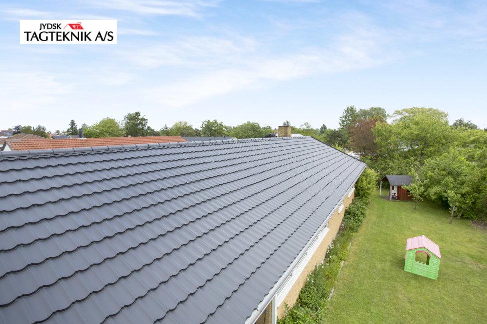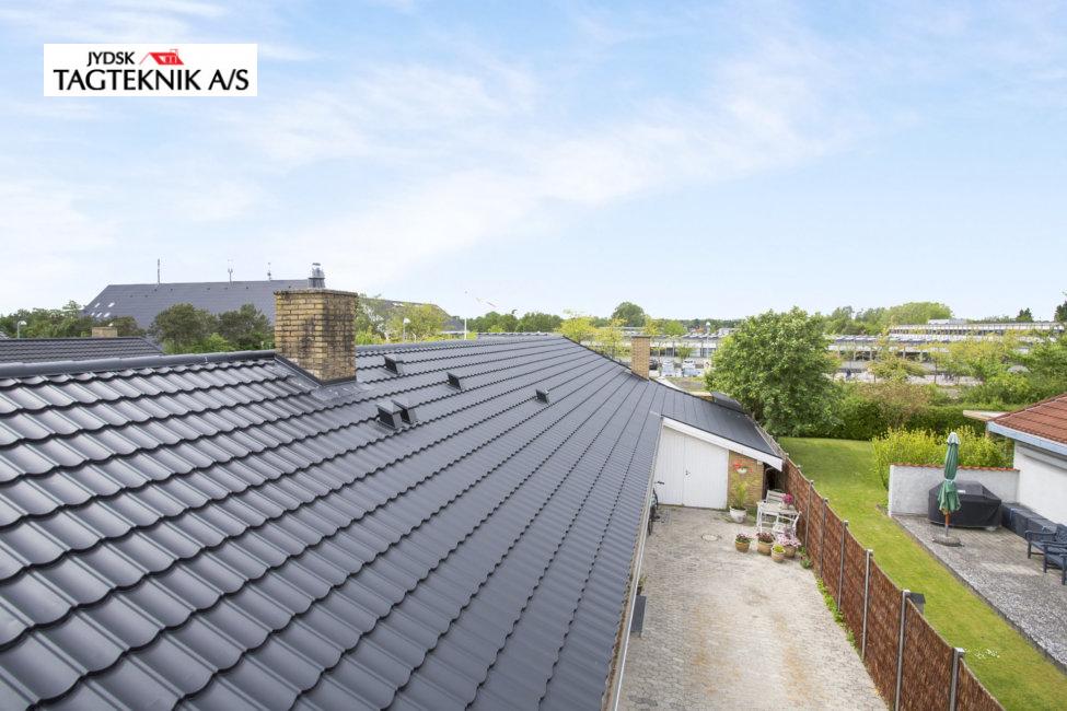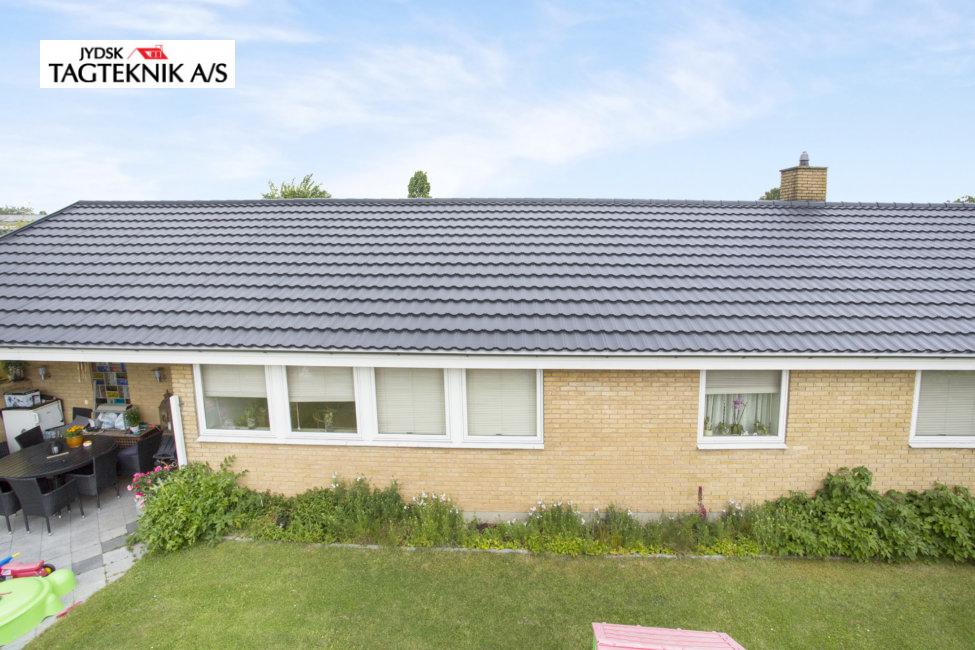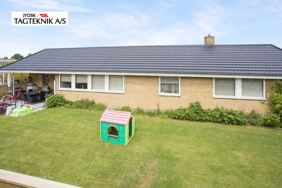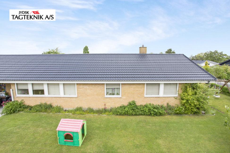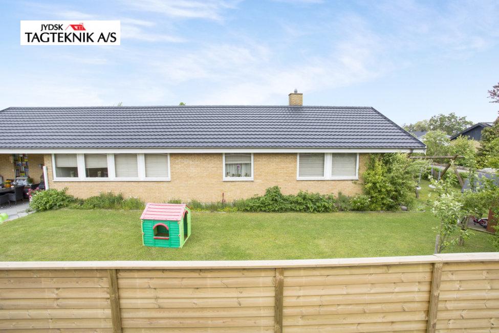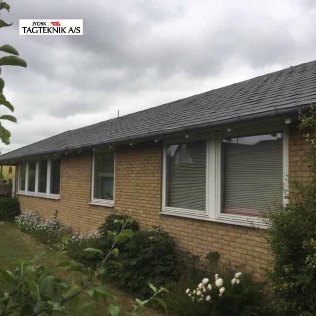 Huset i Karlsunde fik lagt et nyt Decra elegance tag på det eksisterende skifereternittag, huset fik også monteret nye metaltagrender, samt hvidmalede vindskeder.