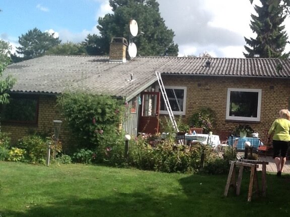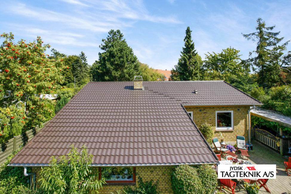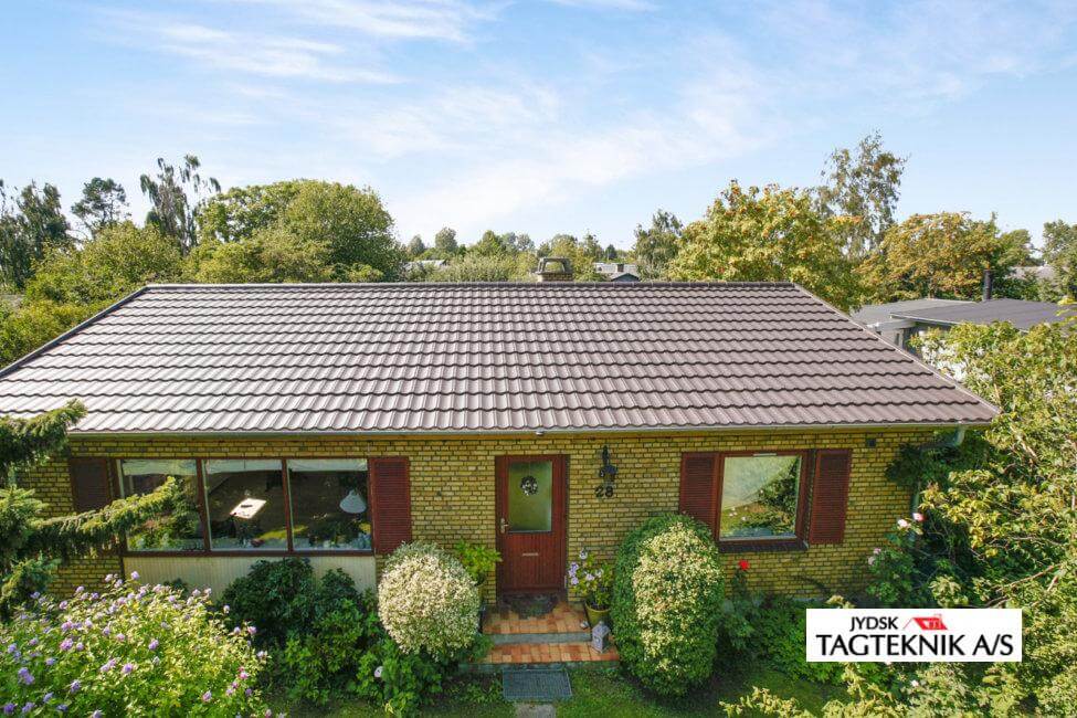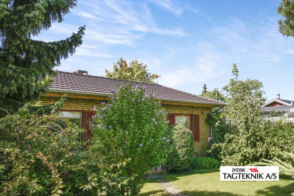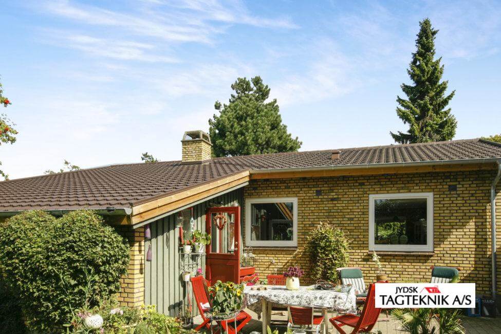 Huset i Li. Skensved fik lagt et nyt Decra elegance tag, huset fik også monteret nye metal tagrender.
