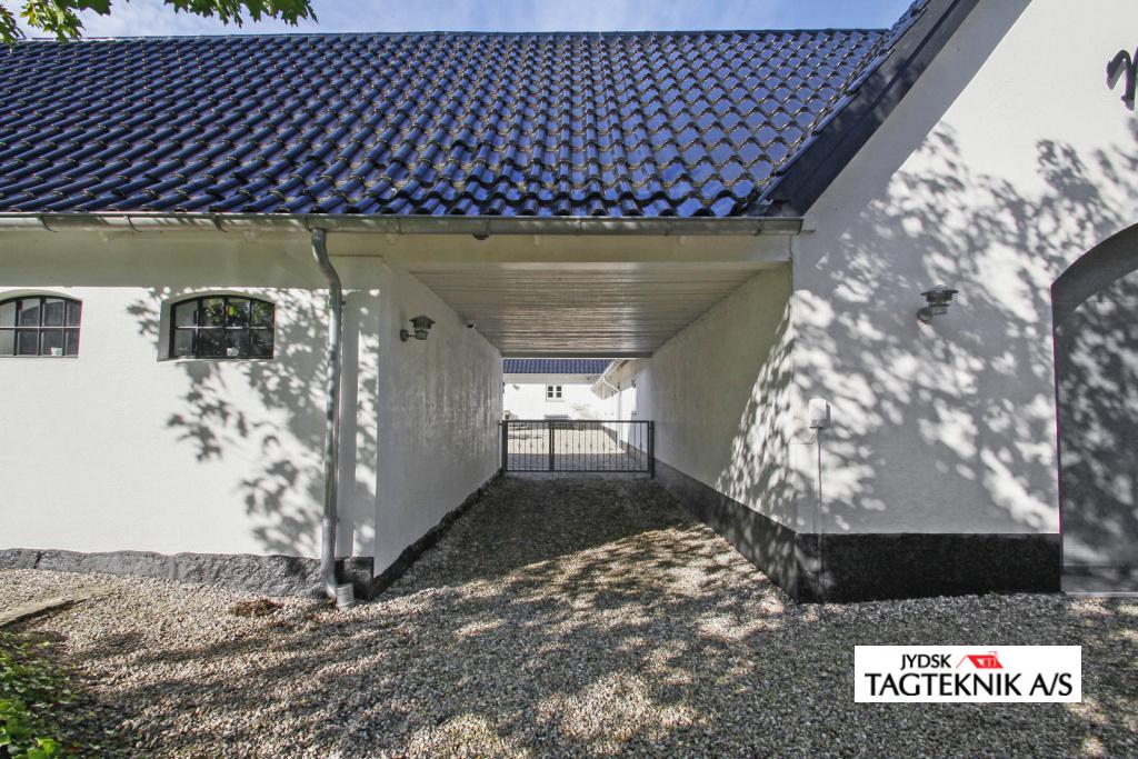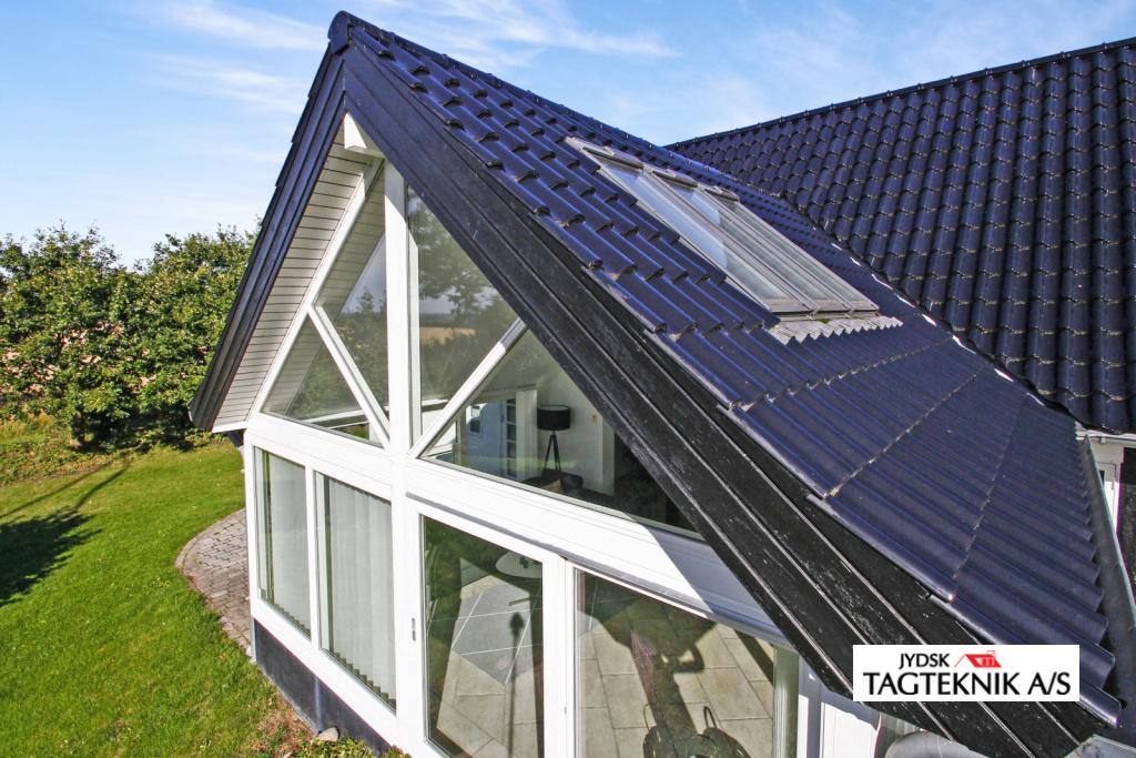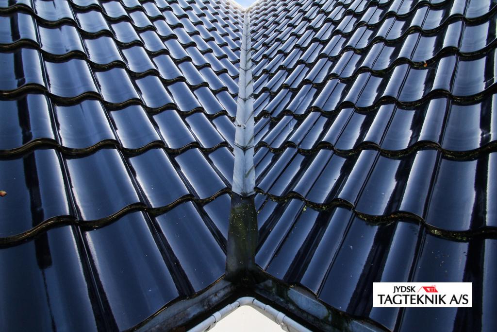 Lystgården i Roskilde fik monteret et nyt sort glaseret tegltag, alt blev skiftet ved renoveringen, ovenlys, kviste, zink tagrender m.v.