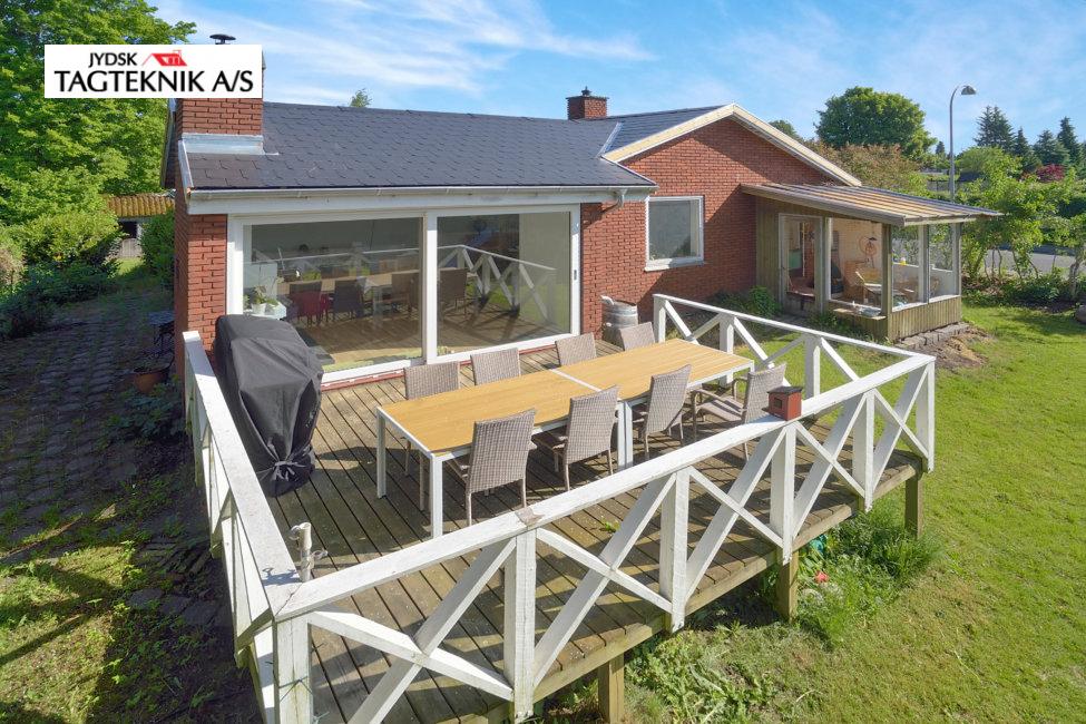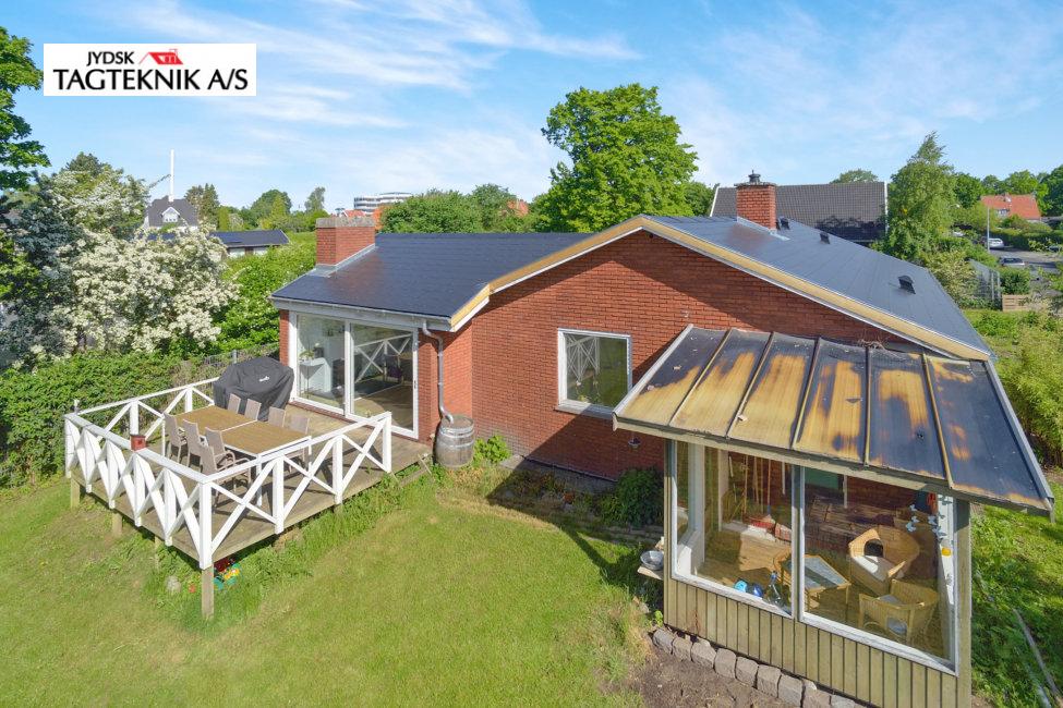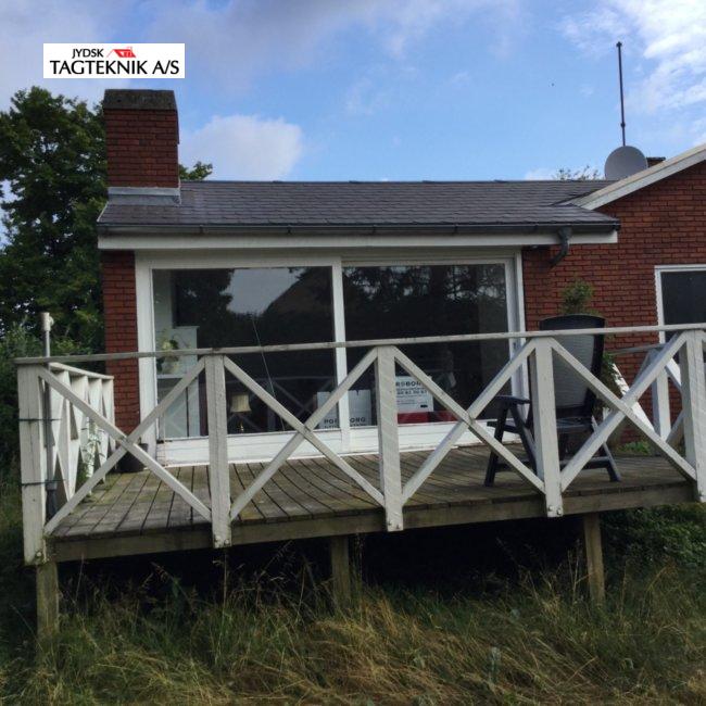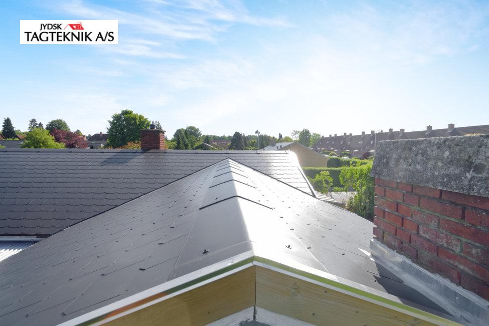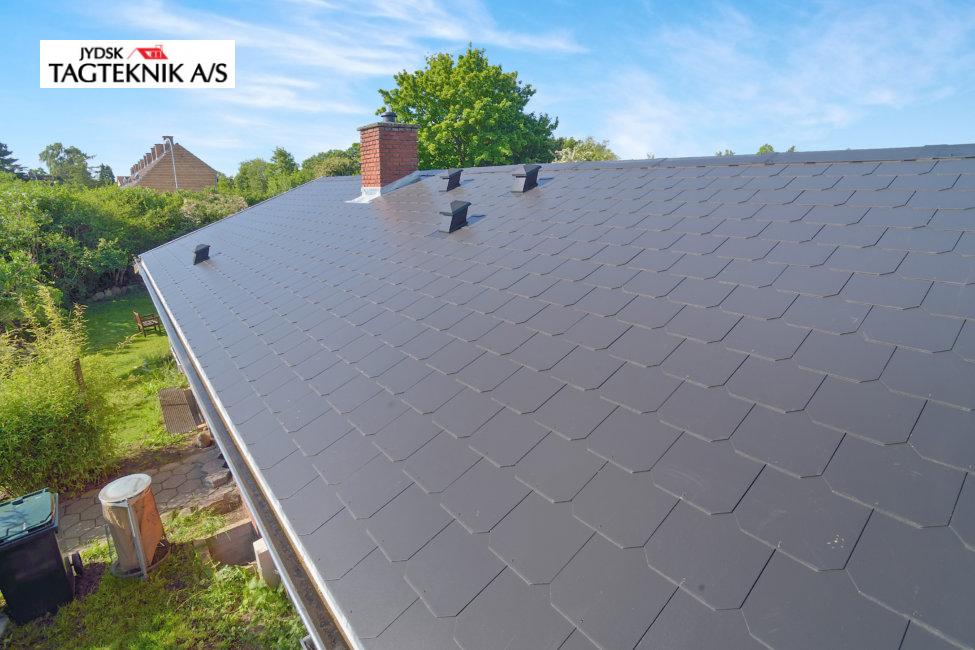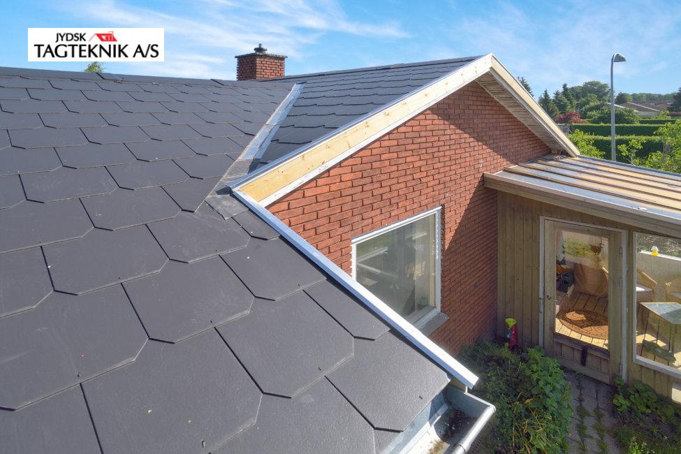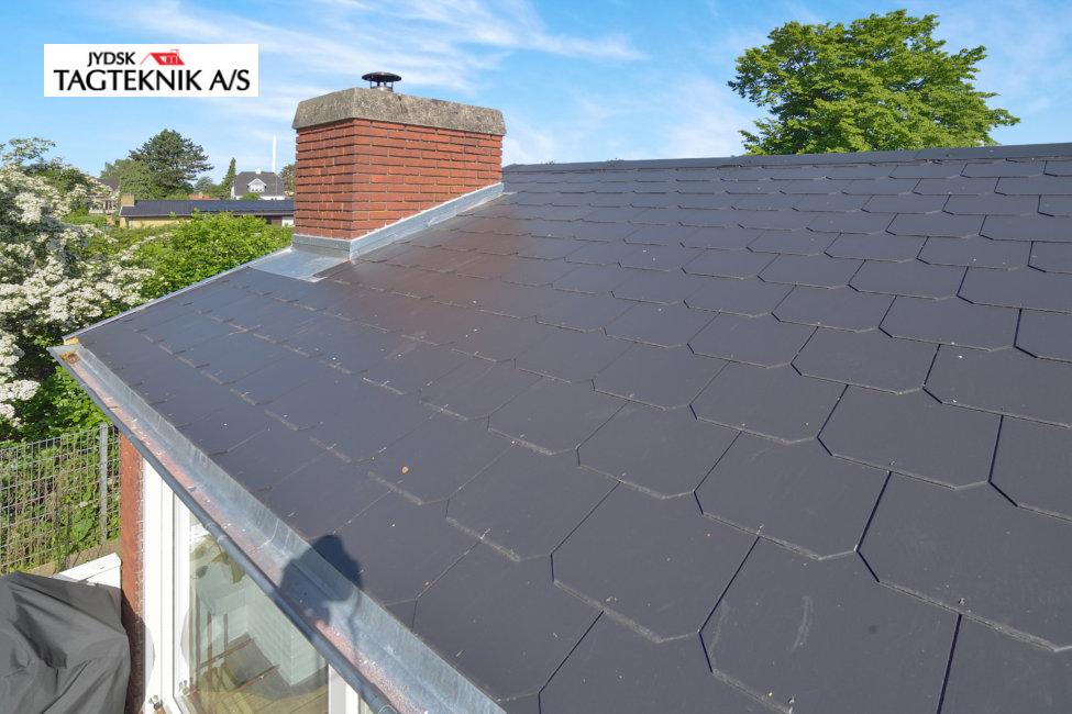 Skifereternit er et “let” og fleksibelt tagmateriale, som ofte kan lægges oven på det eksisterende tag. Jydsk Tagteknik bruger Cembrit skifer, som er dansk produceret og har 15 års produktgaranti. Cembrit skifer er overfladebehandlet, så væksten af mos og alger reduceres. Taget kræver derfor meget lidt vedligehold.