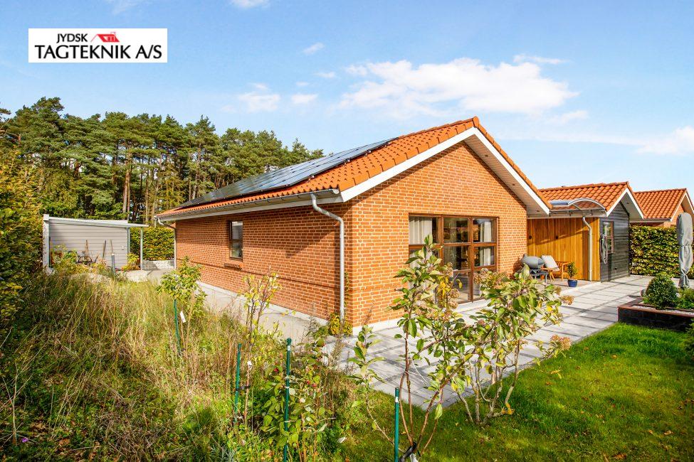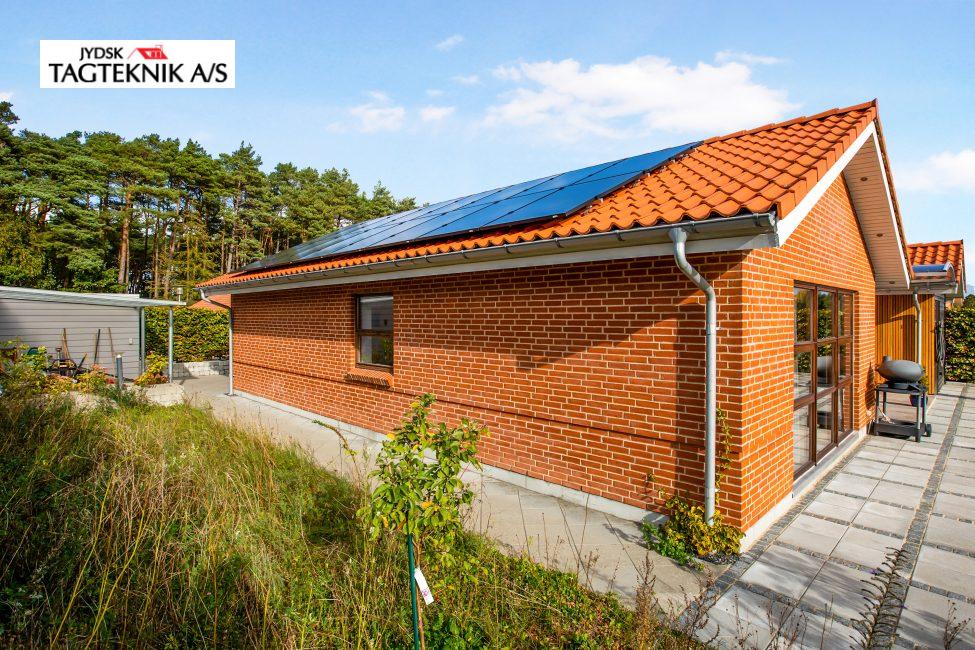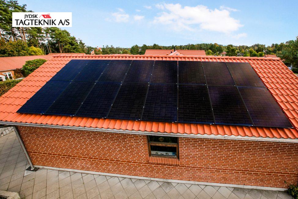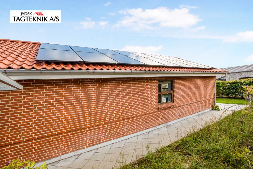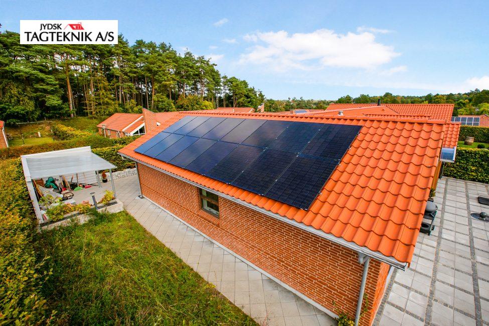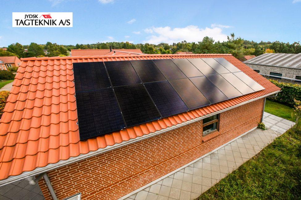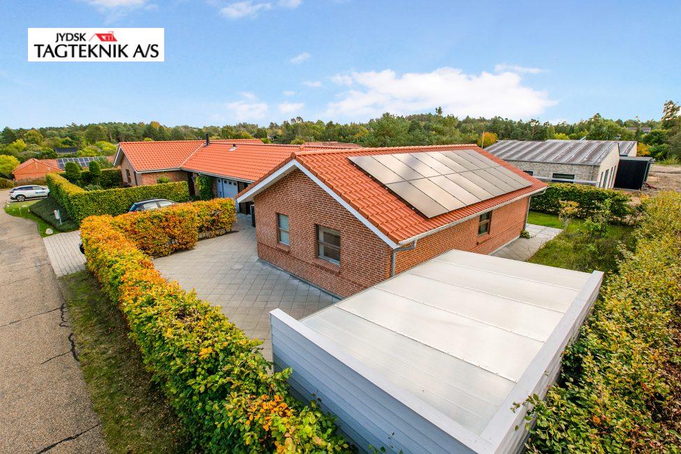Jydsk Tagteknik A/S har leveret og monteret et 6,4 kWp solcelleanlæg inkl. inverter i Ebeltoft. Anlægget indeholder: • 16stk Soluxtec Modul Mono XSC Solar paneler . 3,2 mm tempered ARC (Anti-reflective Coating) • 1stk Huawei sun2000-4KTL-M1 hybridInverter (13,5A) inkl. Mpp-trackere • Inkl. Kabler, beslag og montering. • Inkl. Smartphone App, El-installatør og ændringer i el-tavle Kabeltræk. EL-installatør anmeldelse og fysisk tilslutning i tavlen, det hele fik kunden udført på det flotte hus i Ebeltoft.