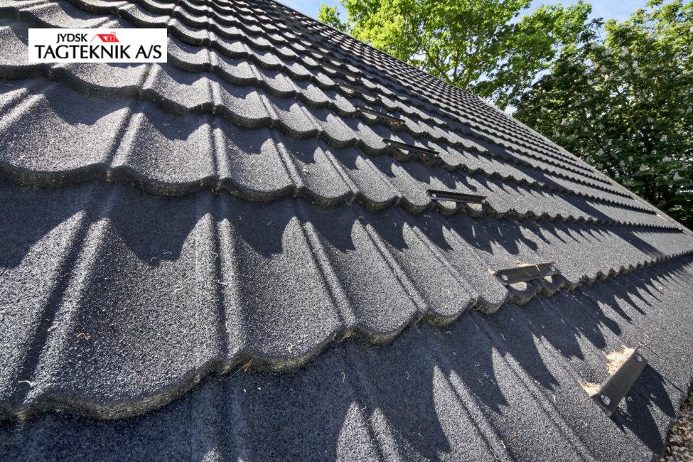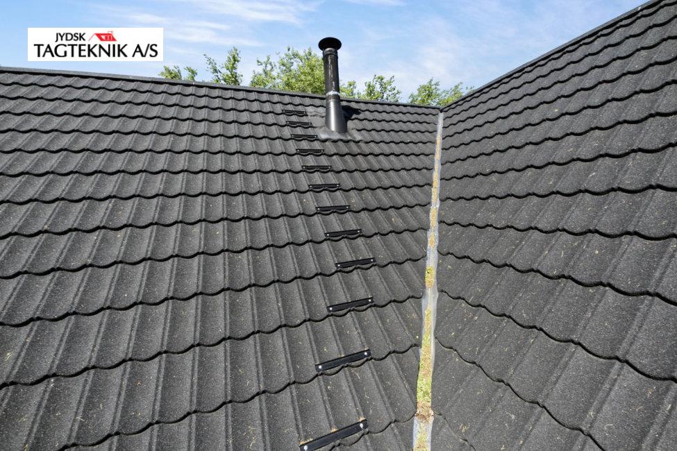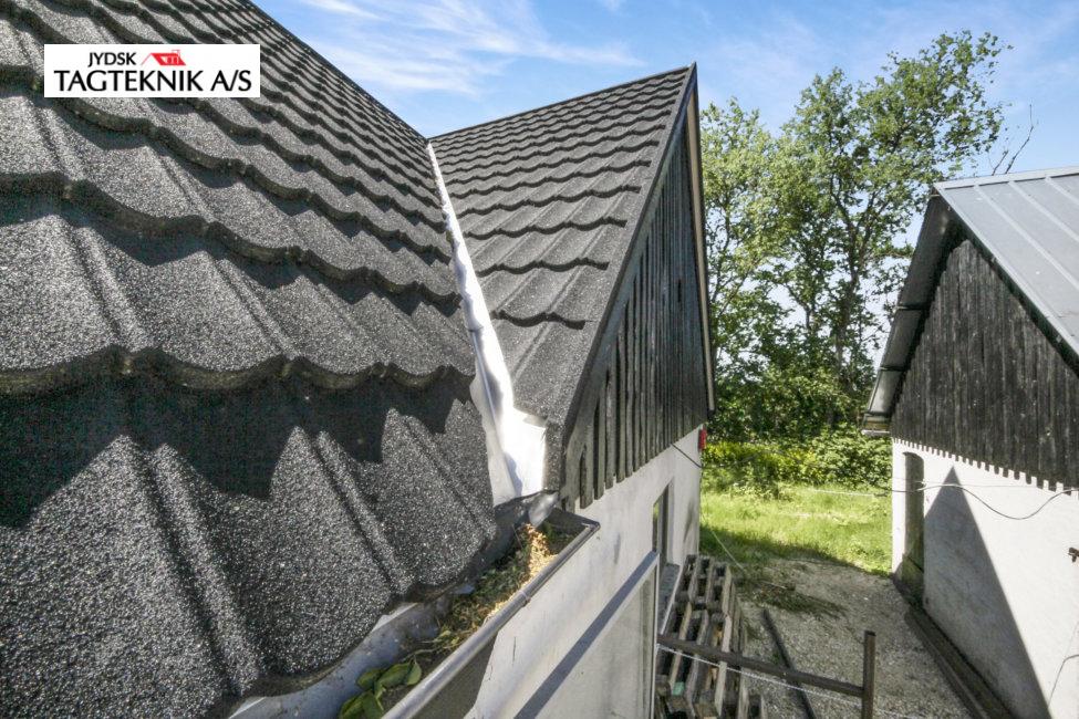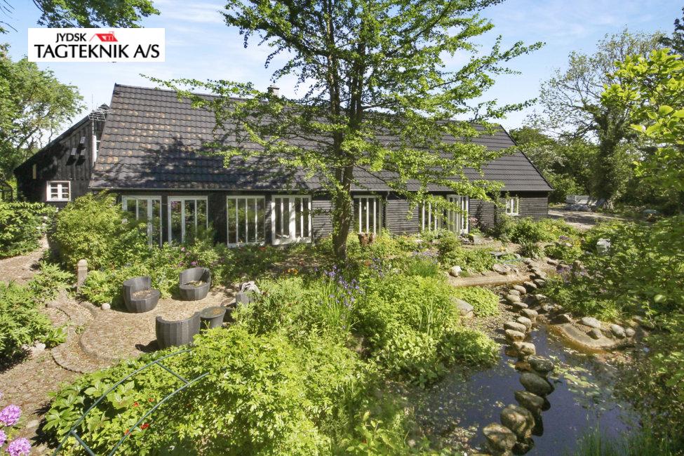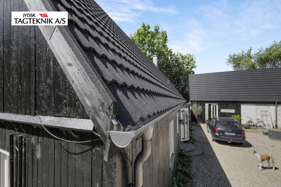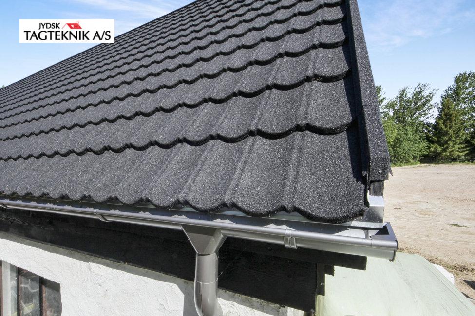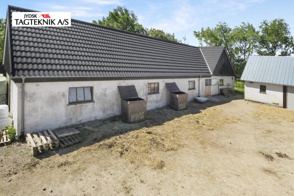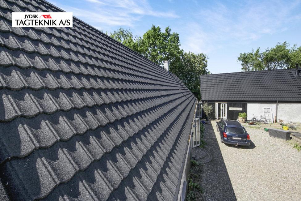 Denne ejendom i Fuglebjerg på Sjælland gik fjernet det gamle ståltag, og lagt nyt Decra Classic. Ejendommen fik også monteret nye metaltagrender.
