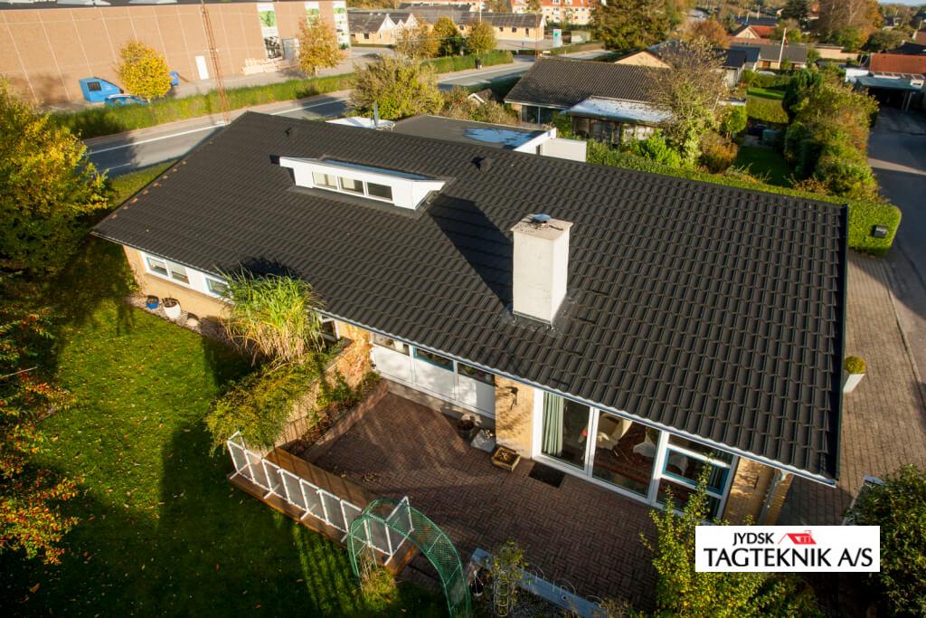 Nyt Decra Classictag blev monteret på villaen i Kolding, villaen gik også monteret nye metal tagrender.