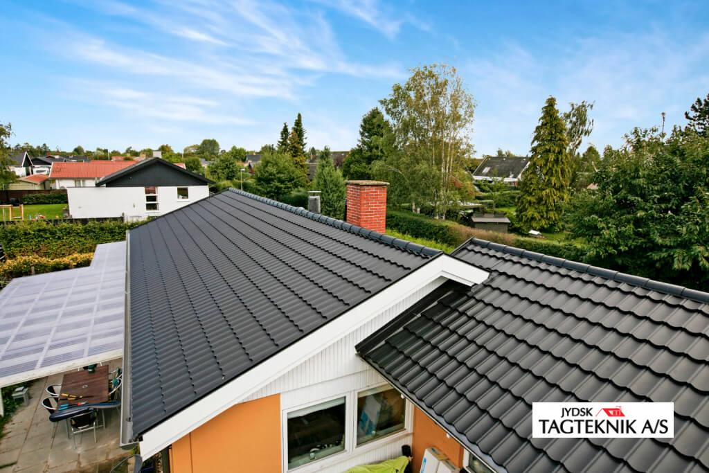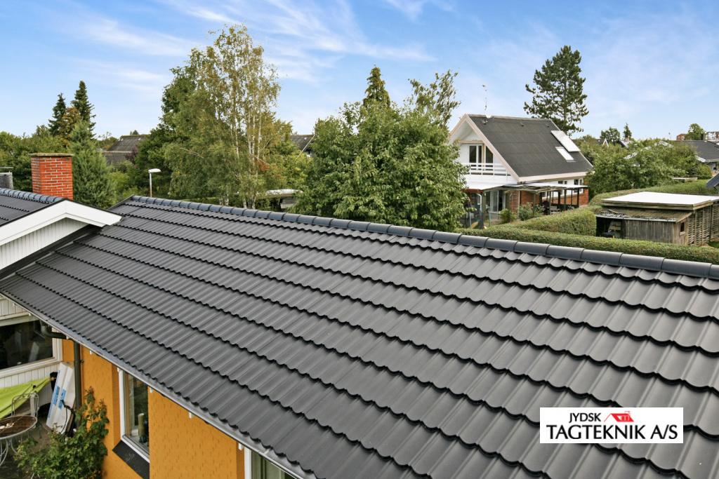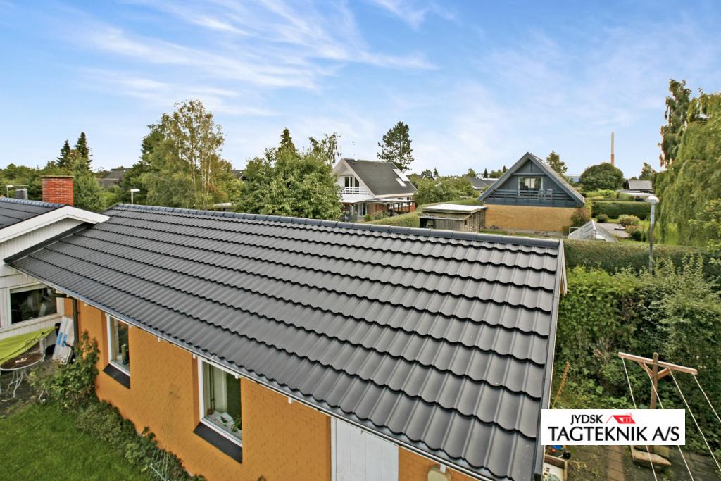 Nyt Decra Elegancetag blev monteret på villaen i Albertslund, villaen fik også monteret nye metal tagrender.,