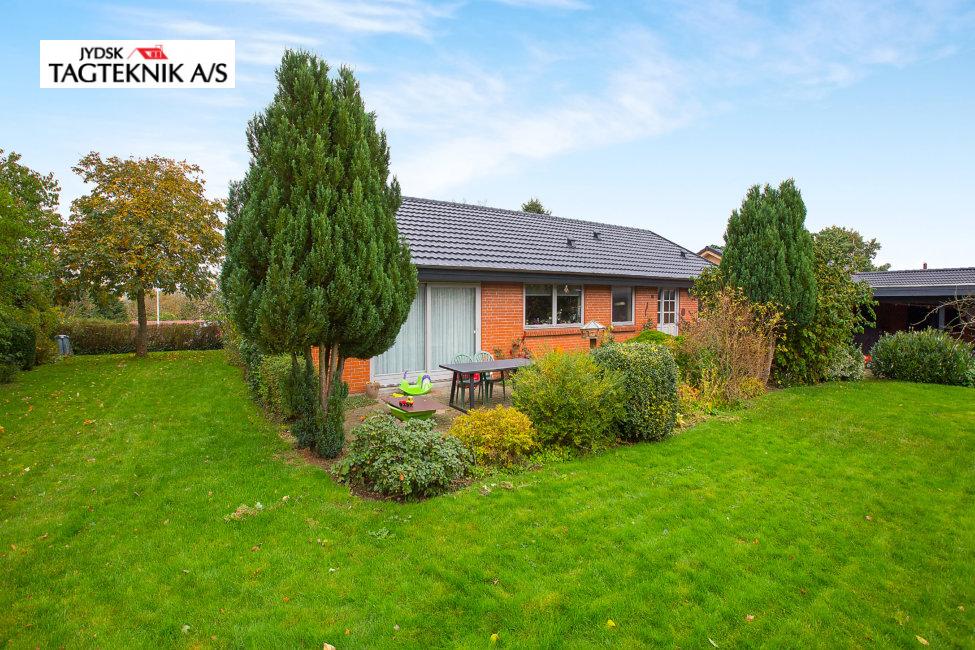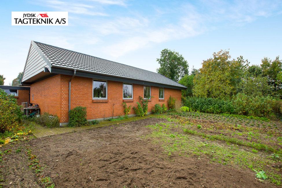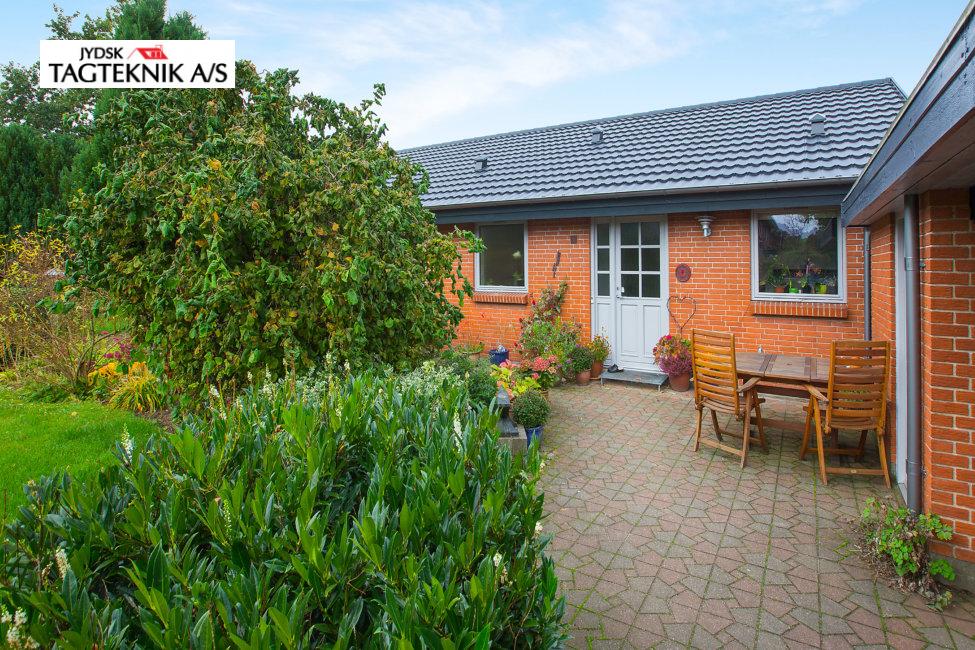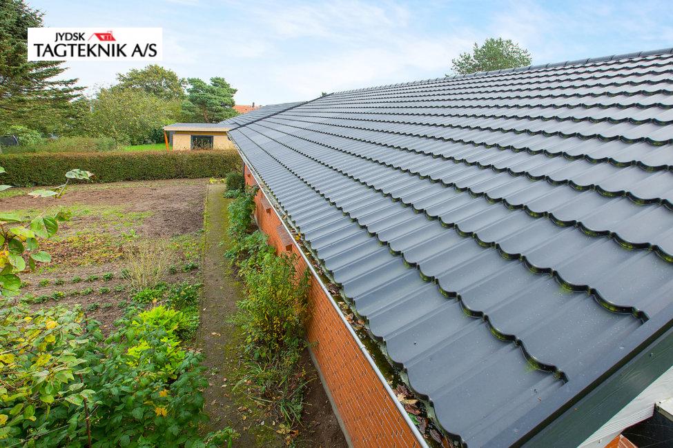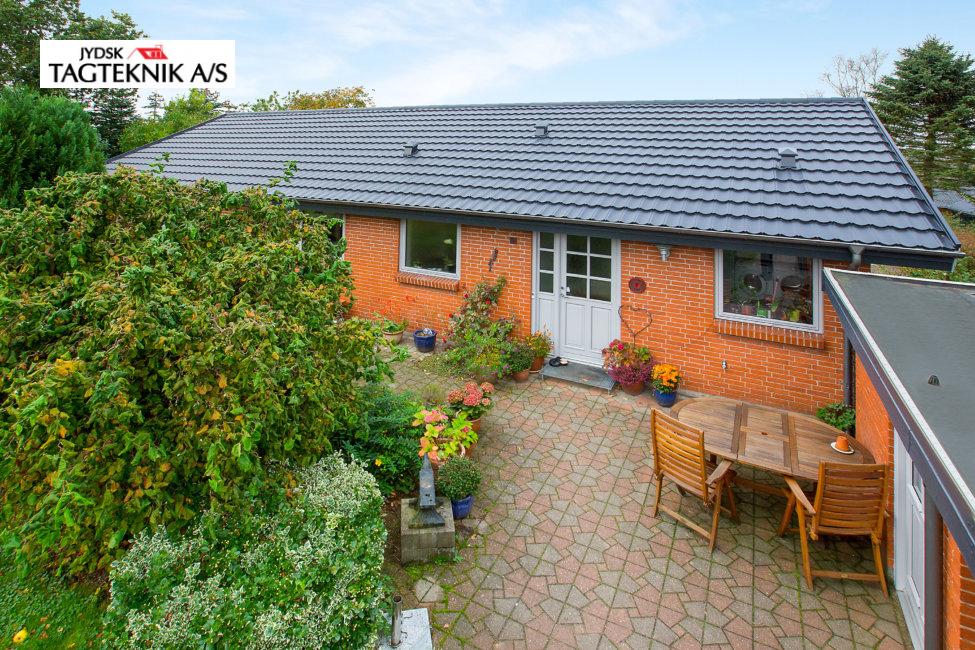 På denne villa i Rødkærsbro, lagde vi nyt Decra tag. Vi monterede også vedligeholdelses frie sternbrædder og vindskeder. Tagrender blev i samme ombæring lavet fra skjulte til synlige.
