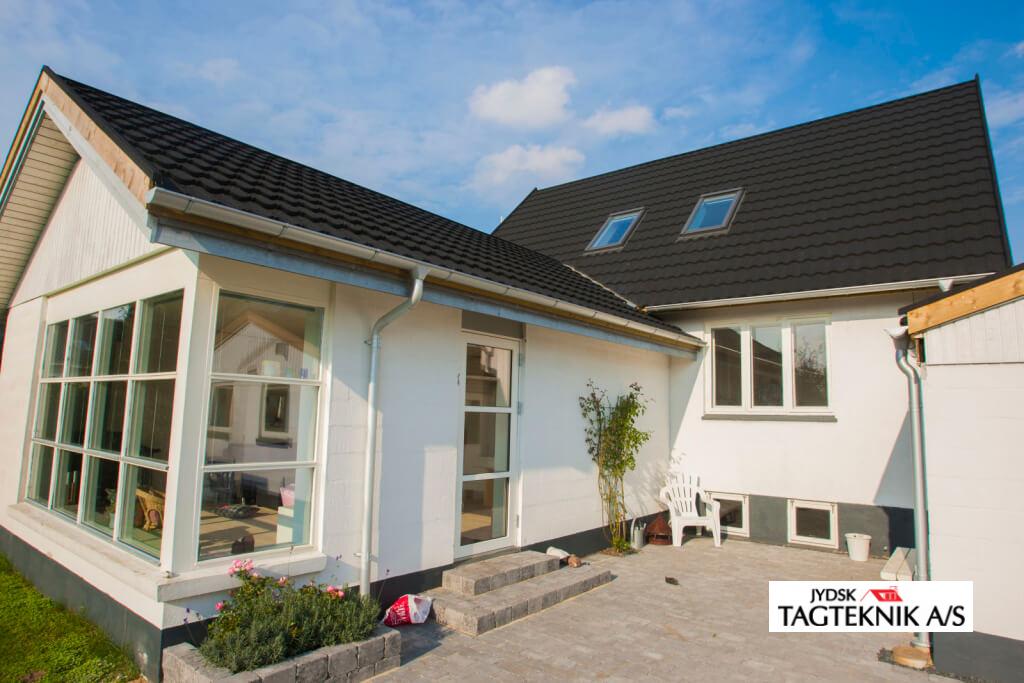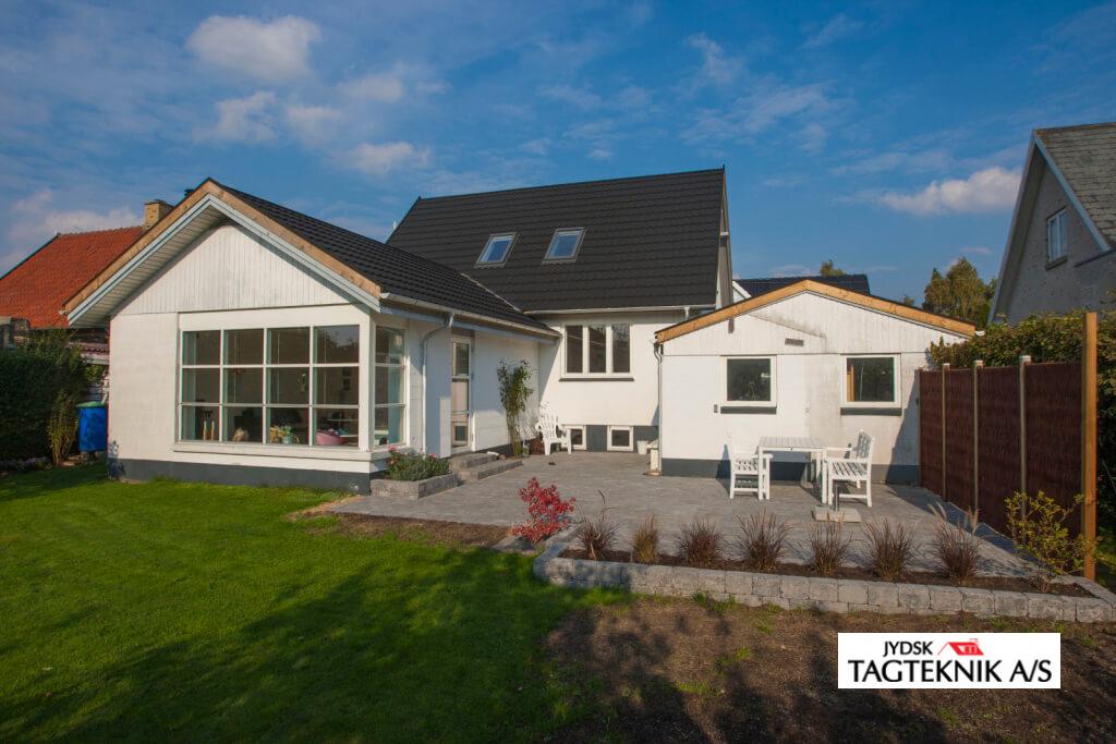 Nyt Decra Classictag blev monteret på villaen i Hornslet, villaen gik også monteret nye metal tagrender.