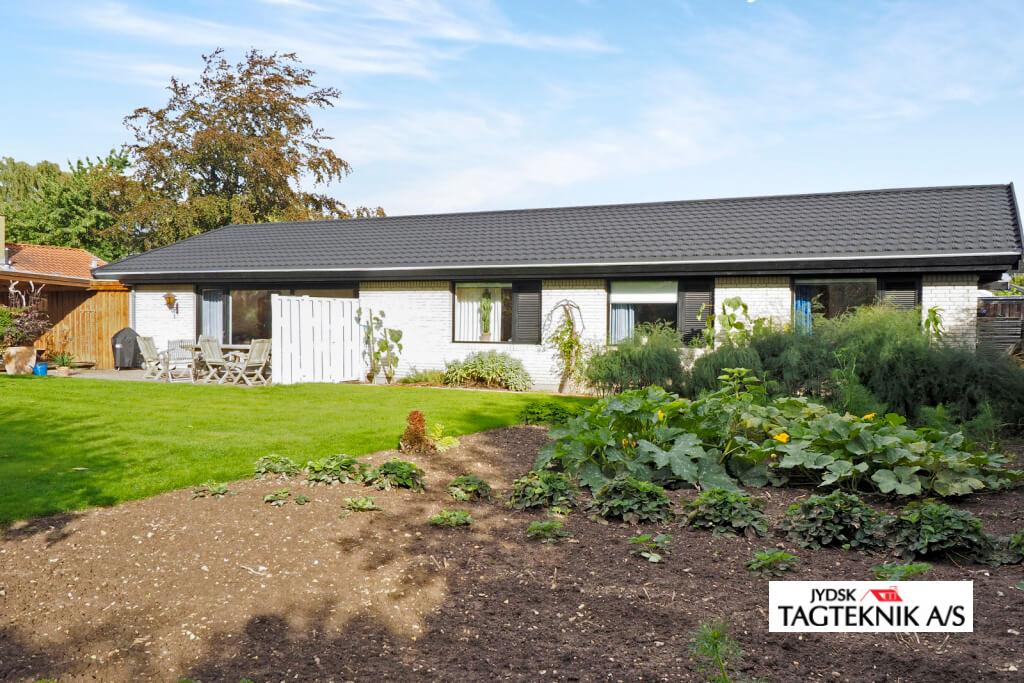 Nyt Decra Classictag blev monteret på villaen i Allerød, villaen fik også monteret nye metal tagrender, husejer valgte at bebeholde de skjulte tagrendersystem.