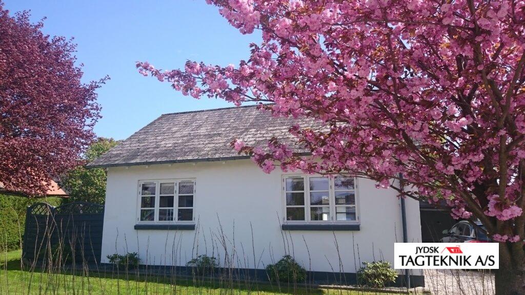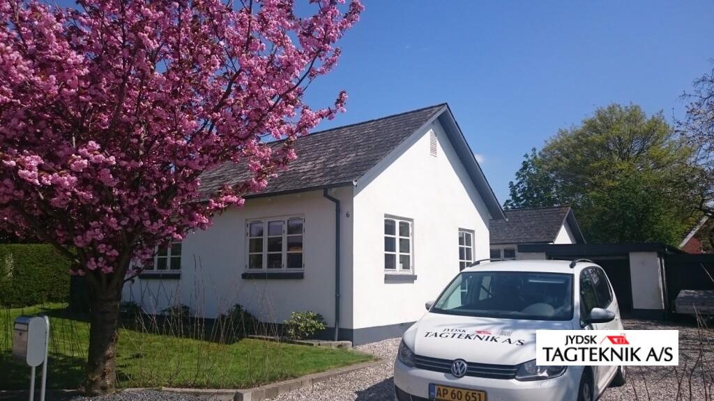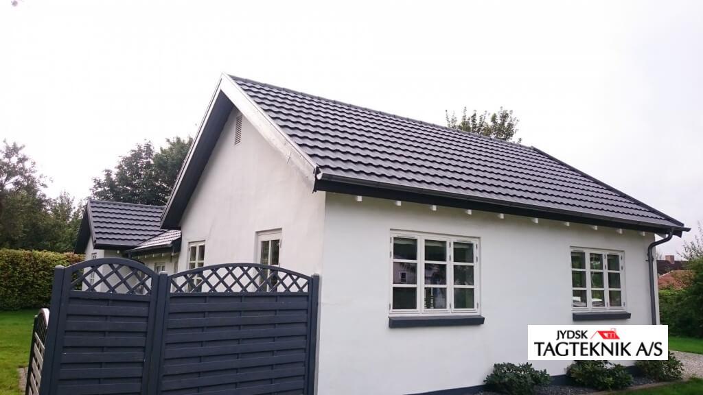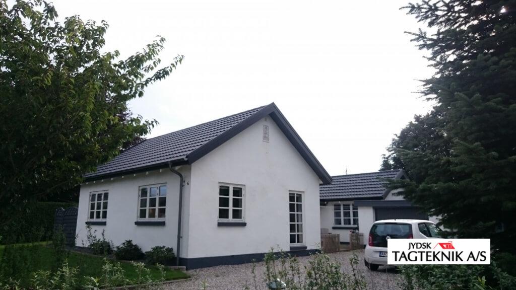 Flot villa i Herning fik det gamle skiferenernittag udskiftet med et nyt Decra Elegancetag, villaen fik også monteret nye metal tagrender.