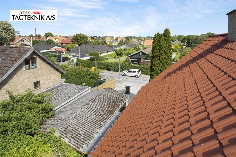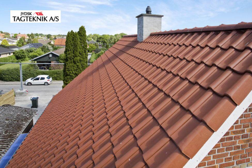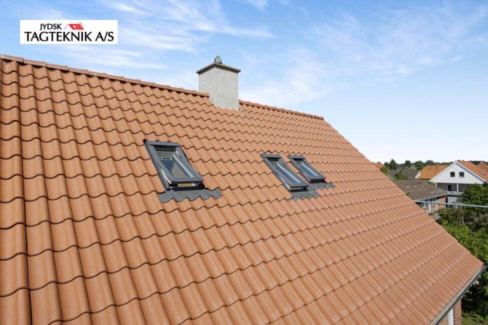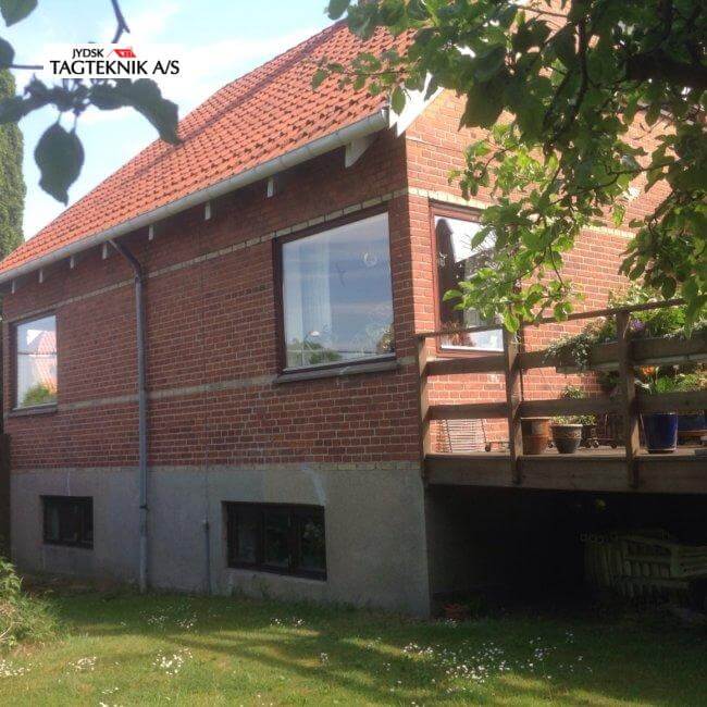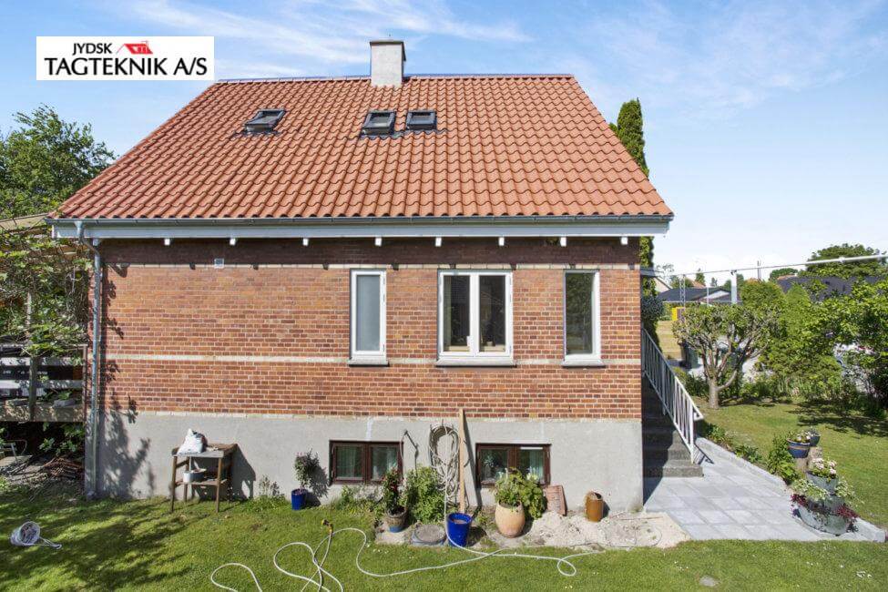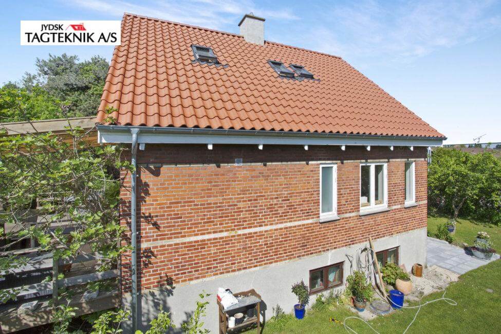 Denne villa i Hvidovre, har fået nyt flot tegl tag. Nye zink tagrender og 3 nye Velux vinduer. Stenene er HF 14 Brandenburger.