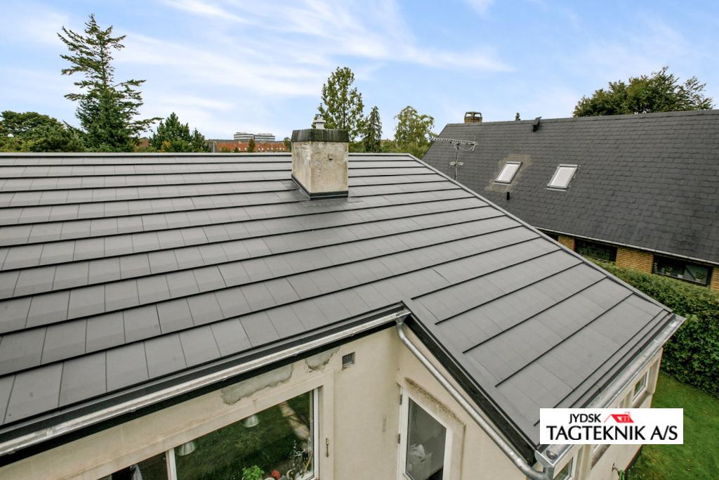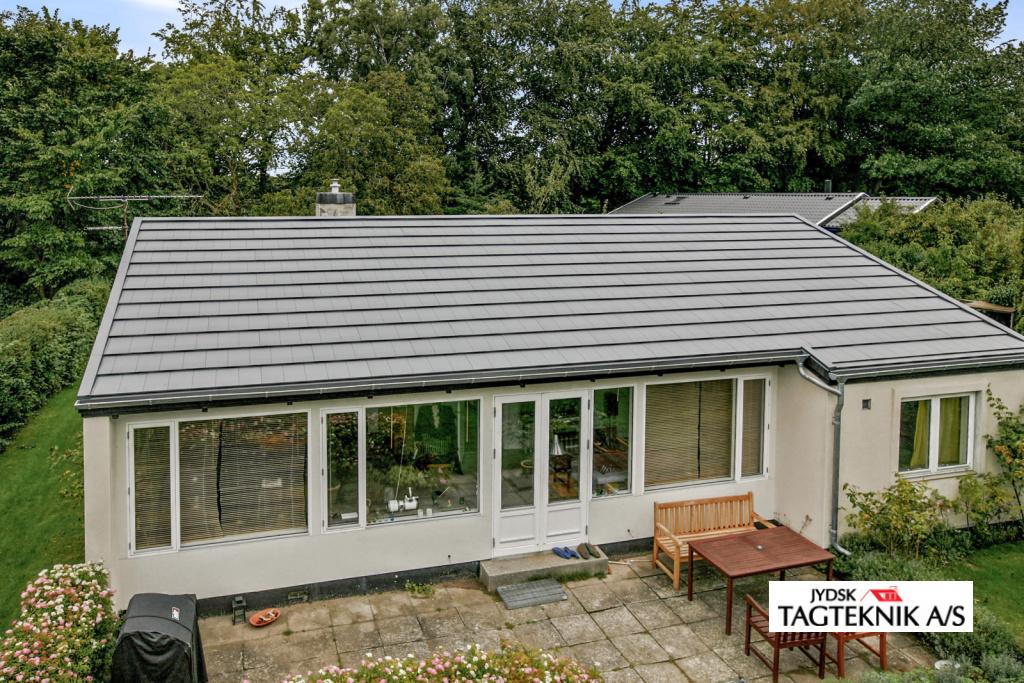 Nyt Quadrotag blev monteret på villaen i Solrød Strand, villaen gik også monteret nye metal tagrender.