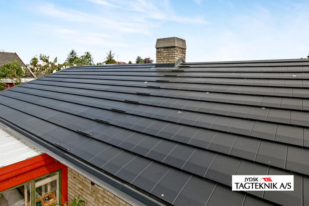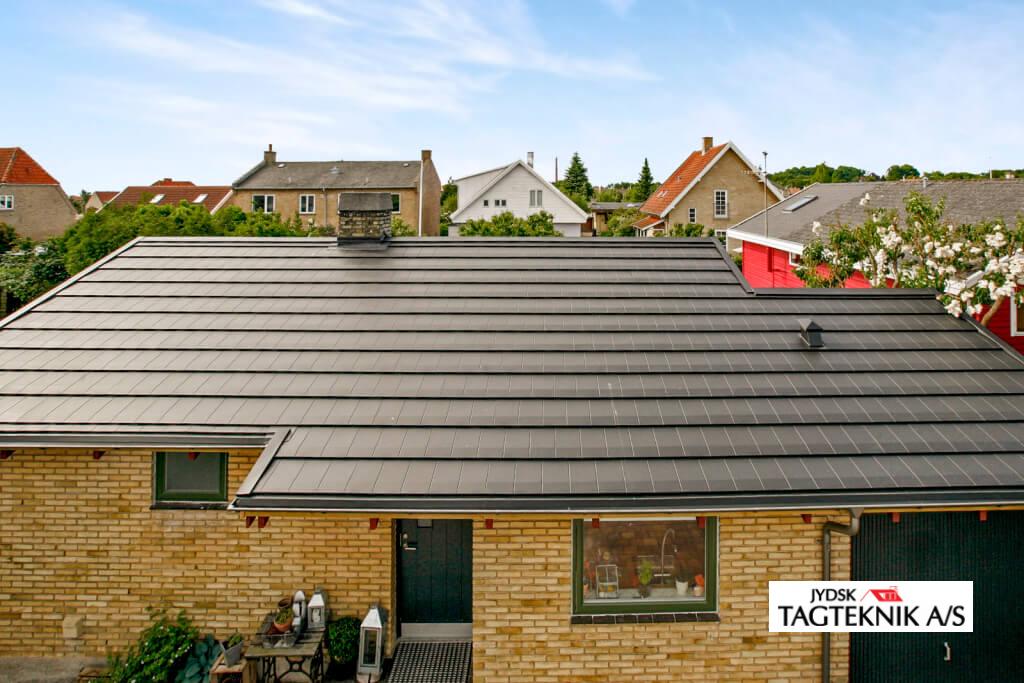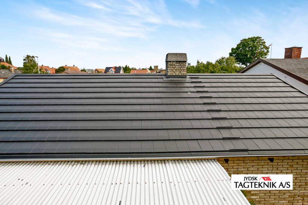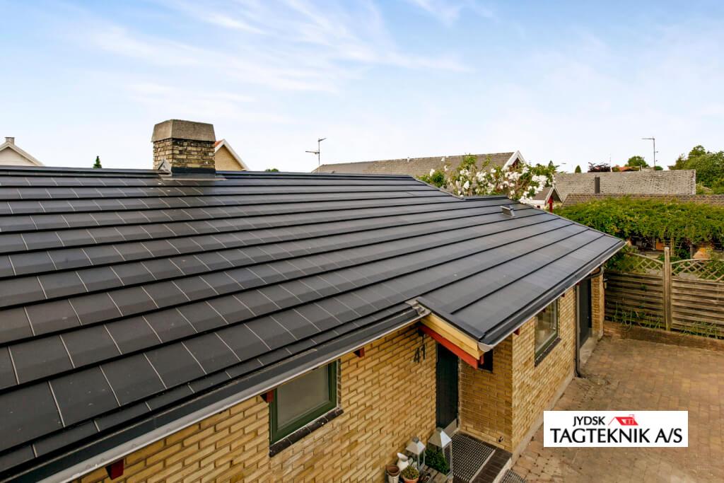 Nyt Quadrotag i farven Sort blev monteret på villaen i Helsingør, villaen gik også monteret nye metal tagrender.