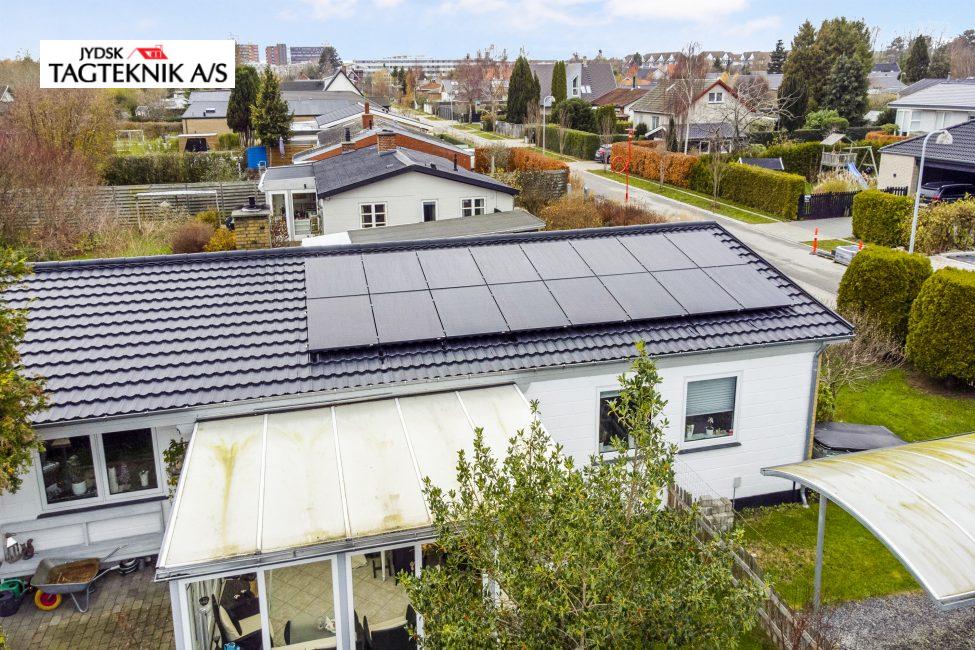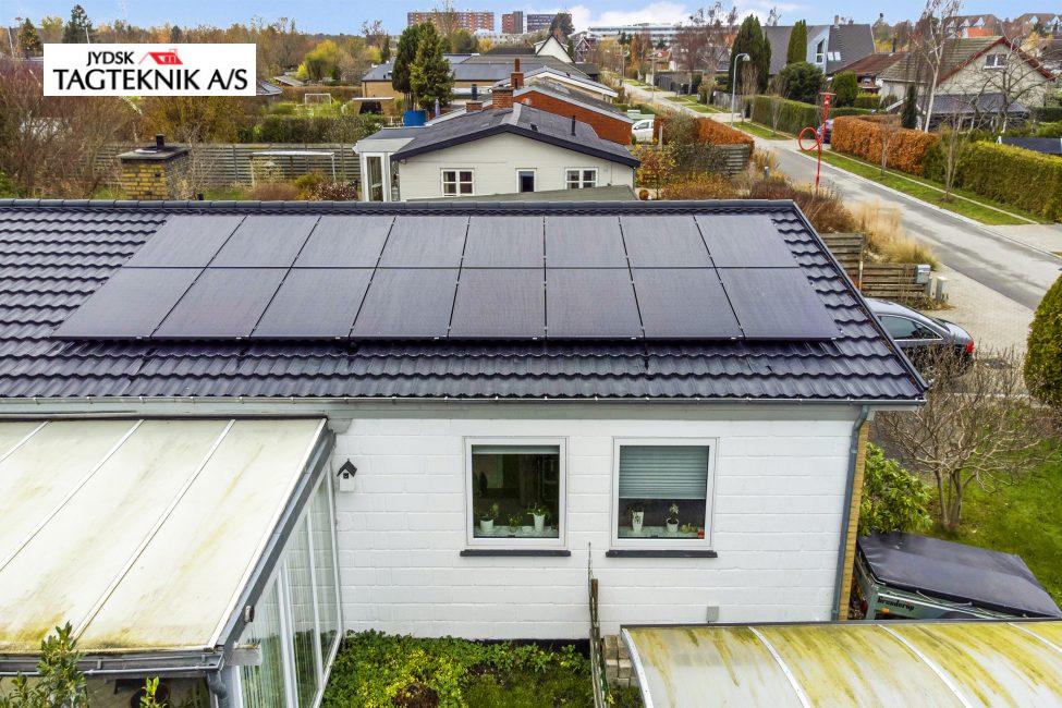 Jydsk Tagteknik A/S har leveret og monteret et 6,4 kWp solcelleanlæg inkl. inverter i Ishøj. Anlægget indeholder: • 16stk Soluxtec Modul Mono XSC Solar paneler på eksisterende Ståltag . 3,2 mm tempered ARC (Anti-reflective Coating) • 1stk Huawei sun2000-4KTL-M1 hybridInverter (13,5A) inkl. Mpp-trackere • Inkl. Kabler, beslag og montering. • Inkl. Smartphone App, El-installatør og ændringer i el-tavle Kabeltræk. EL-installatør anmeldelse og fysisk tilslutning i tavlen.