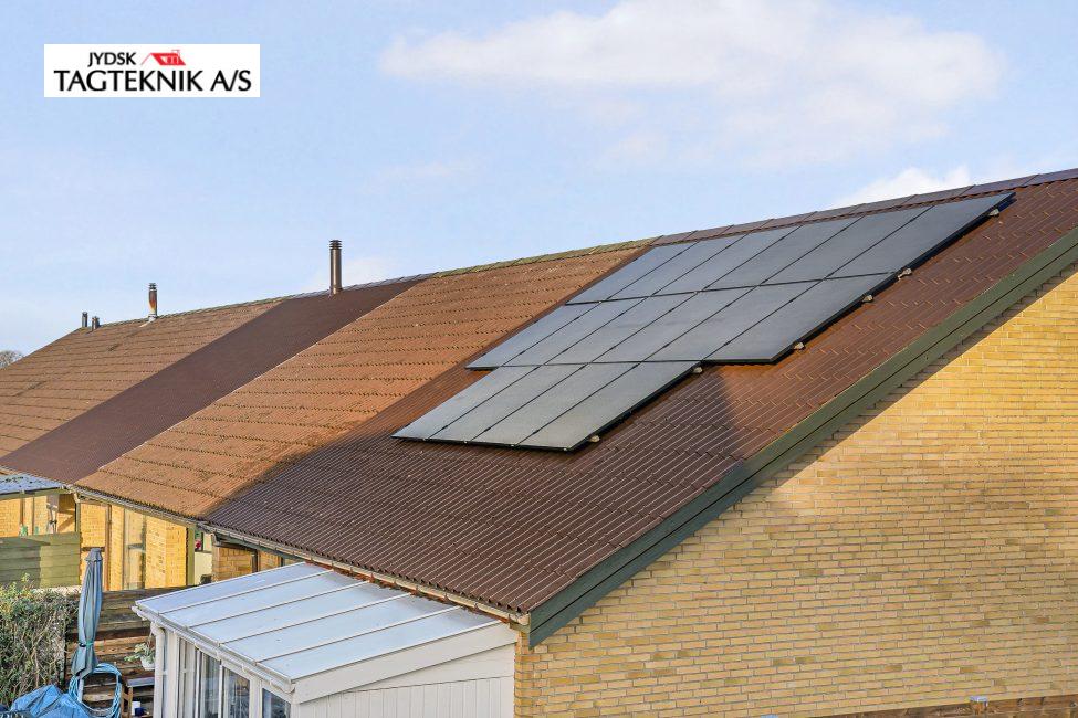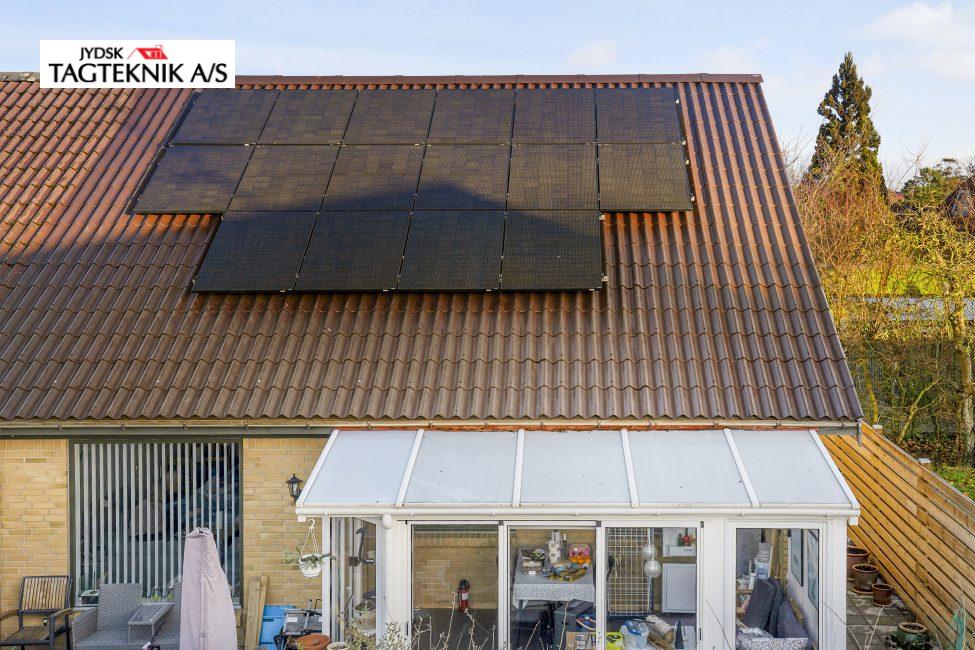 Jydsk Tagteknik A/S har leveret og monteret et 6,4 kWp solcelleanlæg inkl. inverter i Store Heddinge. Anlægget indeholder: • 16stk Soluxtec Modul Mono XSC Solar paneler på eksisterende Ståltag . 3,2 mm tempered ARC (Anti-reflective Coating) • 1stk Huawei sun2000-4KTL-M1 hybridInverter (13,5A) inkl. Mpp-trackere • Inkl. Kabler, beslag og montering. • Inkl. Smartphone App, El-installatør og ændringer i el-tavle Kabeltræk. EL-installatør anmeldelse og fysisk tilslutning i tavlen.