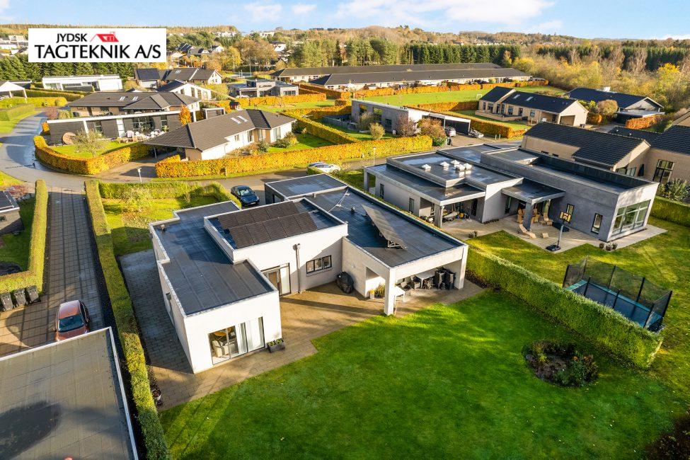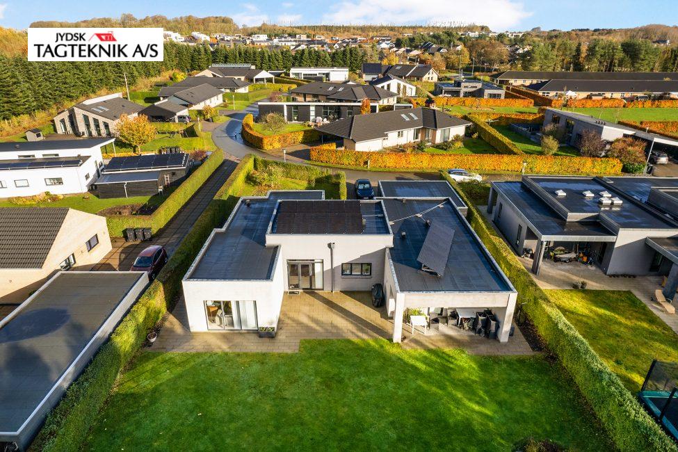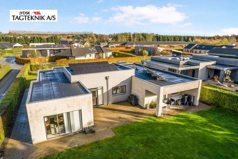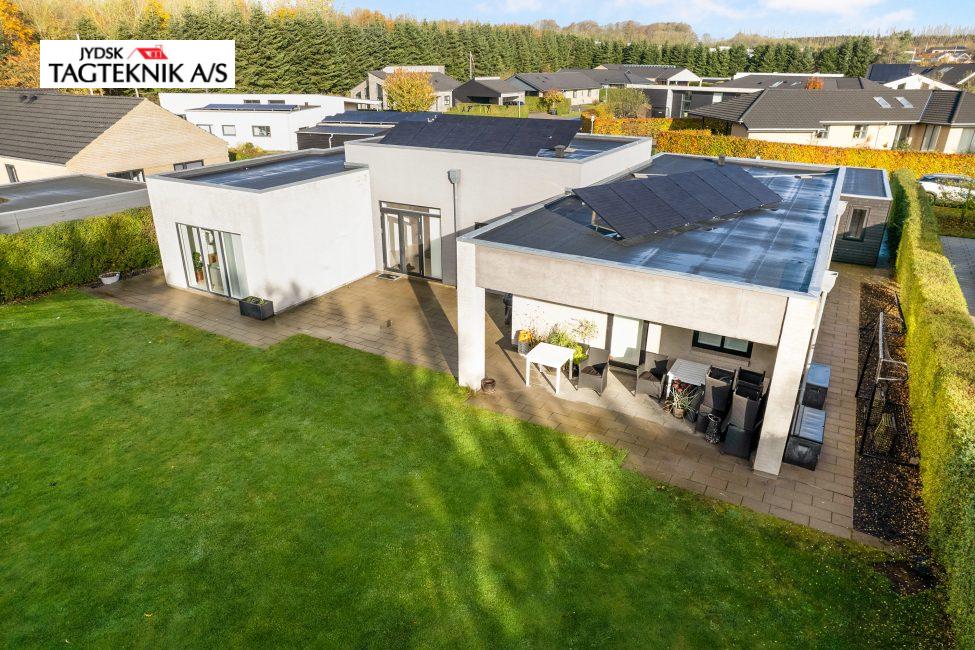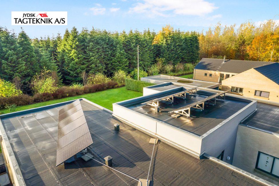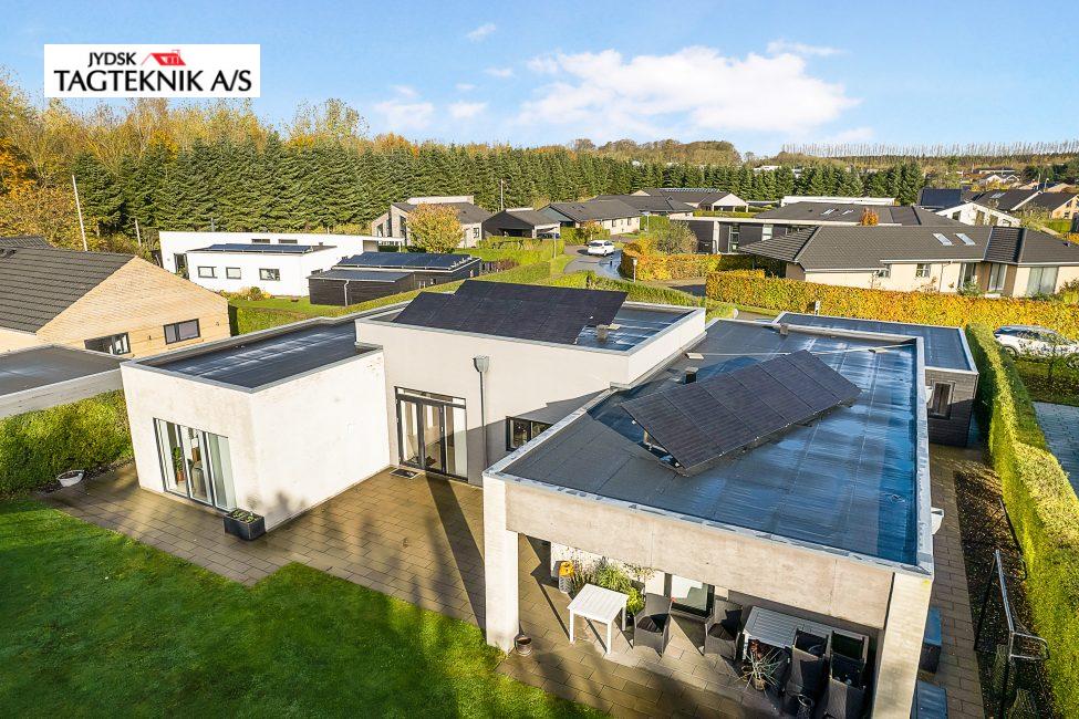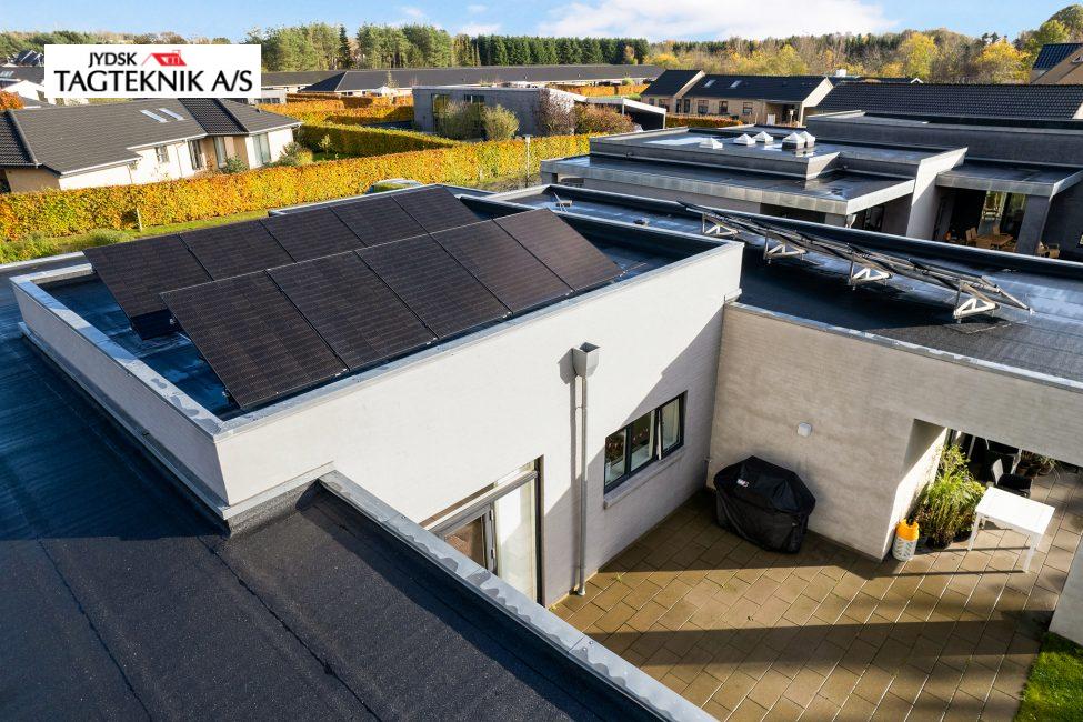Jydsk Tagteknik A/S har leveret og monteret et 6,4 kWp solcelleanlæg inkl. inverter i Viborg. Anlægget indeholder: • 16stk Soluxtec Modul Mono XSC Solar paneler på eksisterende tagpaptag . 3,2 mm tempered ARC (Anti-reflective Coating) • 1stk Huawei sun2000-4KTL-M1 hybridInverter (13,5A) inkl. Mpp-trackere • Inkl. Kabler, beslag og montering. • Inkl. Smartphone App, El-installatør og ændringer i el-tavle Kabeltræk. EL-installatør anmeldelse og fysisk tilslutning i tavlen.