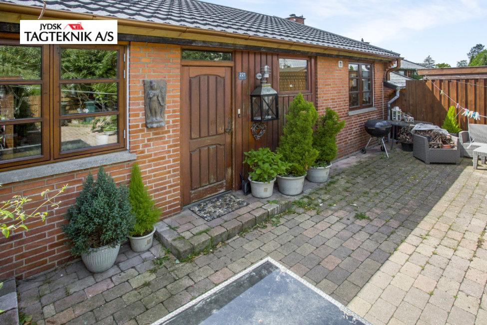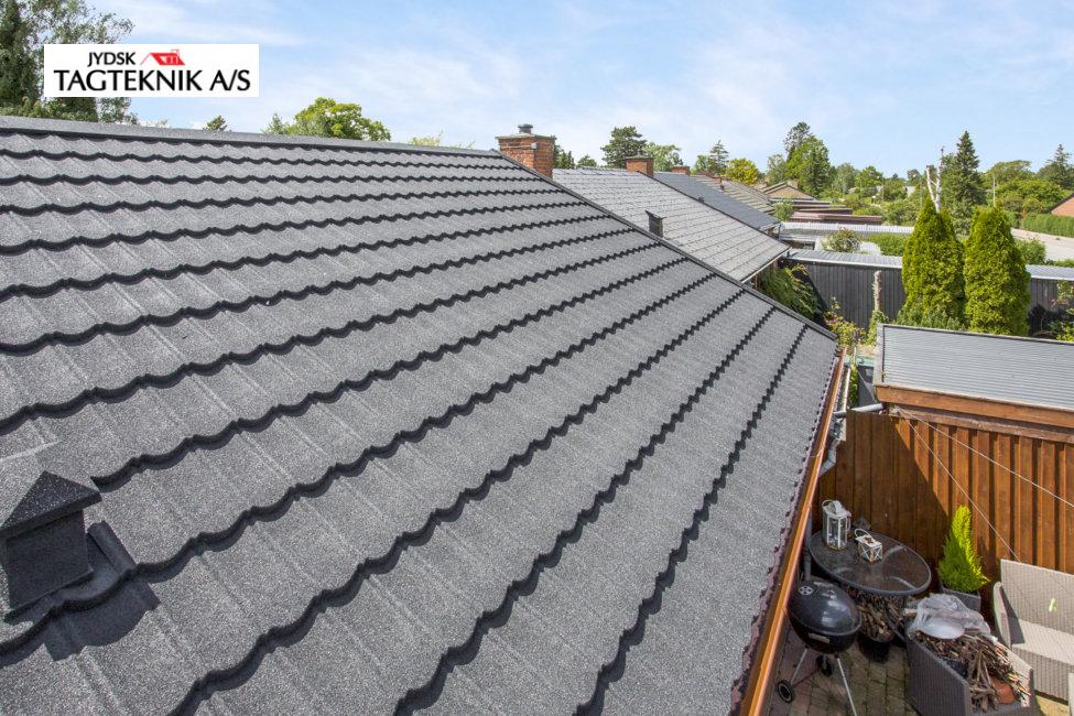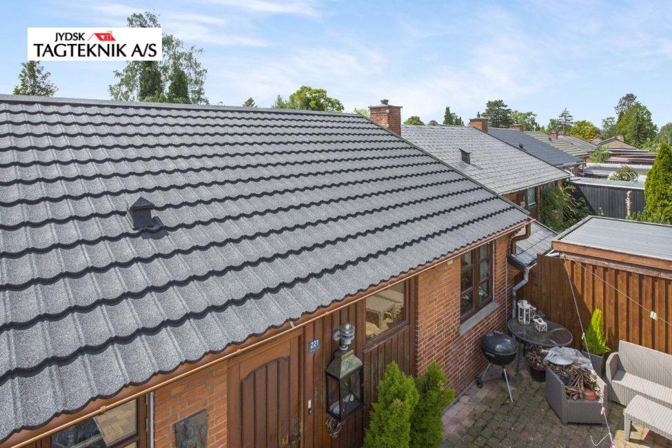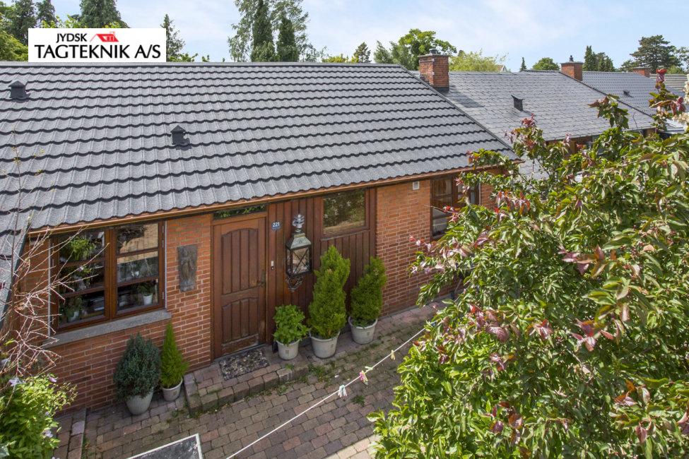 Dette skønne hus på Brøndby Strand, fik monteret nyt sort Decra Classic, sortmalede vindskeder, samt Lindap Kobber metallic tagrende .