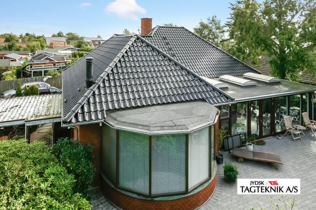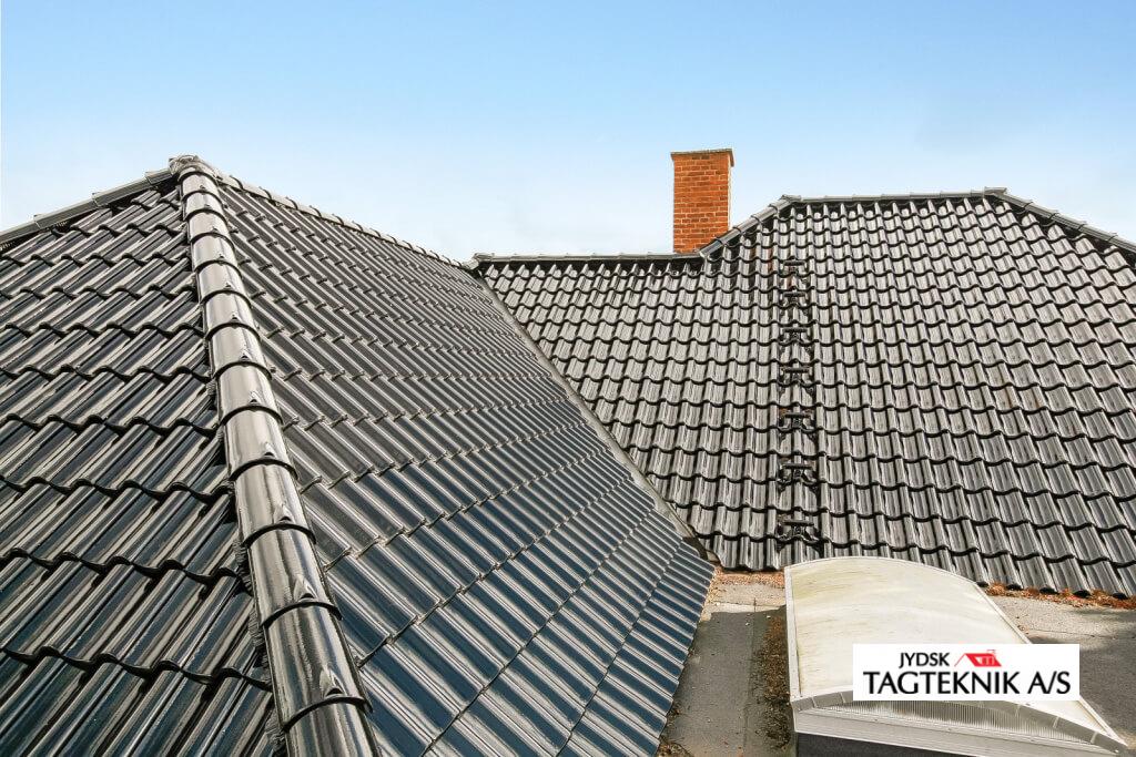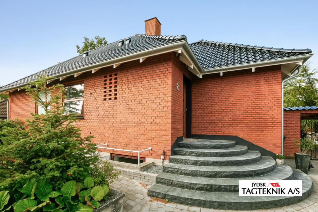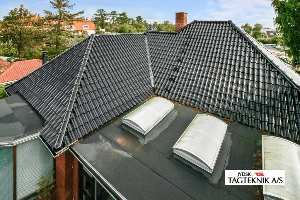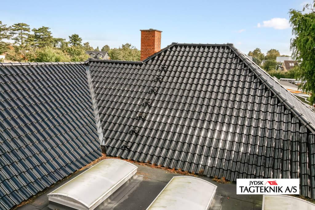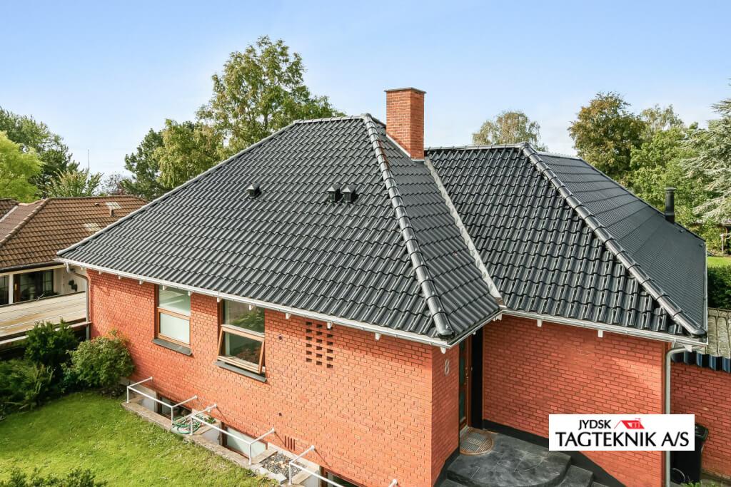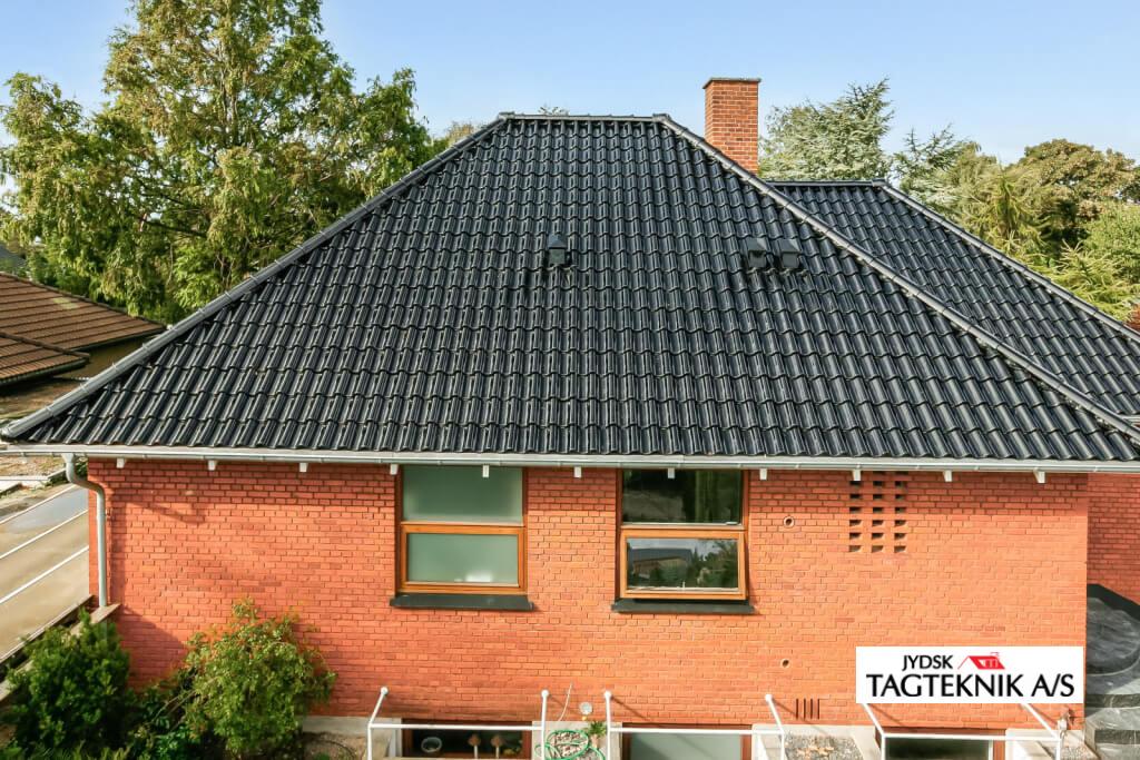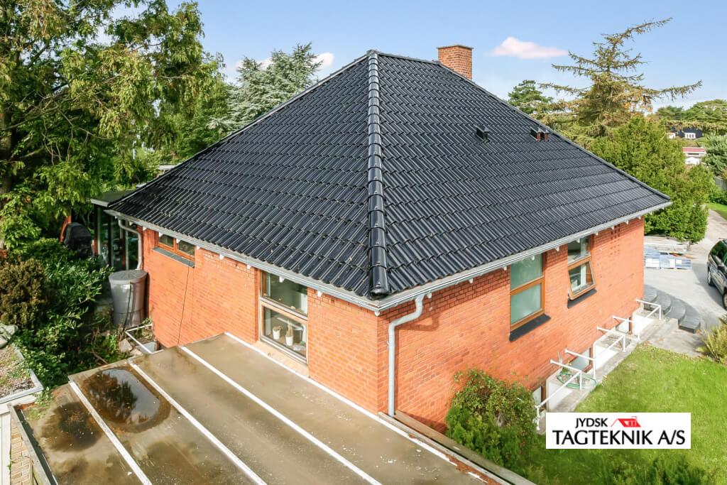 Ejendom i Greve fik lagt nyt sortglaseret tegltag, ejendommen fik også monteret nye zinktagrender.