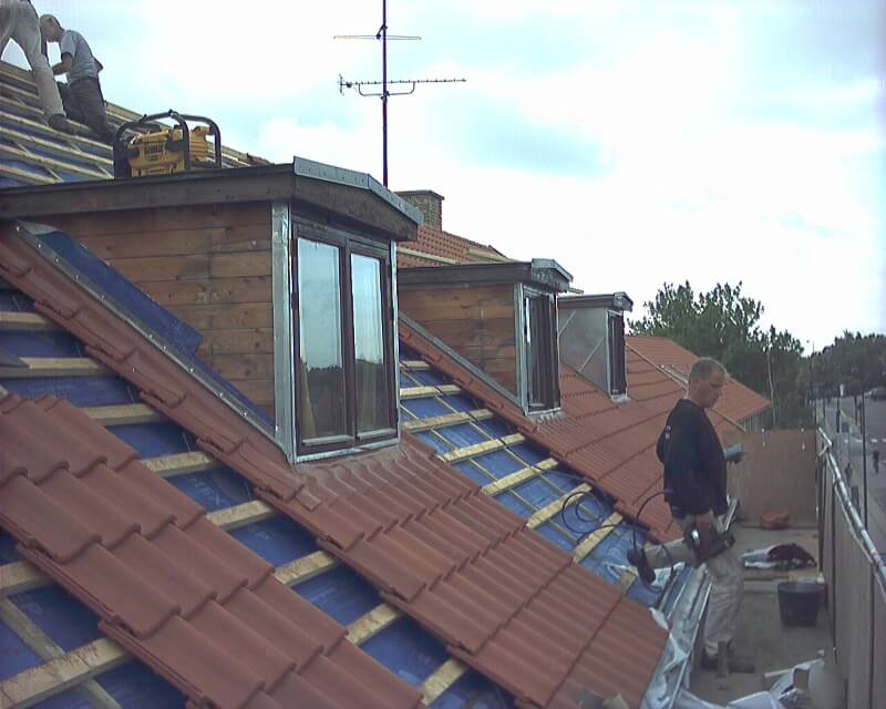 Afmontering af eksisterende tegltag, samt levering og montering af nyt tegltag H14 (rød). Derudover montering af nyt zink på kviste, samt montering af nye zink tagrender.