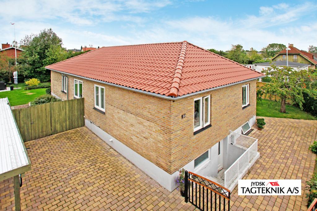 Nyt Tegltag blev monteret på huset i Brønshøj, Huset fik også monteret nye zink tagrender.