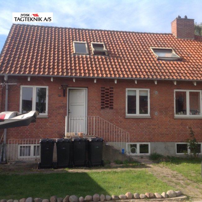 Denne villa i Rødovre fik fjernet det gamle tegltag, og erstattet med HF 14 Brandenburger. Vi satte nye Velux vinduer i, isolerede skråvæggene, samt monterede zinktagrender. Se før og efter billeder.