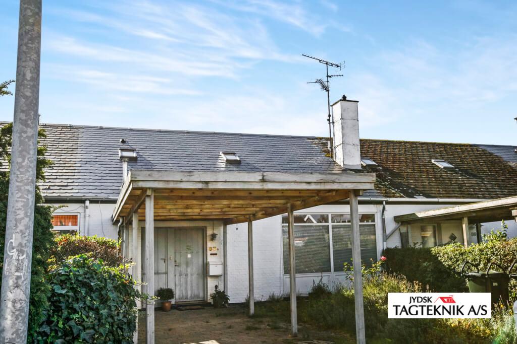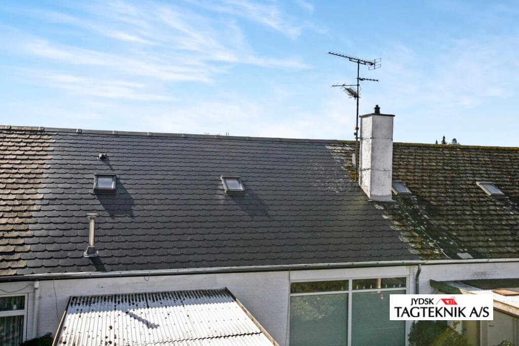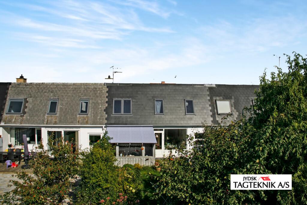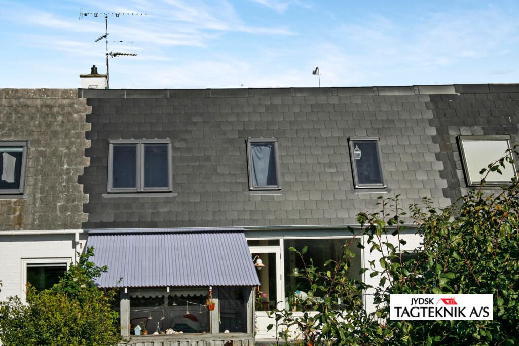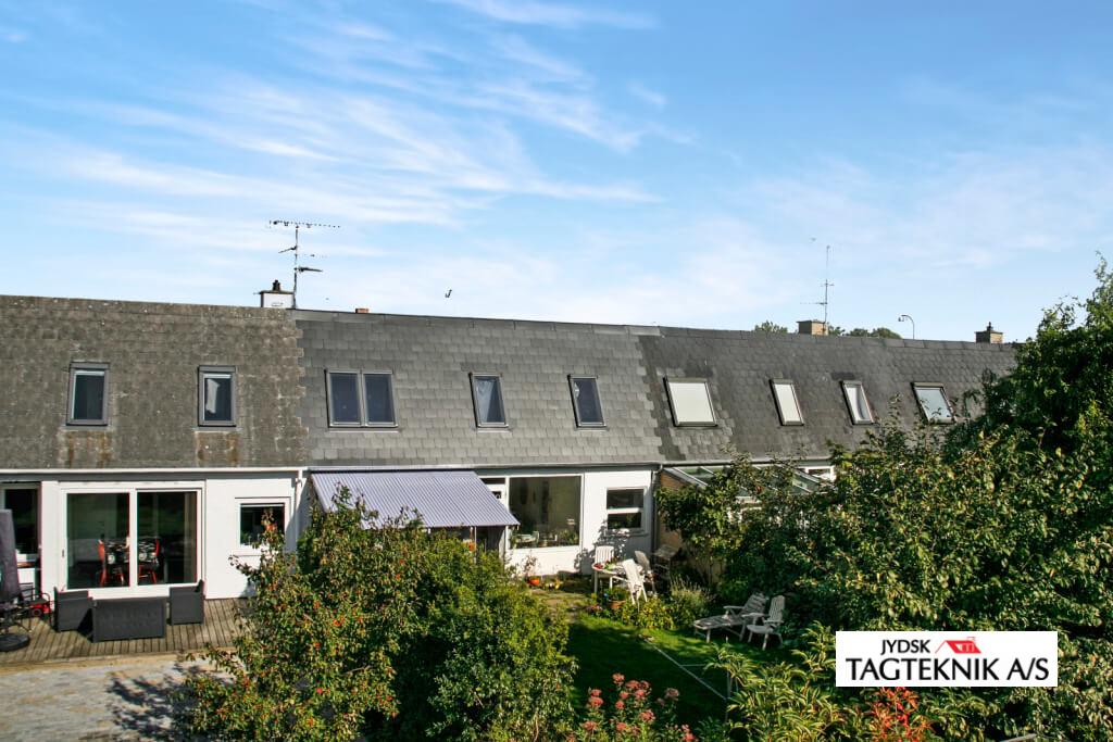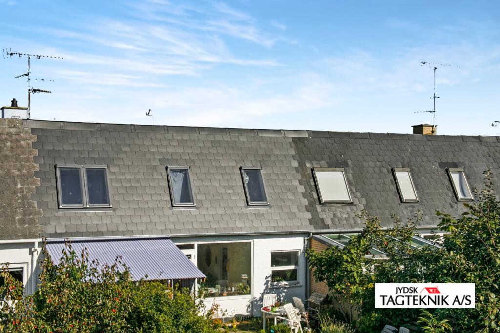Rækkehuset i Hvidovre fik lagt nyt skifereternittag, huset fik også nye velux ovenlysvindjer monteret, samt nye zink tagrender.