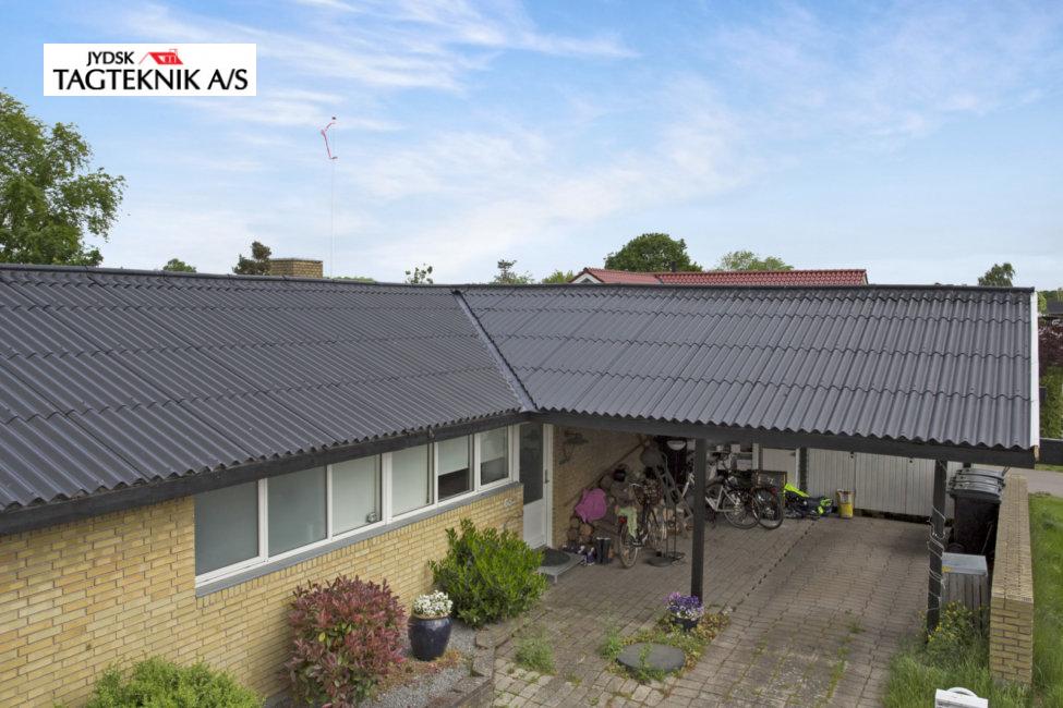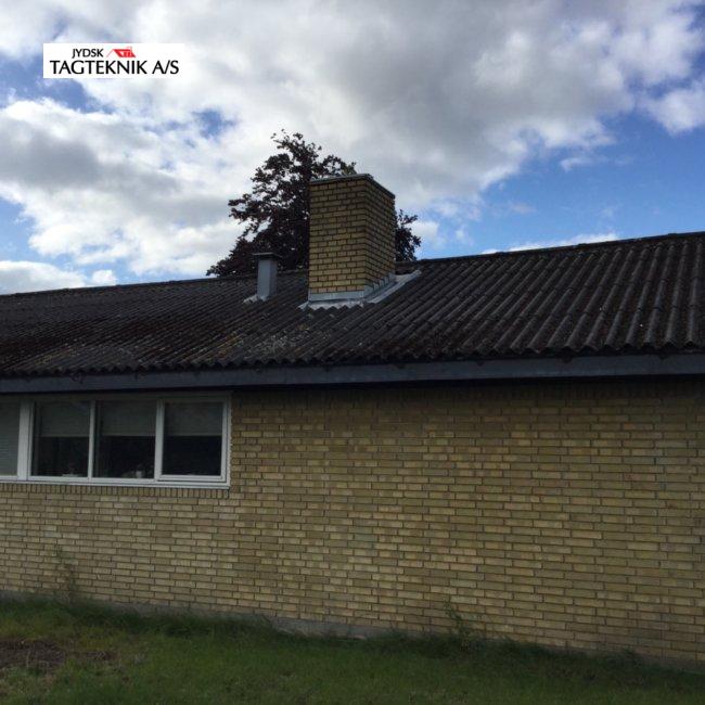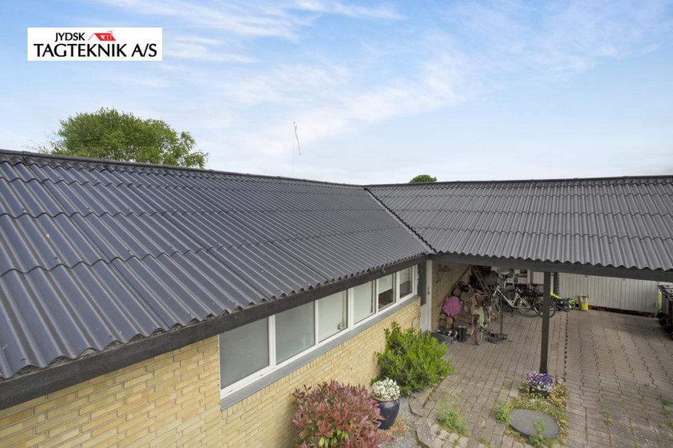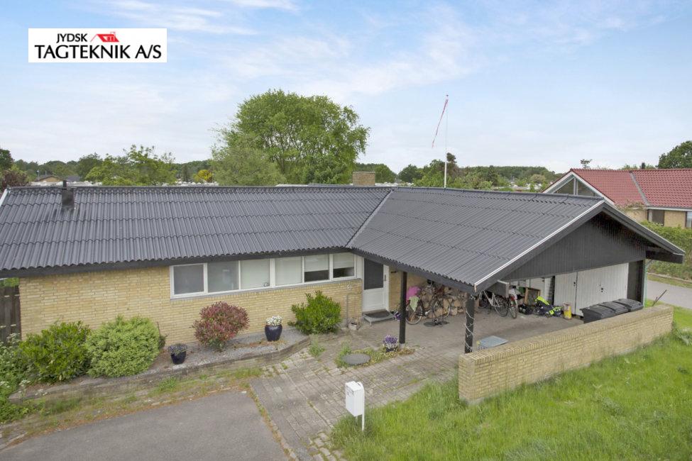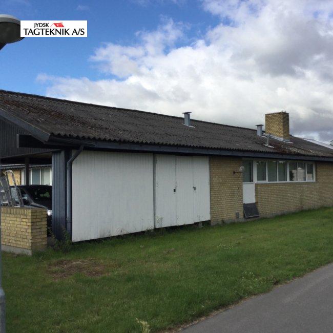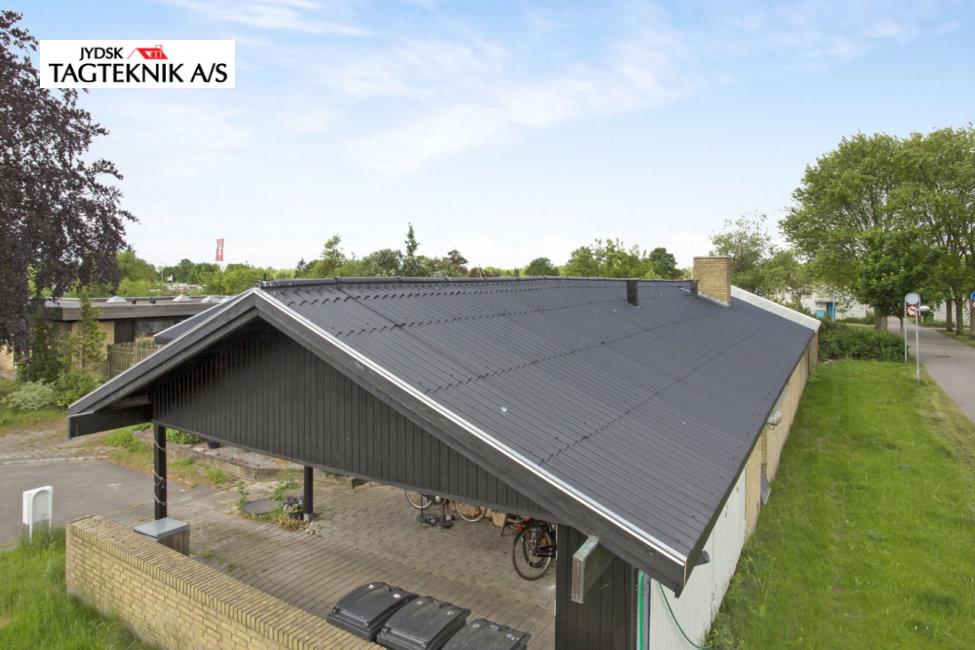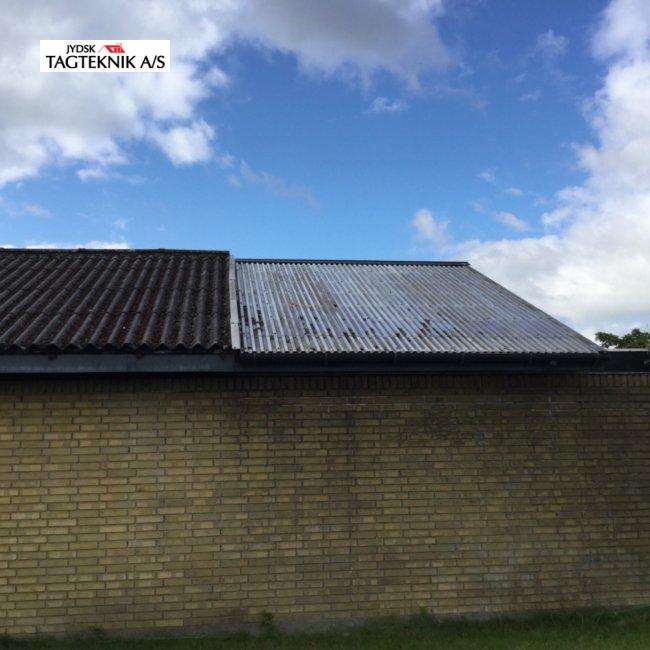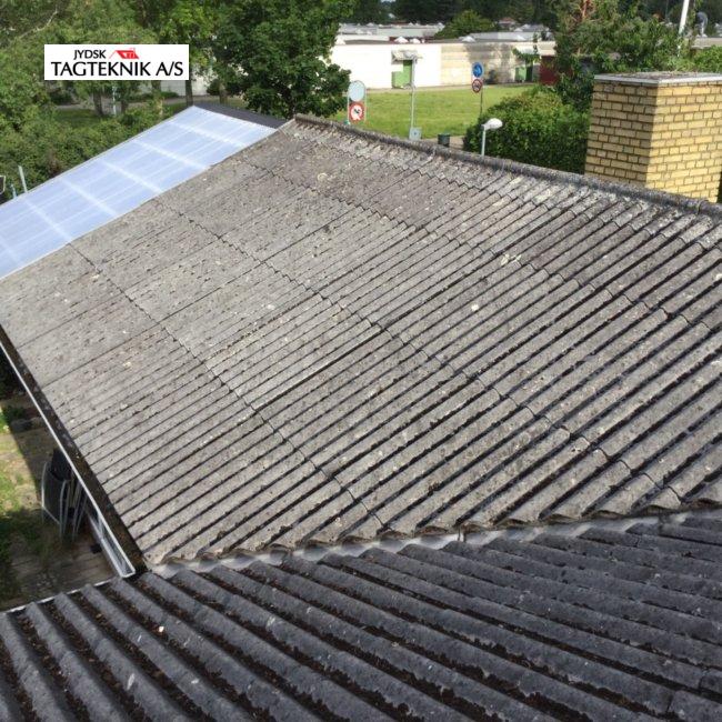 Dette hus i Albertslund, fik renoveret de gamle B7 eternit plader. Først renser vi taget, og bagefter giver vi taget 2 gange maling. Se før og efter billeder .