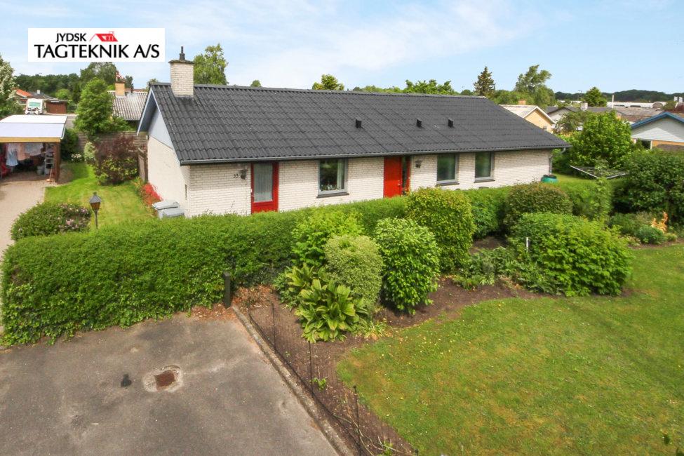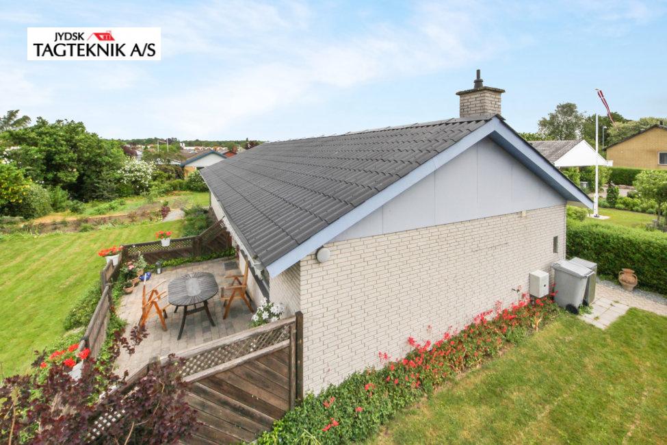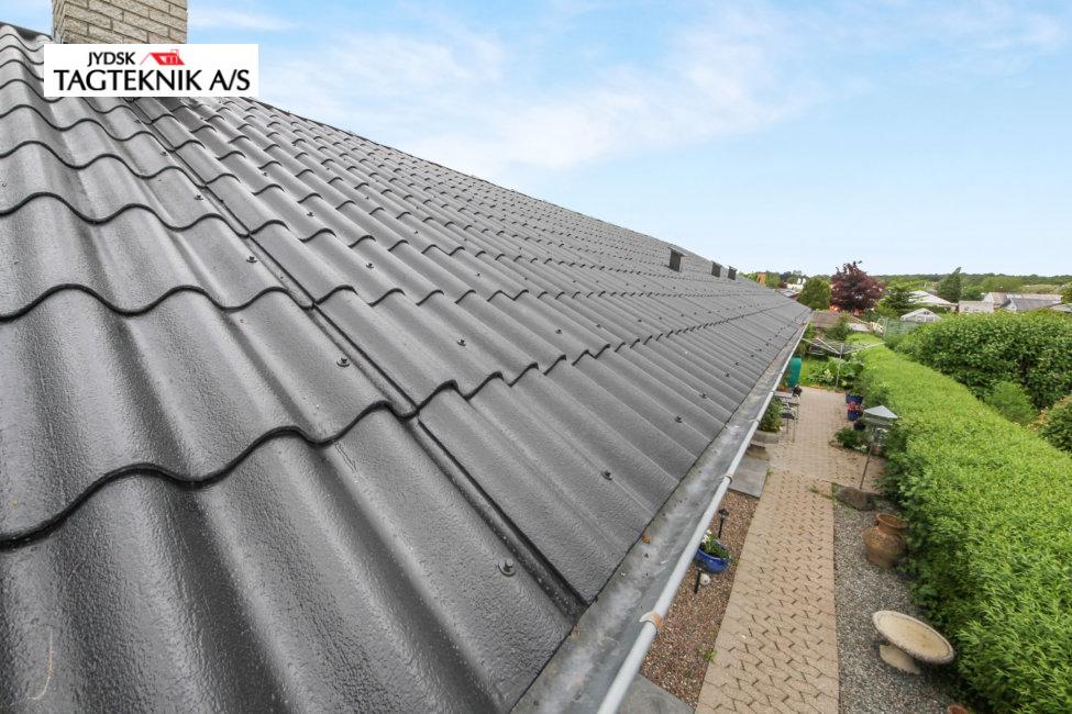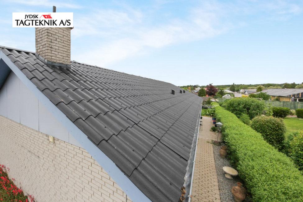 Denne fine villa i Dianalund, fik renoveret de gamle B7 Eternit plader. Først en afrensning, derefter 2 gange maling.