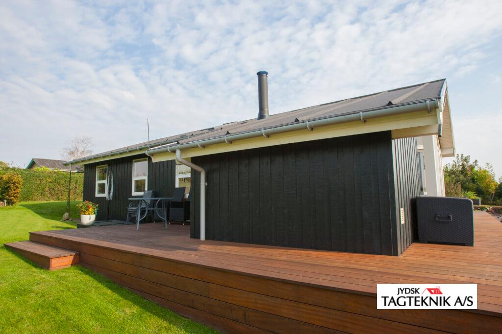 Sommerhuset i Følle på Djursland fik lagt et nyt tagpaptag med listedækning. Sommerhuset fik samtidig et nyt ovenlysvindue.