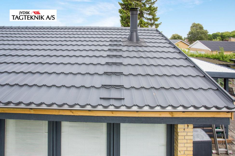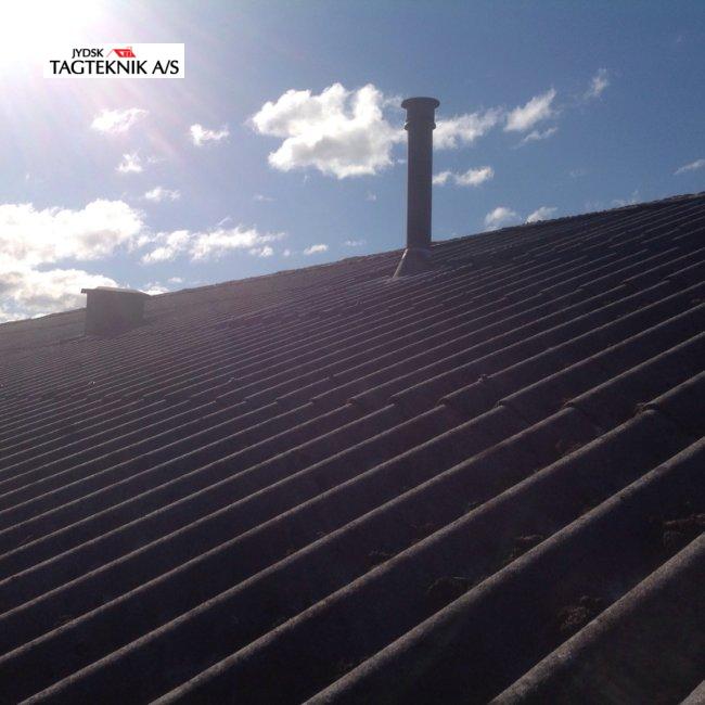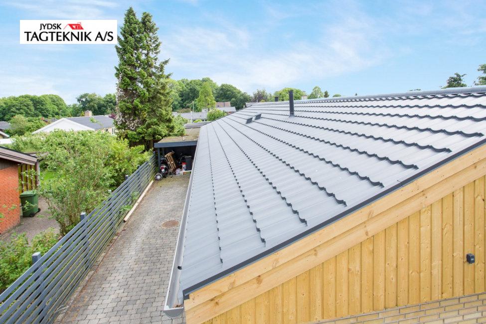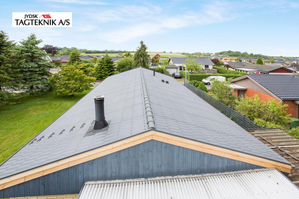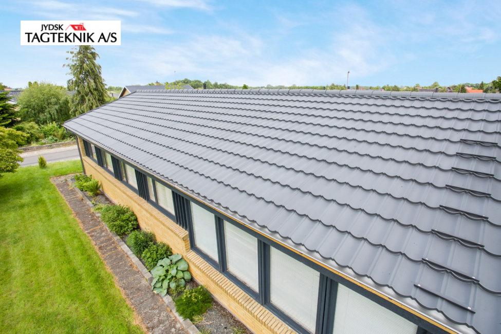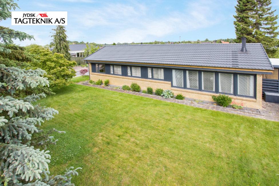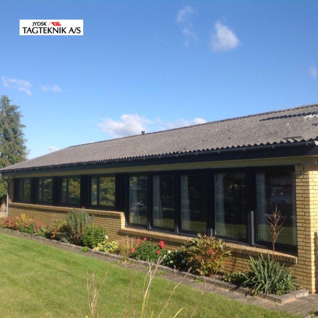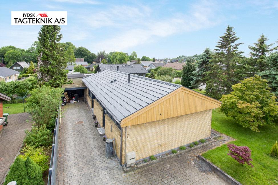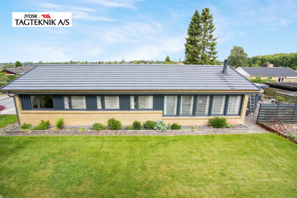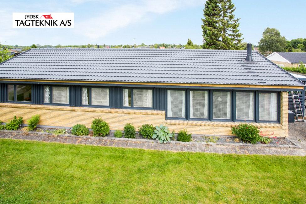 Huset i Tune fik lagt nyt Decra grafit, oven på det gamle Eternit tag, huset fik også monteret nye metaltagrender.