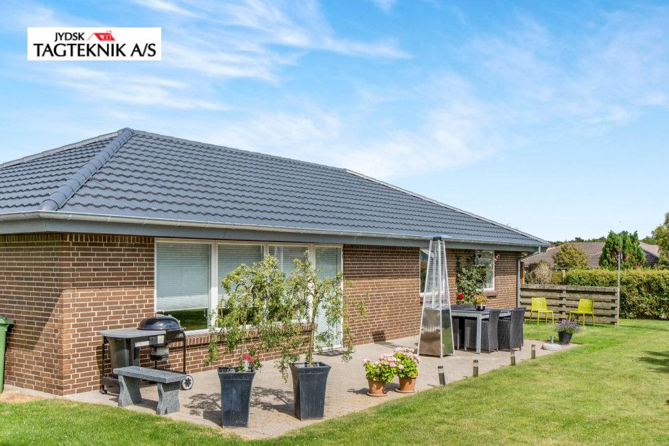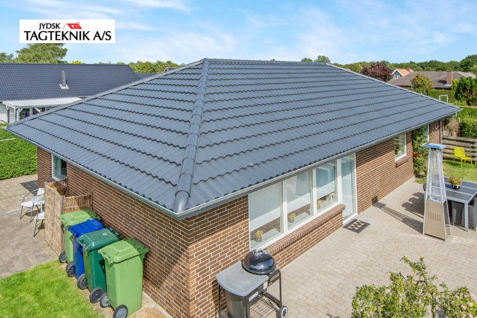 Det gamle tegltag blev fjernet, og et nyt Decra sort grafittag blev lagt. Sternbrædderne blev samtidig udskiftet til vedligeholdelsesfrit materiale, og der blev monteret nye zinktagrender.