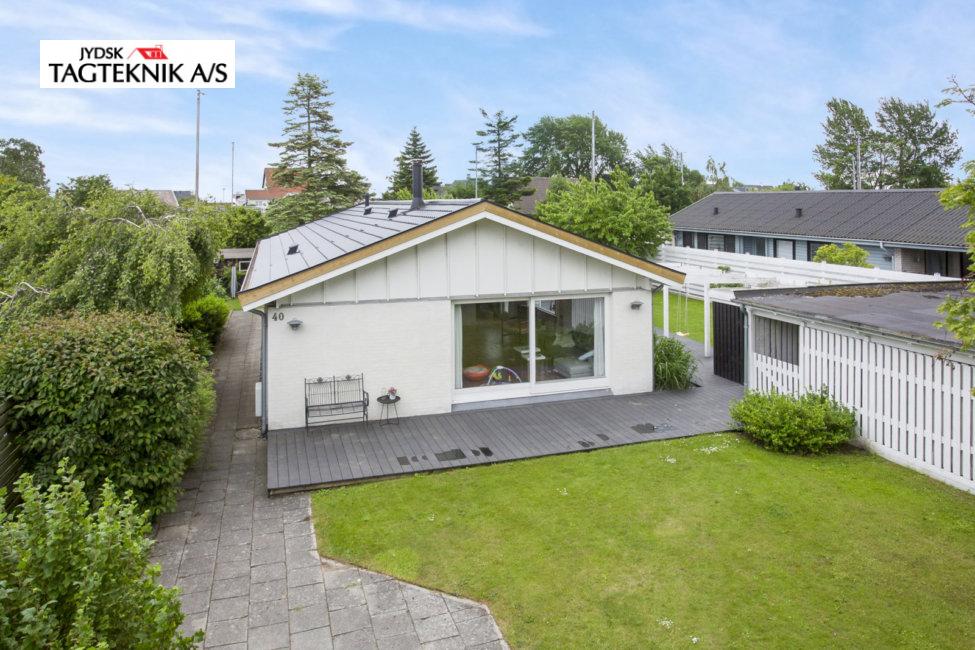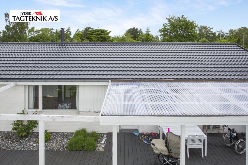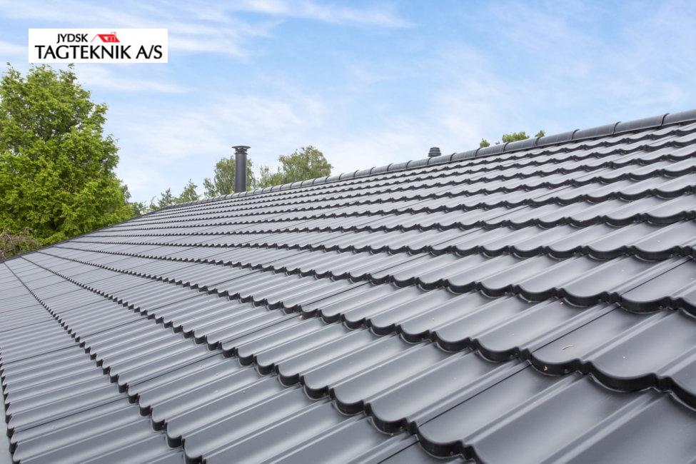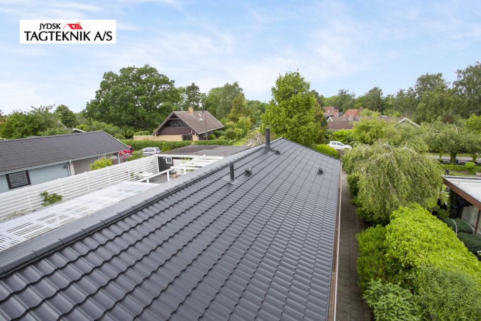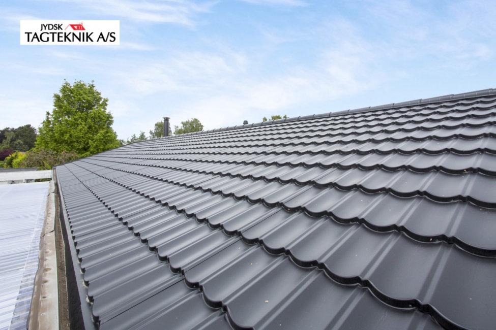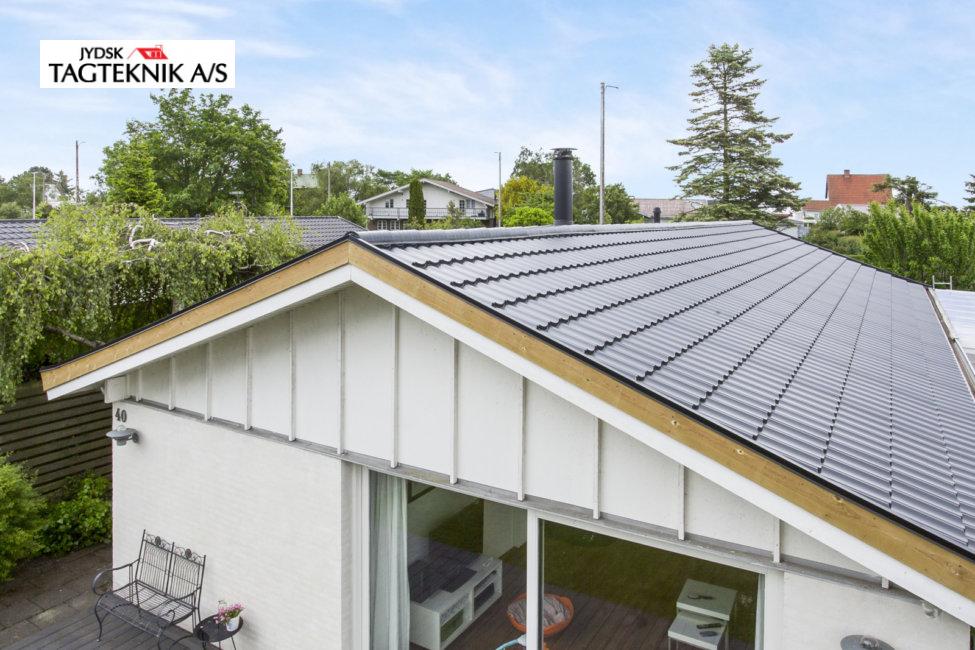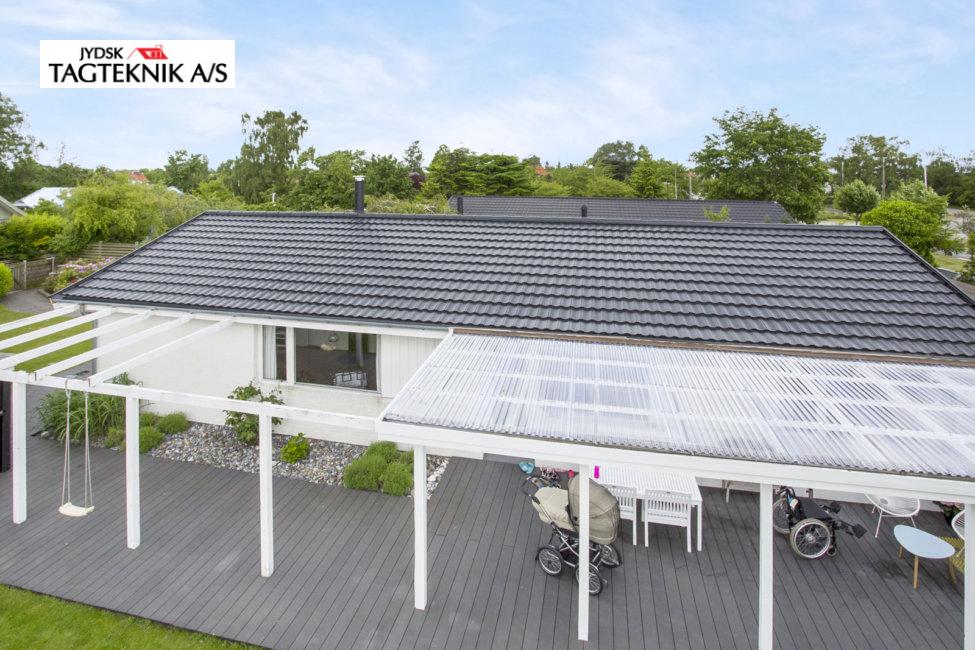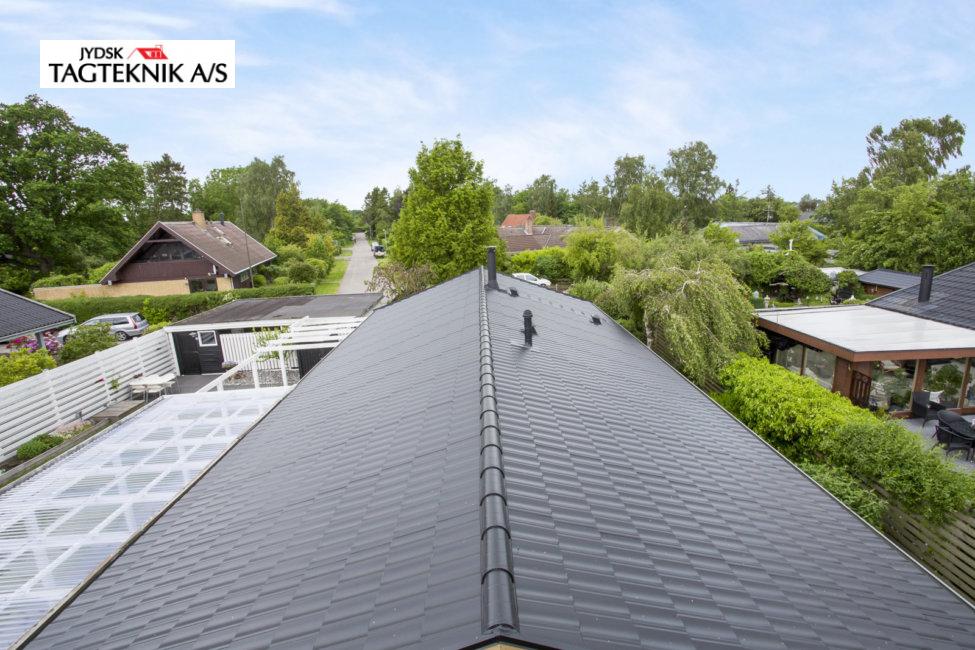 Huset i Greve fik lagt et nyt Decra elegance sort mat, efter vi havde fjernet det gamle tegltag.