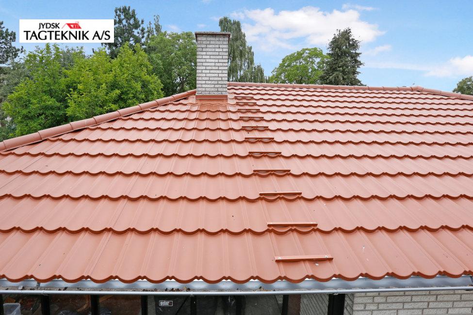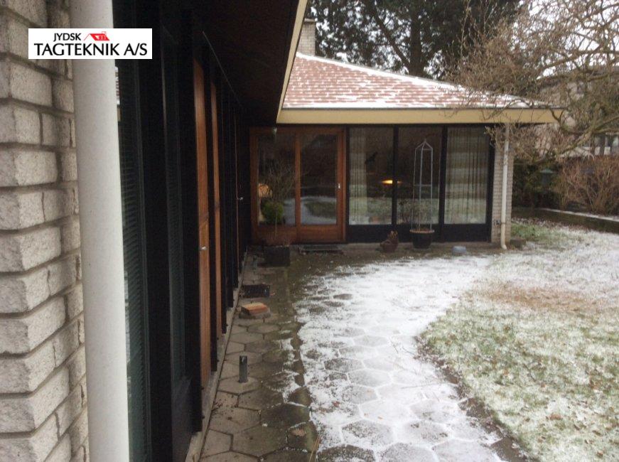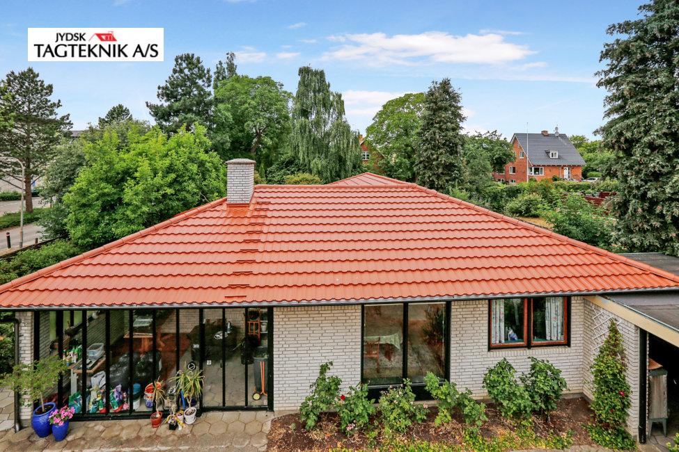Villaen i Albertslund fik lagt et nyt Decra Elegance tag på det eksisterende skifereternittag. Samtidig blev der monteret nye Velux ovenlysvinduer og nye metaltagrender.