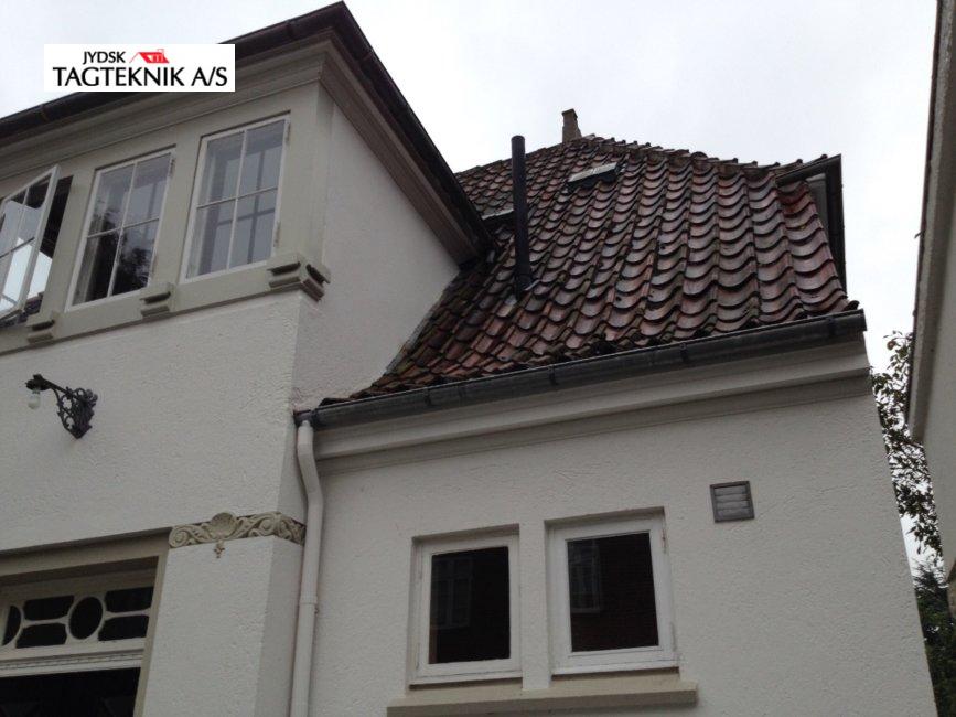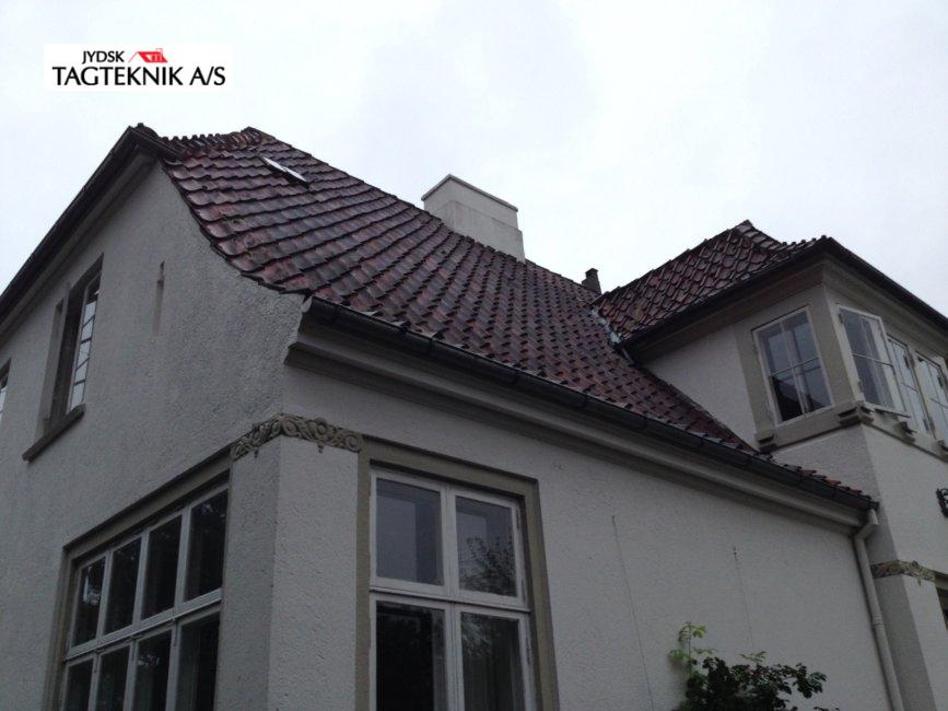 Huset iAarhus fik lagt nyt flot tegltag, huset fik også udskiftet tagrender til nye zink tagrender.