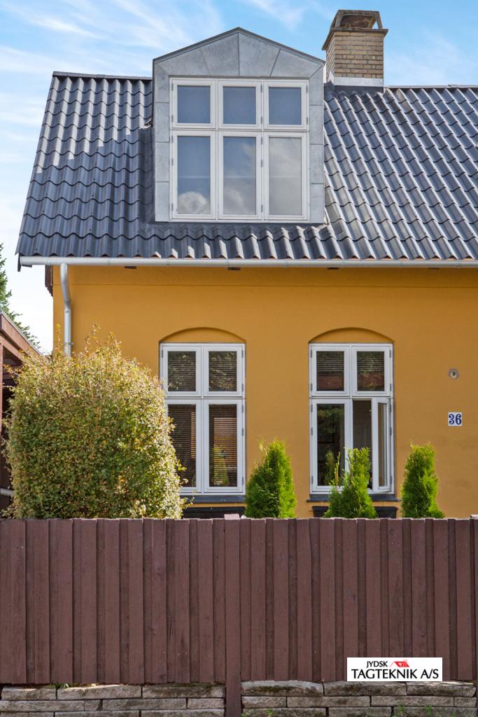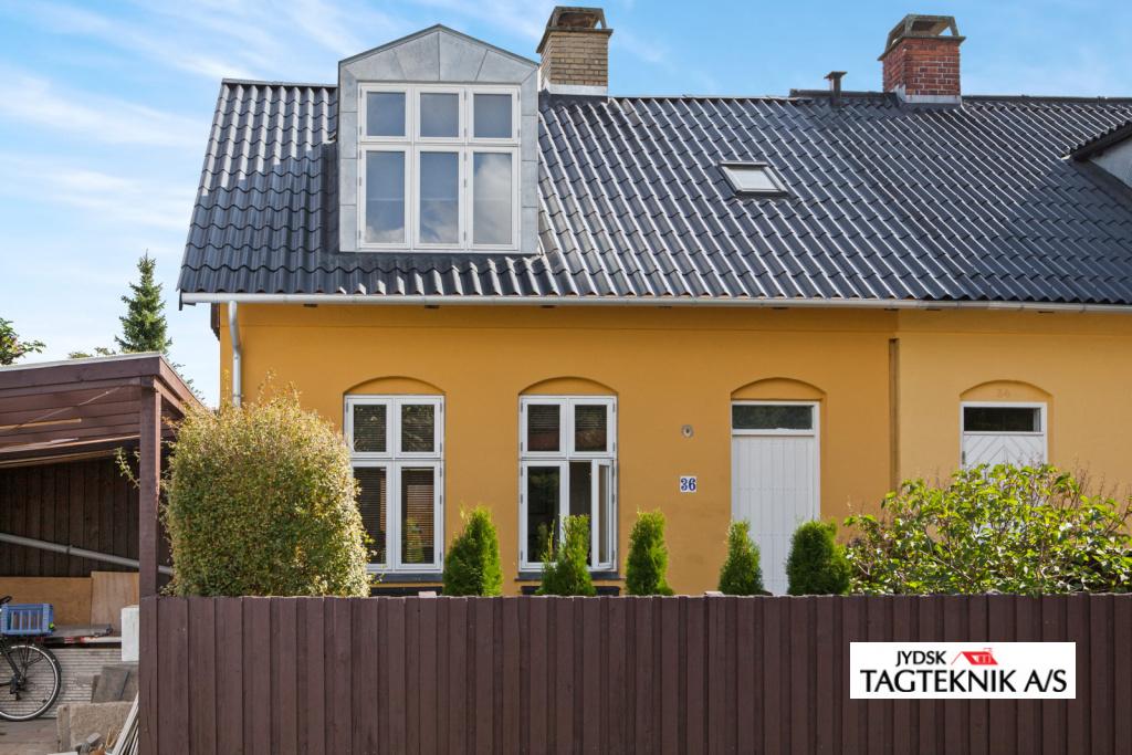 Villa i Brønshøj fik monteret et nyt bølgeeternittag. Huset fik samtidig en ny kvist og nye tagrender.