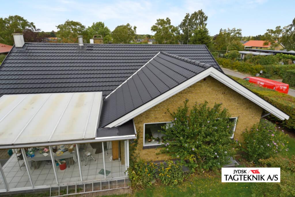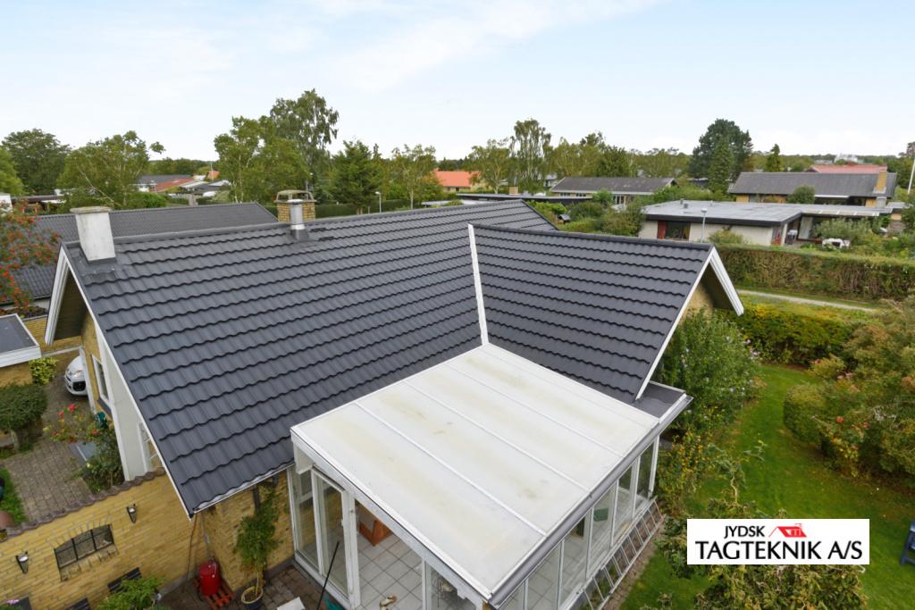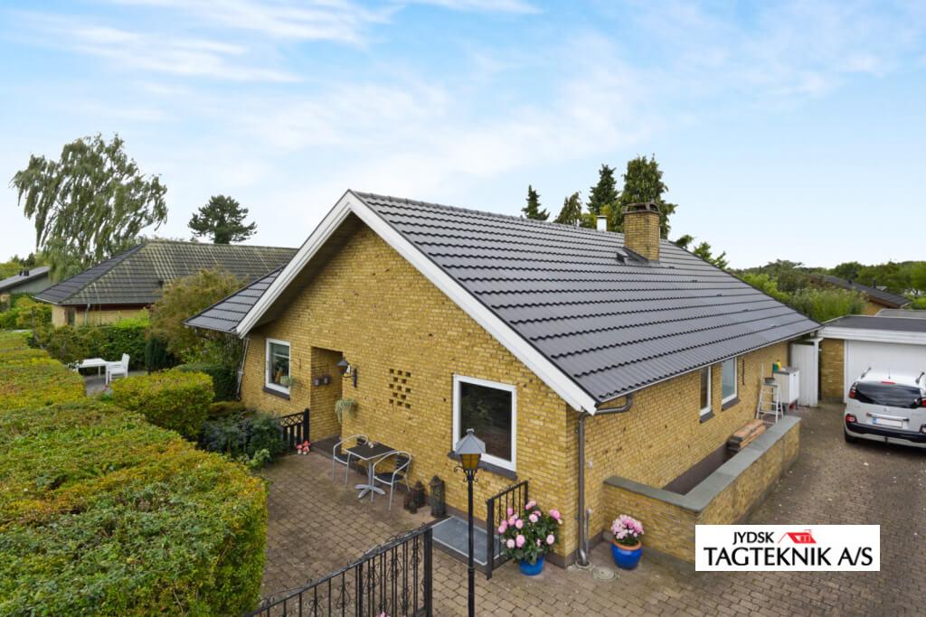 Nyt Decra Elegancetag blev monteret på villaen i Greve, villaen gik også monteret nye metal tagrender.