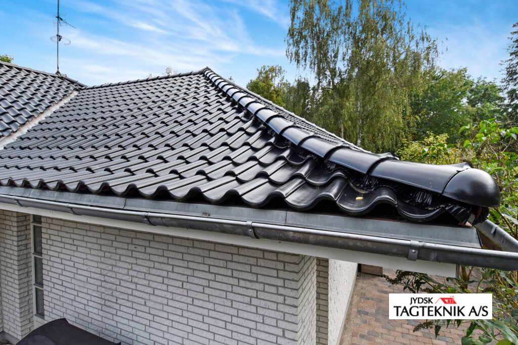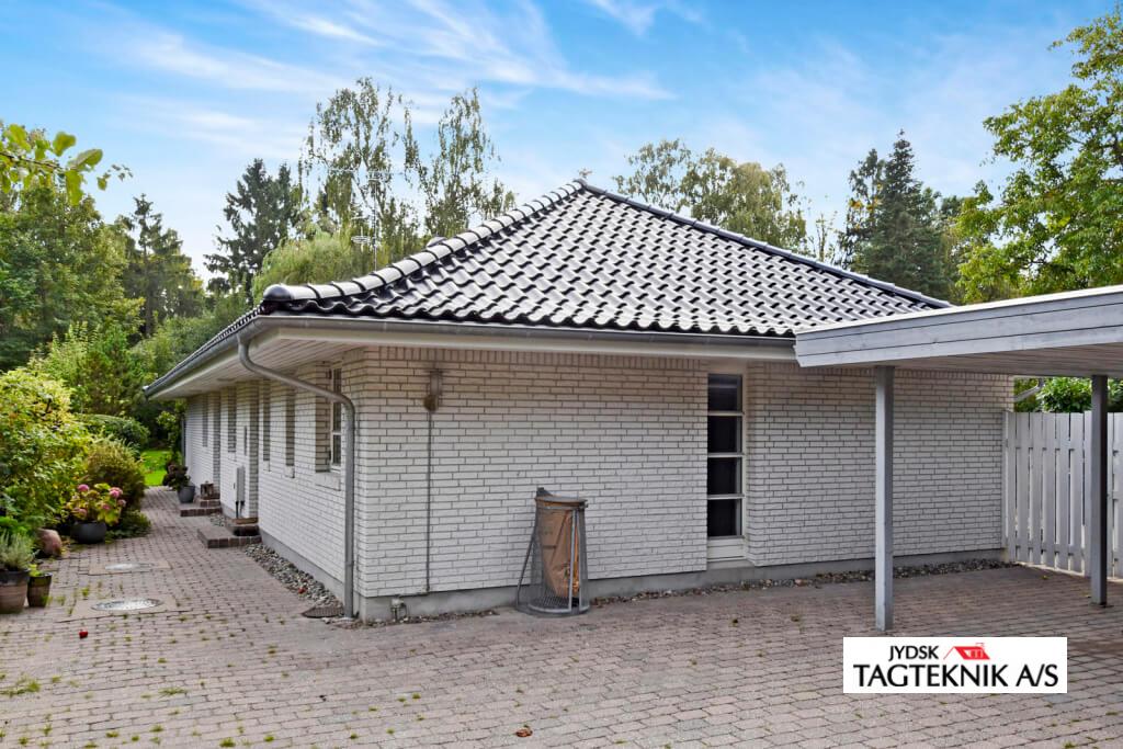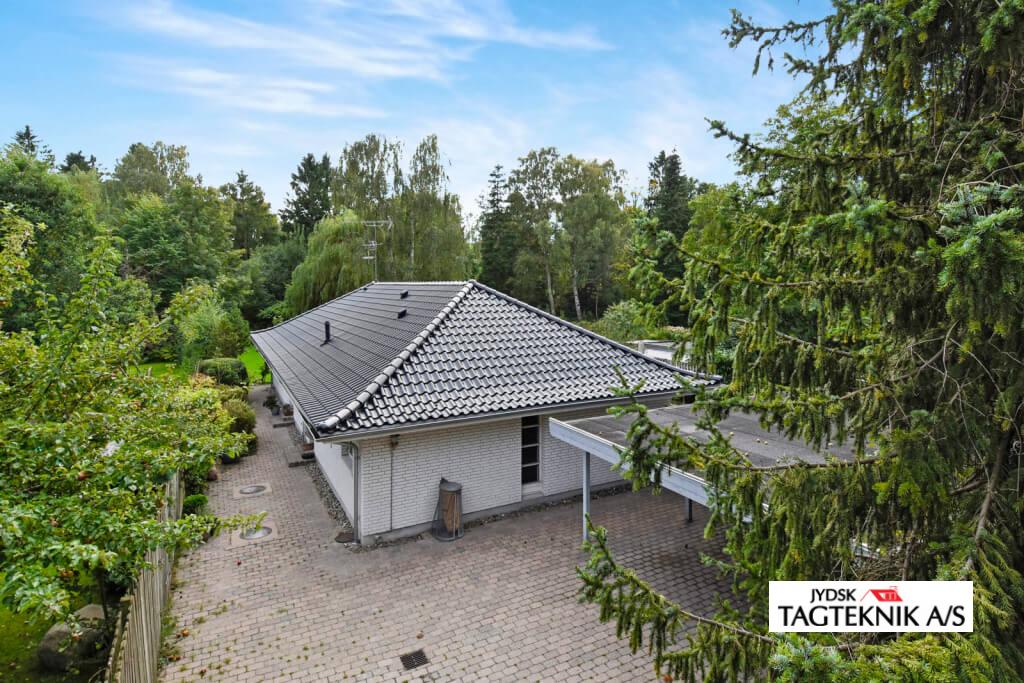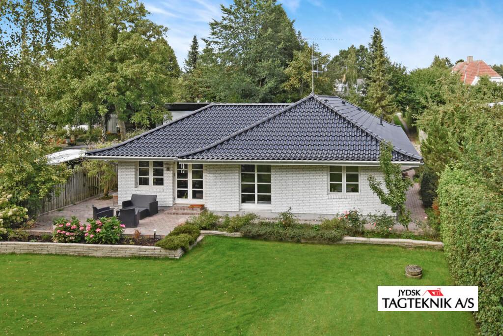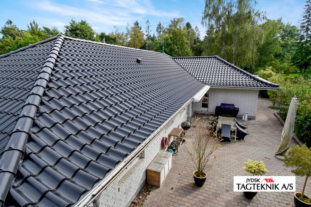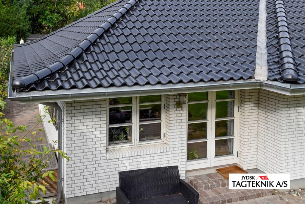 Villaen i Lyngby fik lagt nyt sortglaseret tegltag, ejendommen fik også monteret nye zinktagrender.